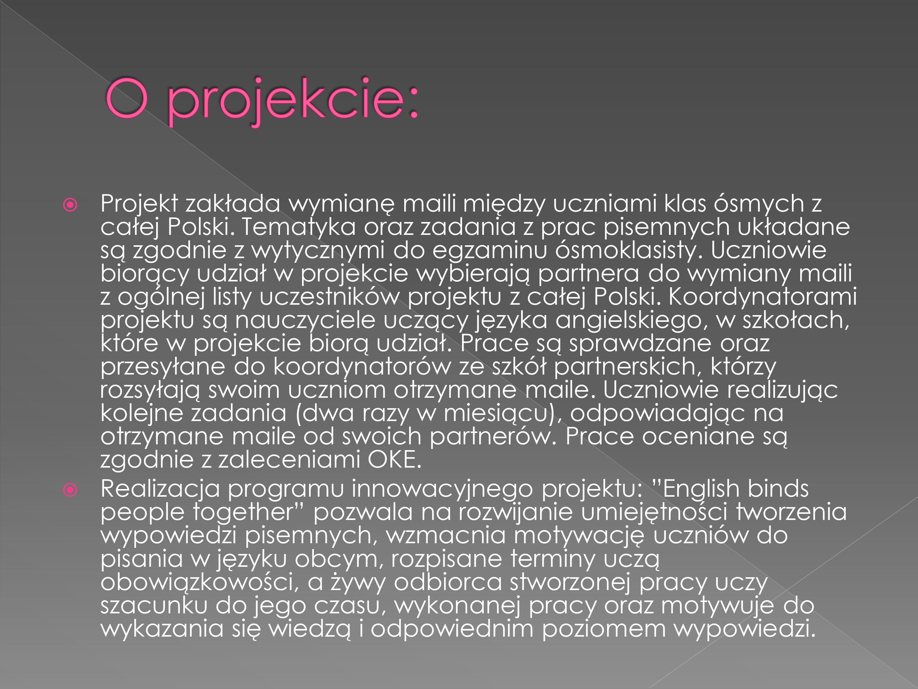 Uczniowie 8 klasy szkoły podstawowej brali udział w projekcie językowym w roku szkolnym 2020/2021.