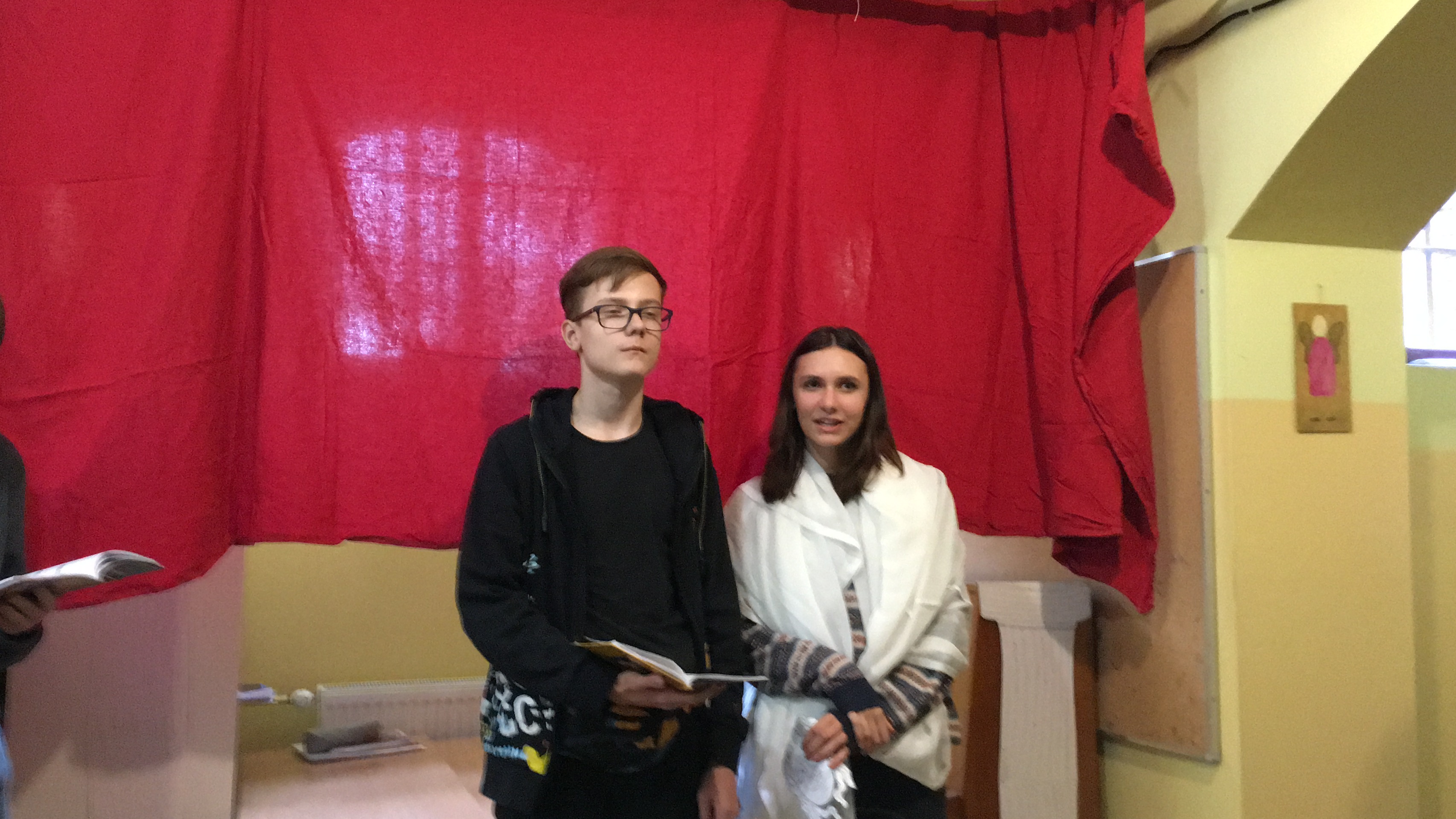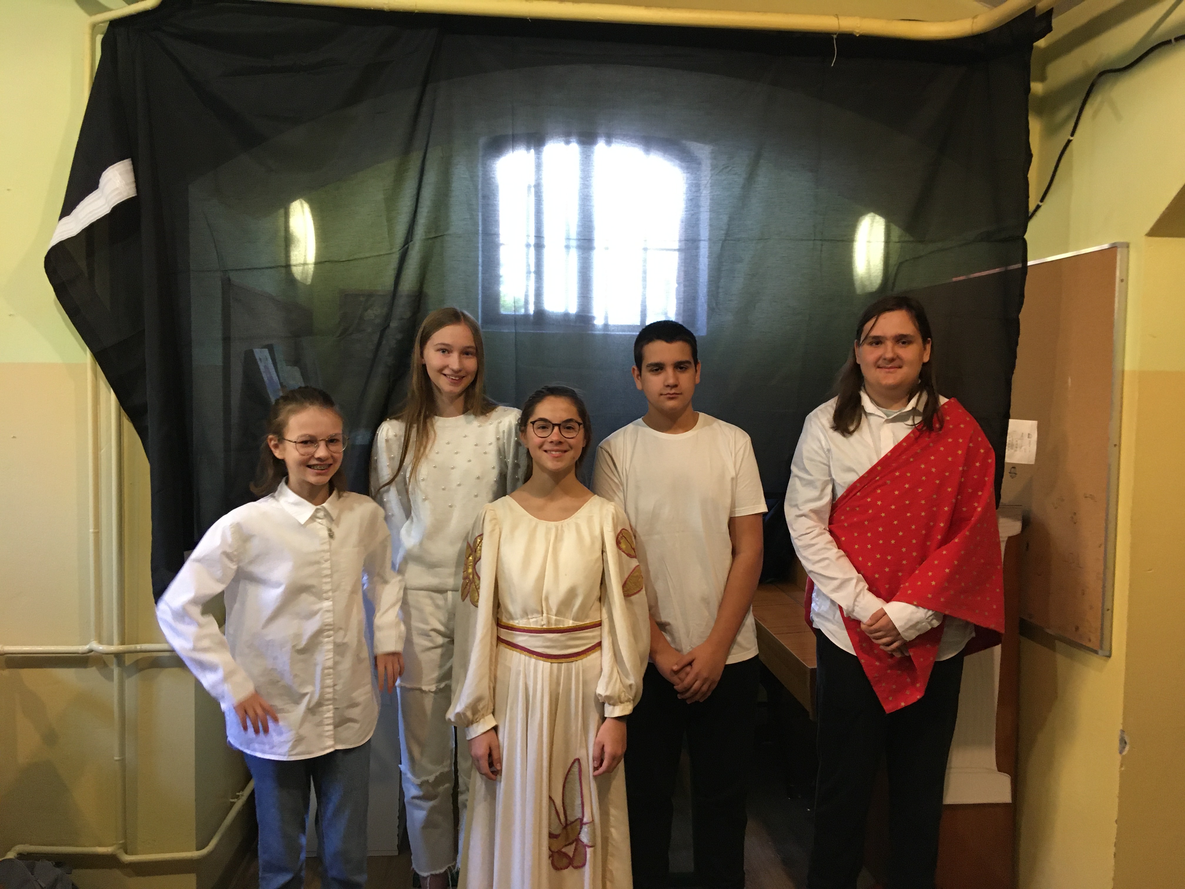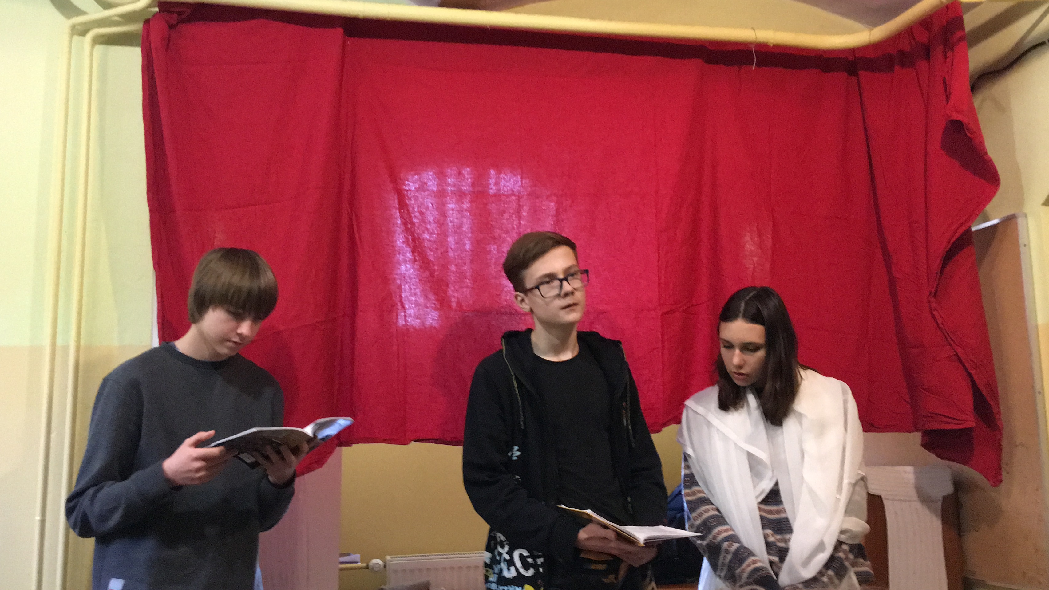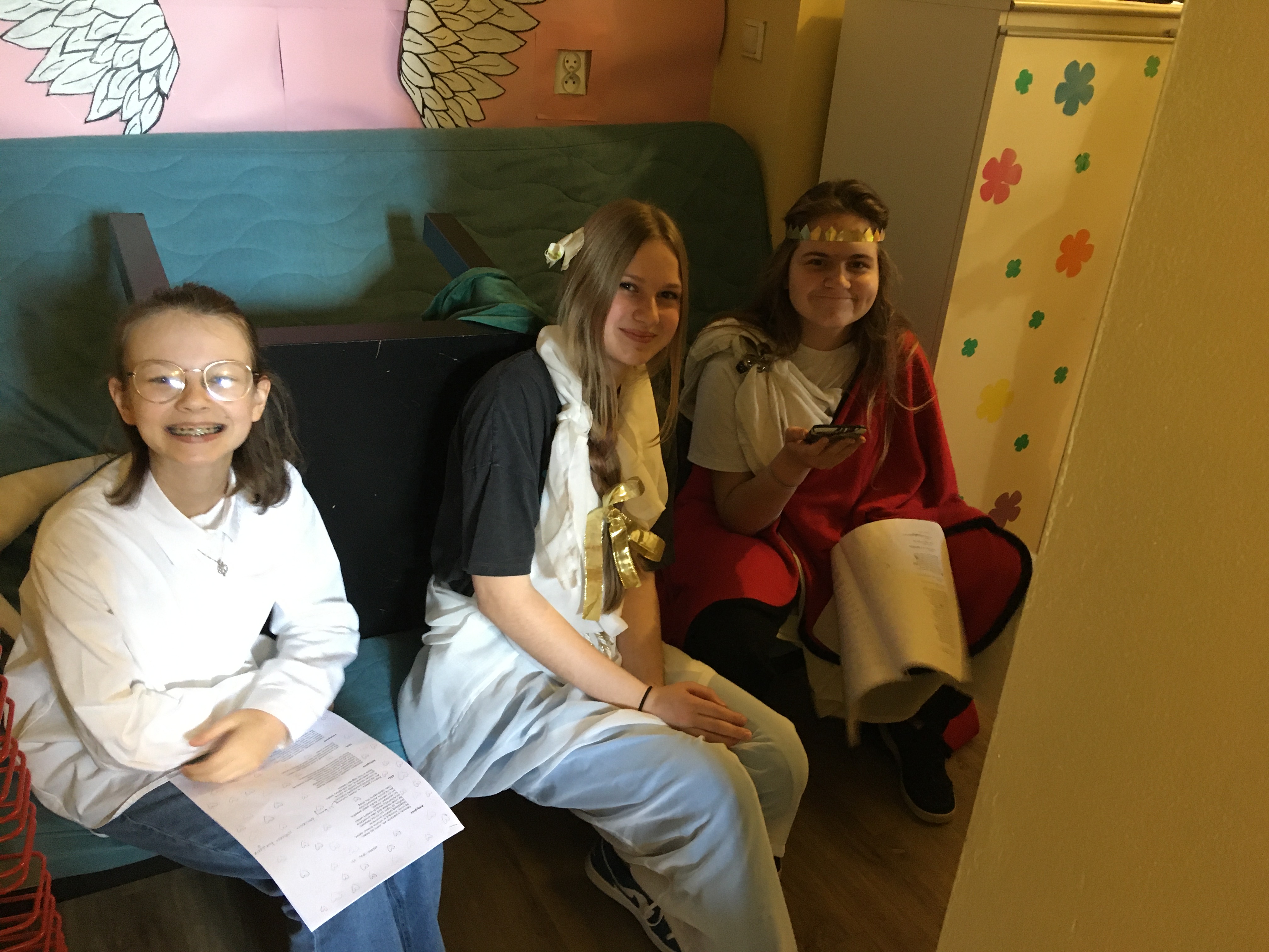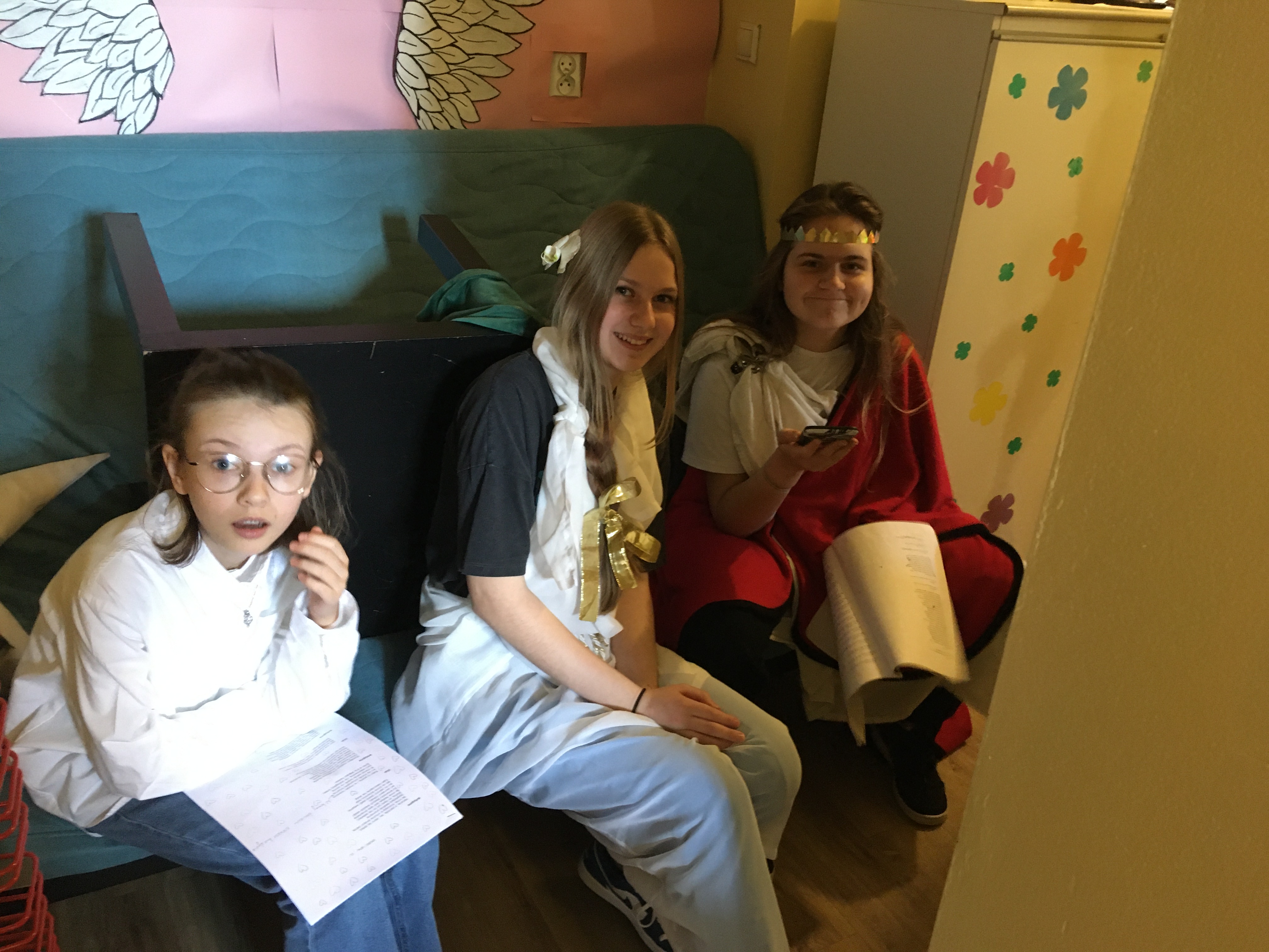 W ubiegły czwartek (27.10.) uczniowie klasy 1 LO prezentowali swoje zdolności teatralne i aktorskie. Ich zadaniem było odegranie wybranej sceny z "Antygony" Sofoklesa, którą klasa jakiś czas temu omawiała na lekcjach.