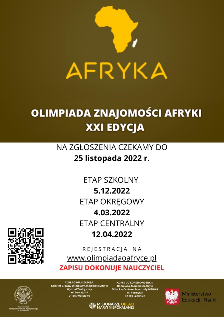 UWAGA! Na stronie organizatora można zapoznać się ubiegłorocznymi testami wszystkich etapów olimpiady https://olimpiadaoafryce.pl/szkolny/