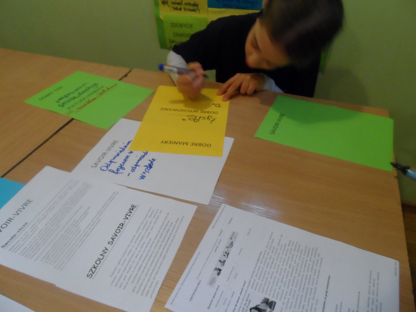 Savoir-vivre to inaczej zasady dobrego zachowania. Uczniowie zapsiują własne skojarzenia do tematu savoir-vivre. Z czym kojarzą się uczniom takie pojęcia: dobre maniery, dobre zachowanie, kultura osobista, grzeczność, dobry ton, układność, uprzejmość, konwenanse, wyczucie itp.