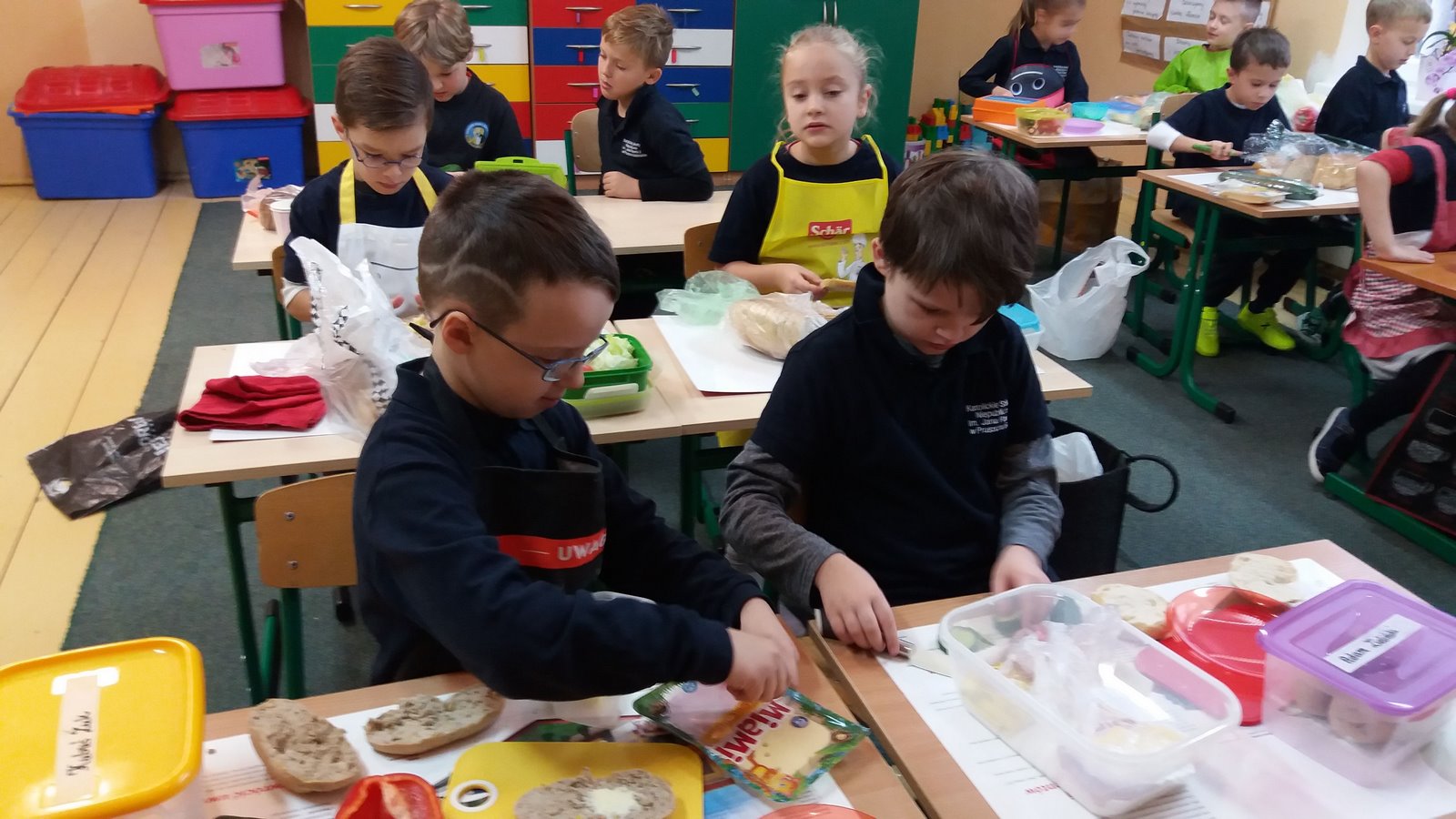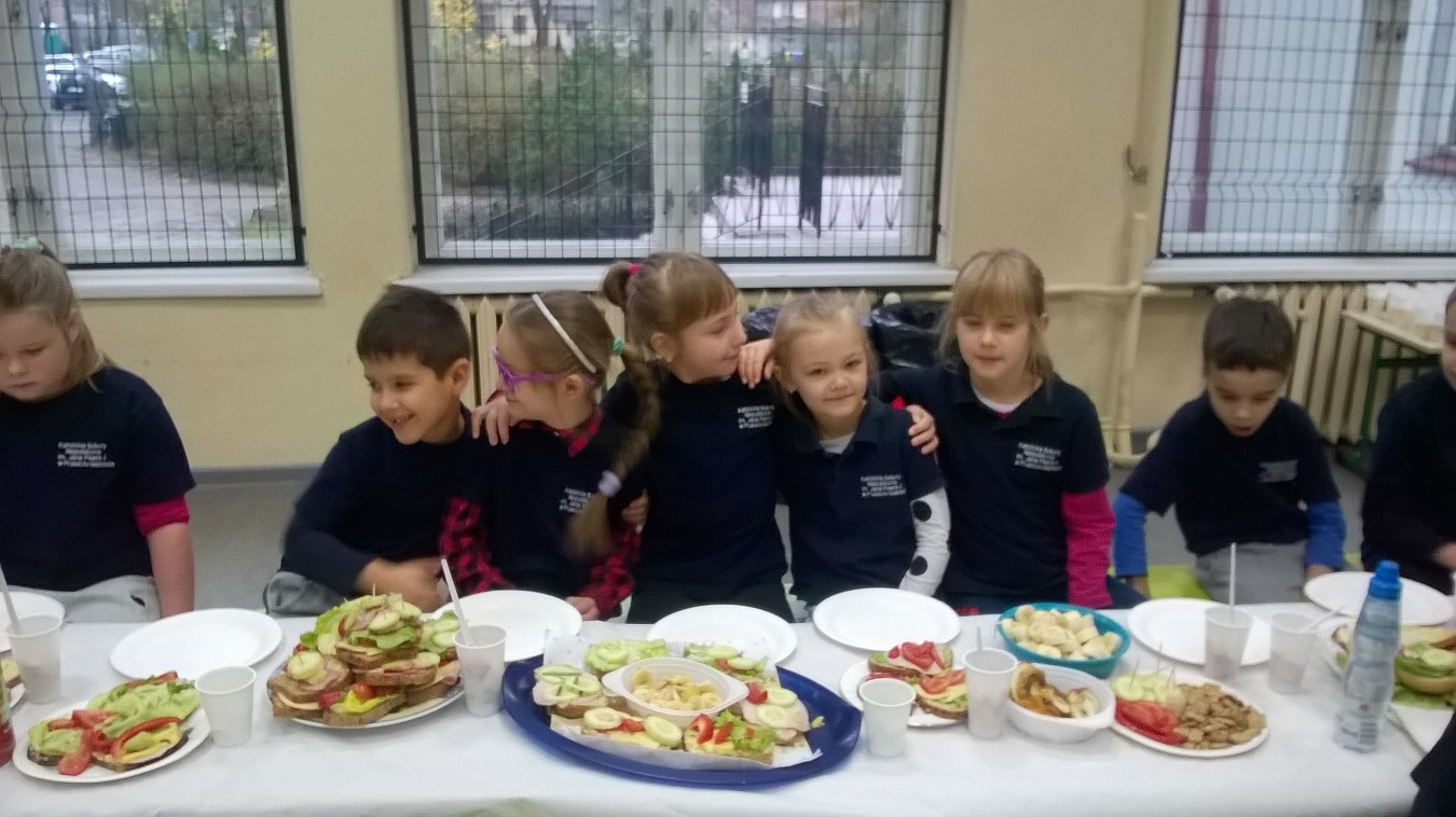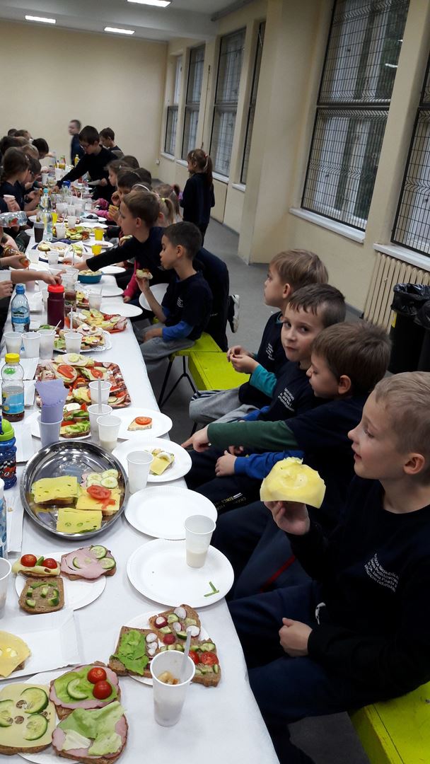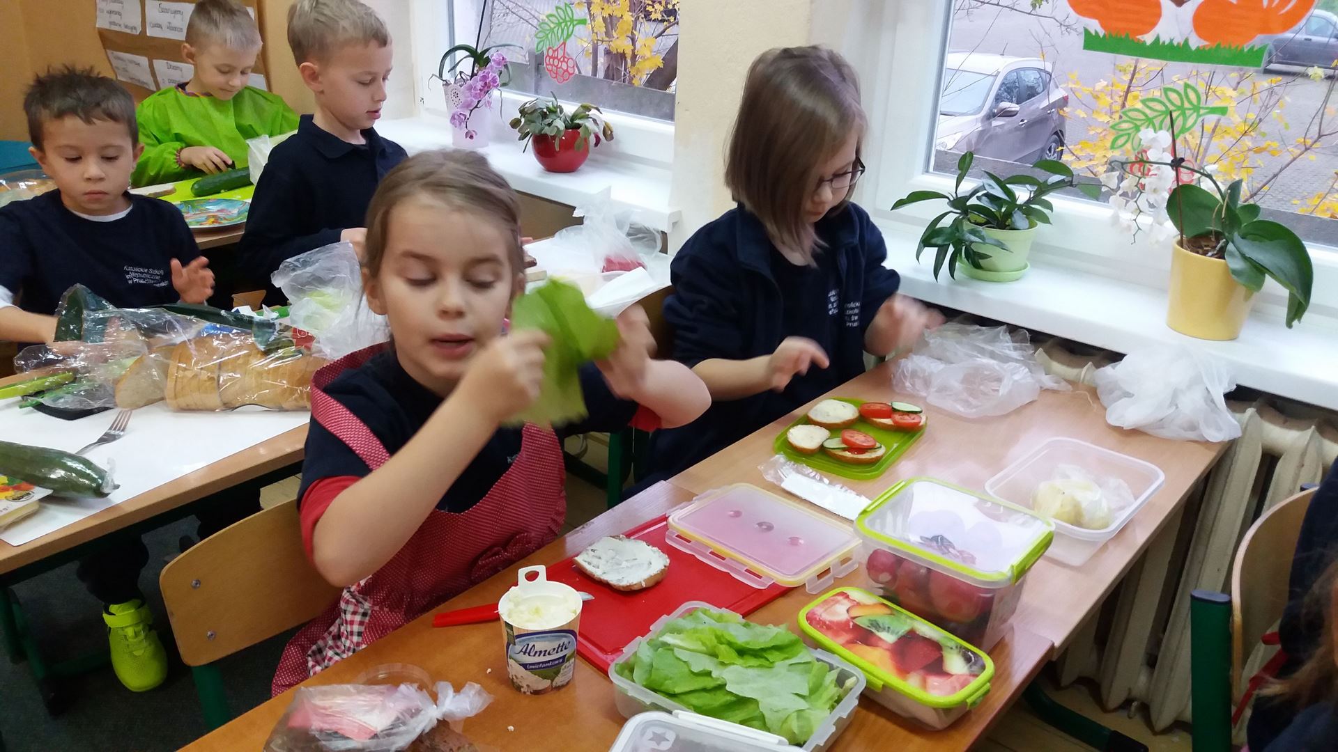 Tego dnia dzieci przyniosły do szkoły wszystko to, co jest niezbędne, aby przygotować „zdrowe śniadanie” tzn. świeże warzywa i owoce, masło, sery, ciemne pieczywo, soki, itp. Pamiętając o higienie i bezpieczeństwie, uczniowie każdej klasy, pod kontrolą swoich wychowawców, przygotowali swoje drugie śniadanie. Były to zdrowe, kolorowe i apetyczne kanapki, sałatki owocowe i koktajle. O godz. 10.00 dzieci klas 0-III przystąpiły do wspólnej degustacji przygotowanych przez siebie zdrowych śniadań. Zrobione własnoręcznie, smakowały wyjątkowo.