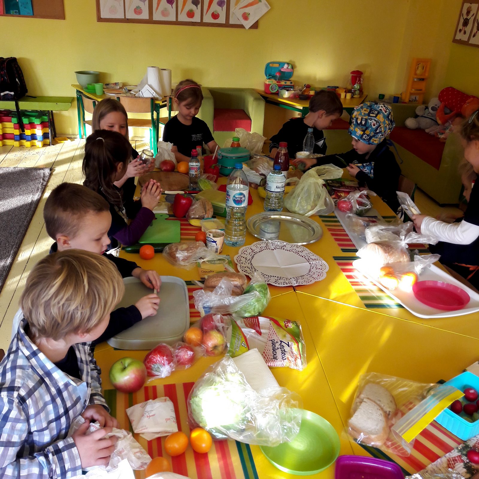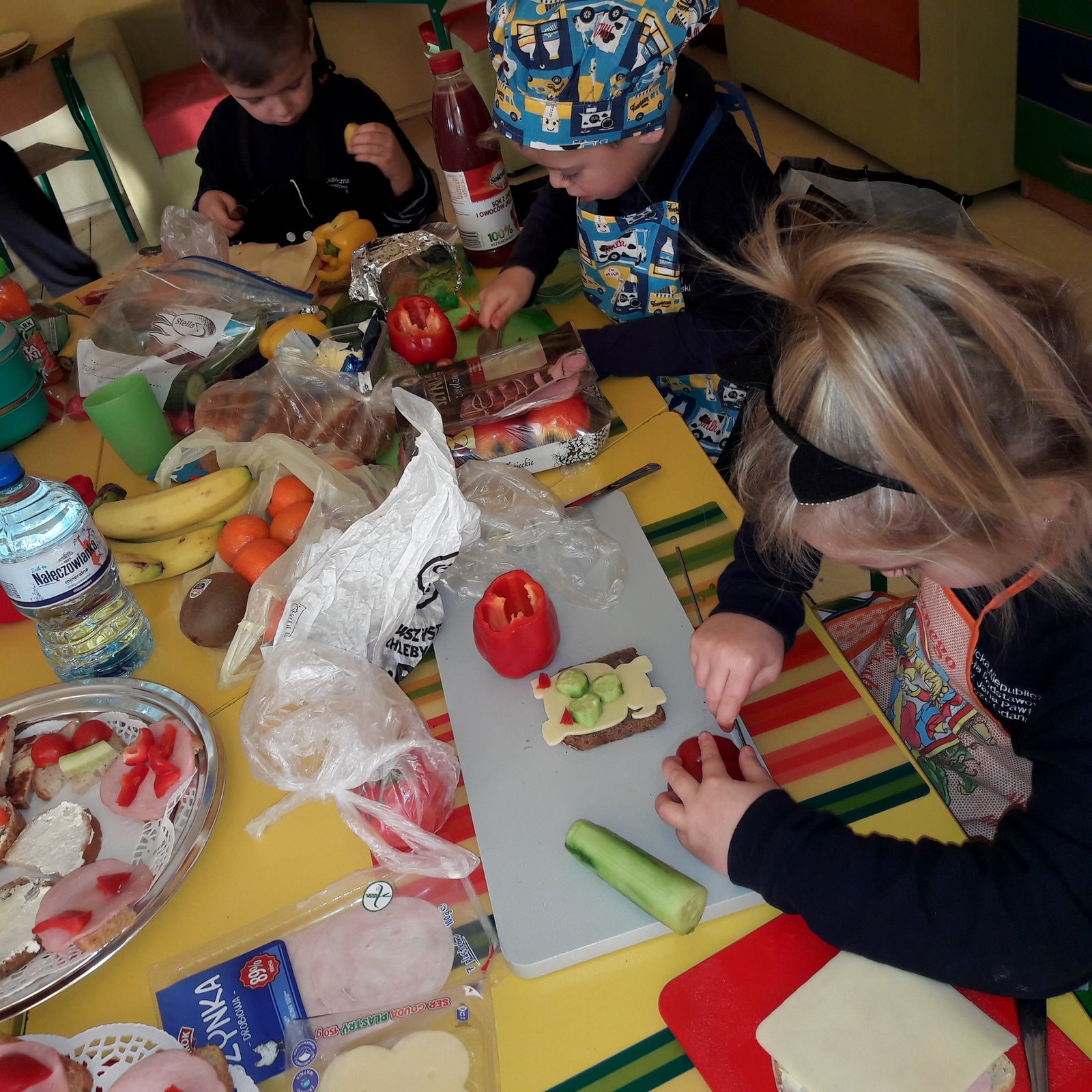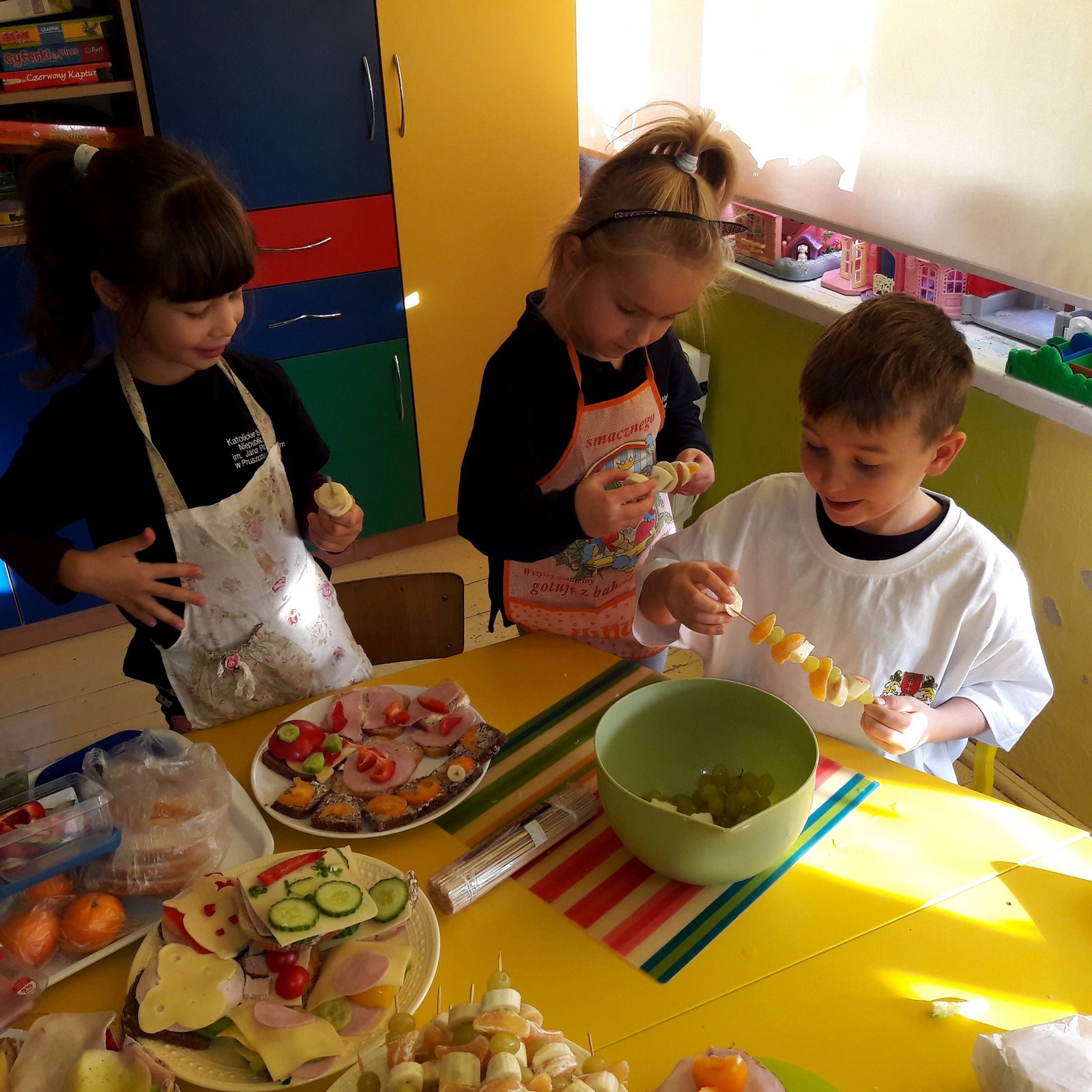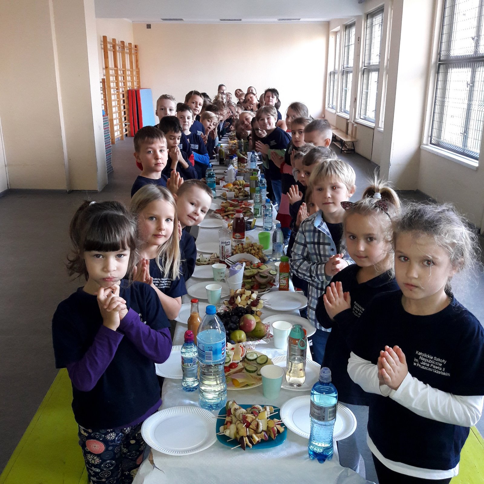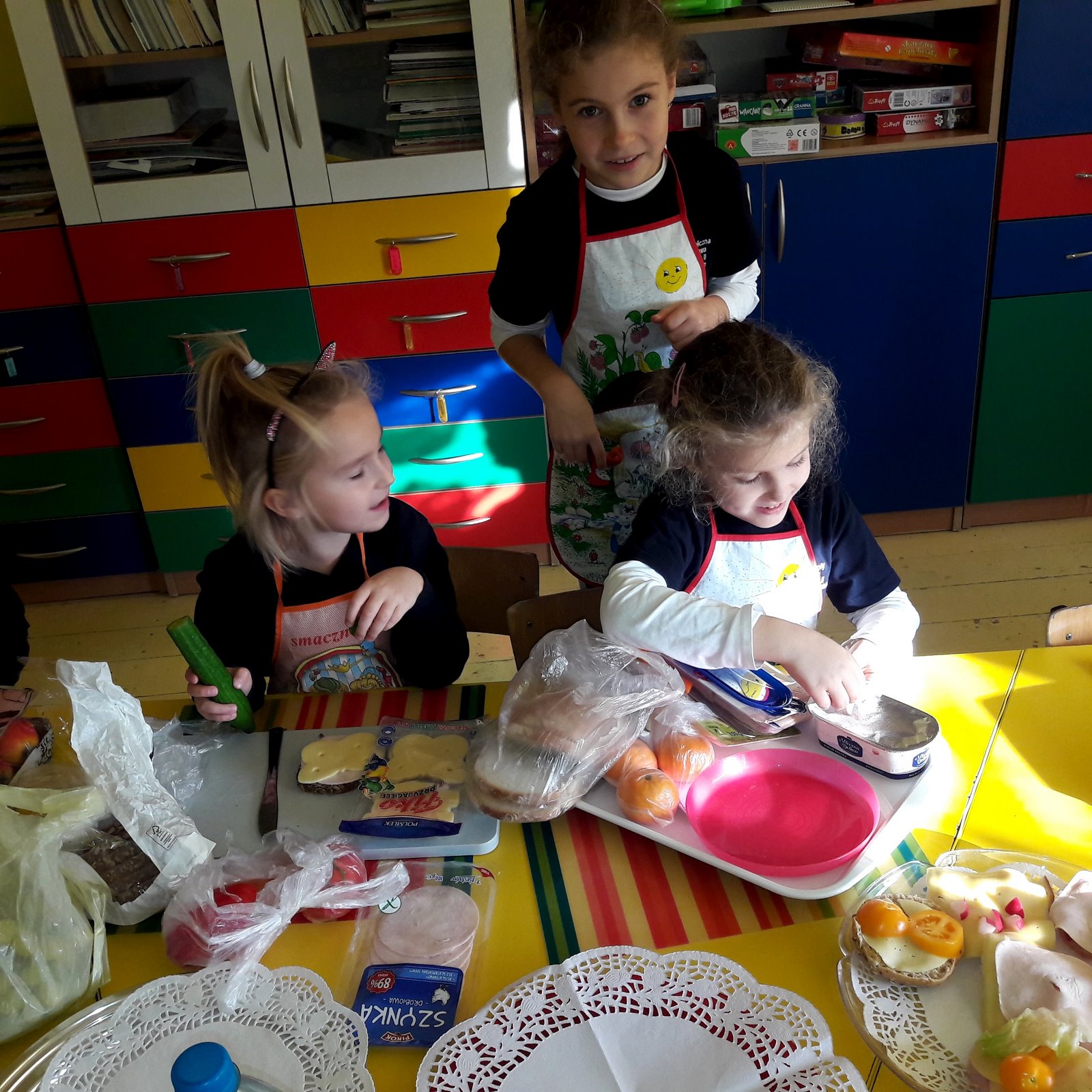 W związku z tym przeprowadzone zostały zajęcia podczas których dzieci dowiedziały się jak zdrowo odżywiać się i jak przygotować najważniejszy posiłek dnia. Zwieńczeniem zajęć było przygotowanie kanapek, które stanowiły wspólny posiłek wszystkich klas na sali gimnastycznej. To był zdrowy i pracowity dzień.