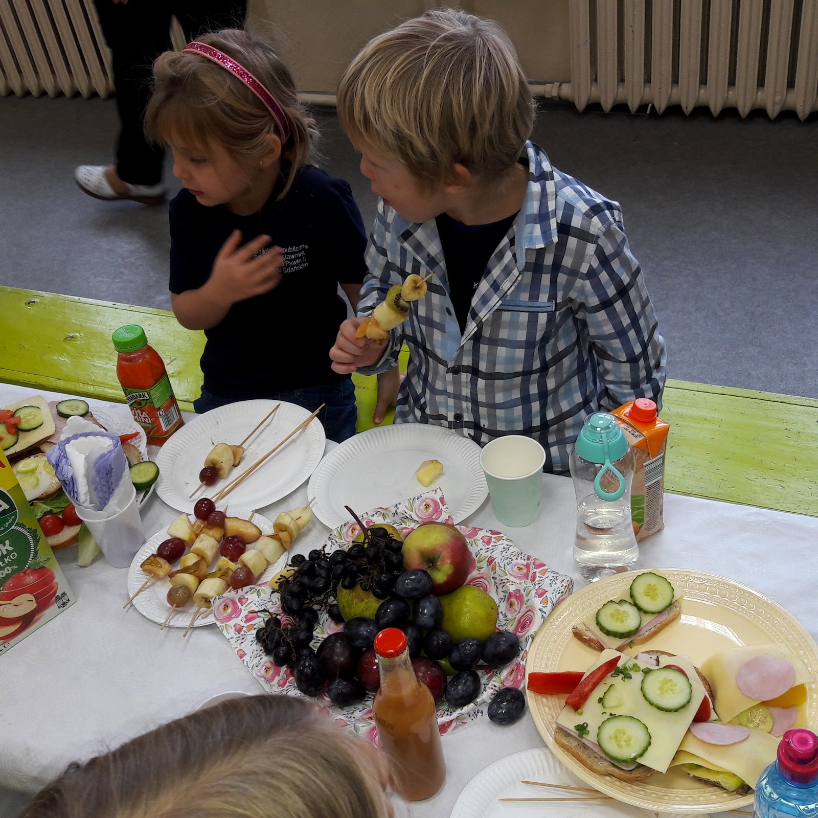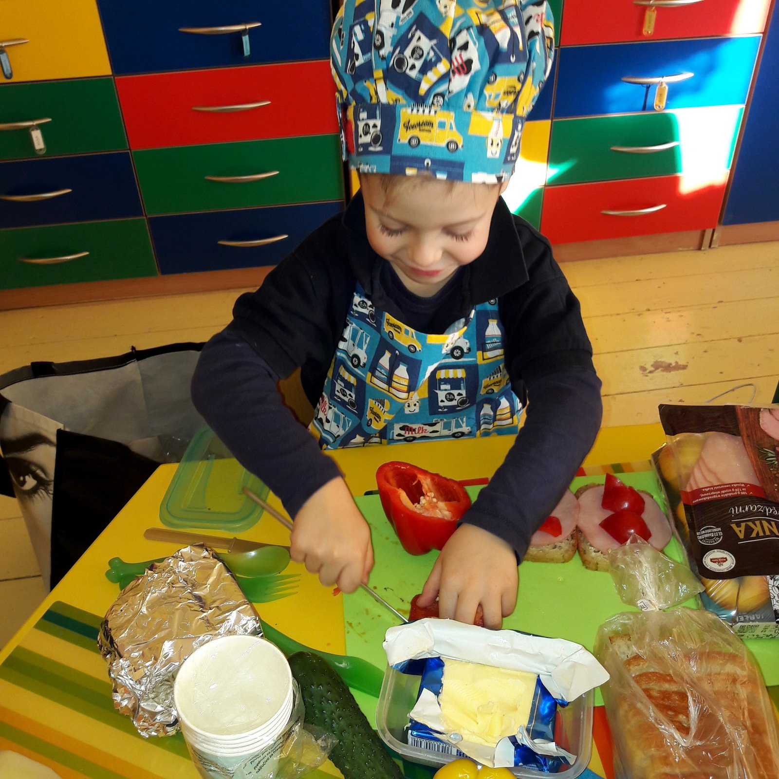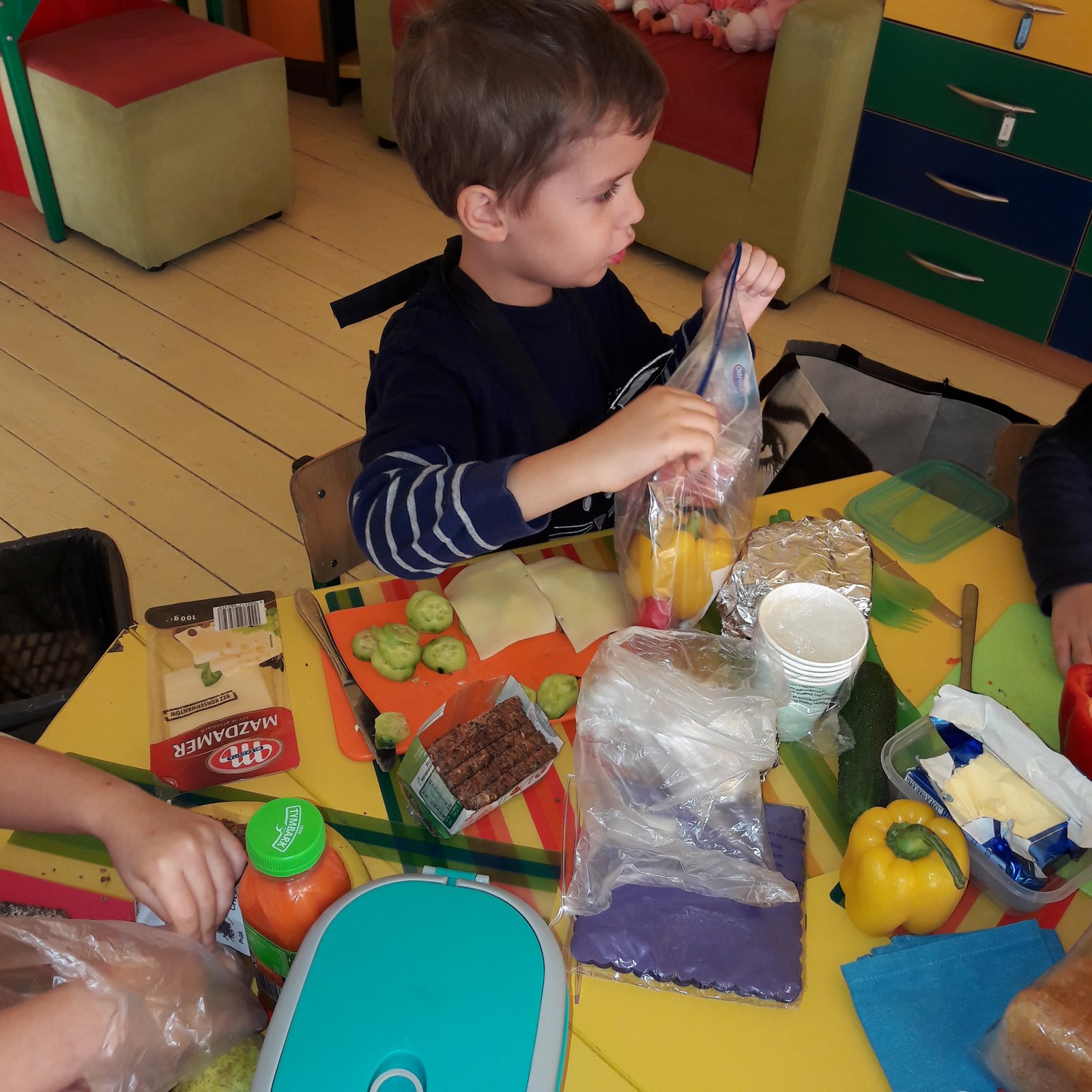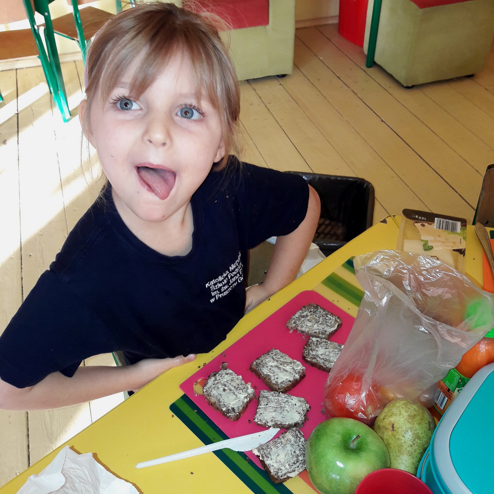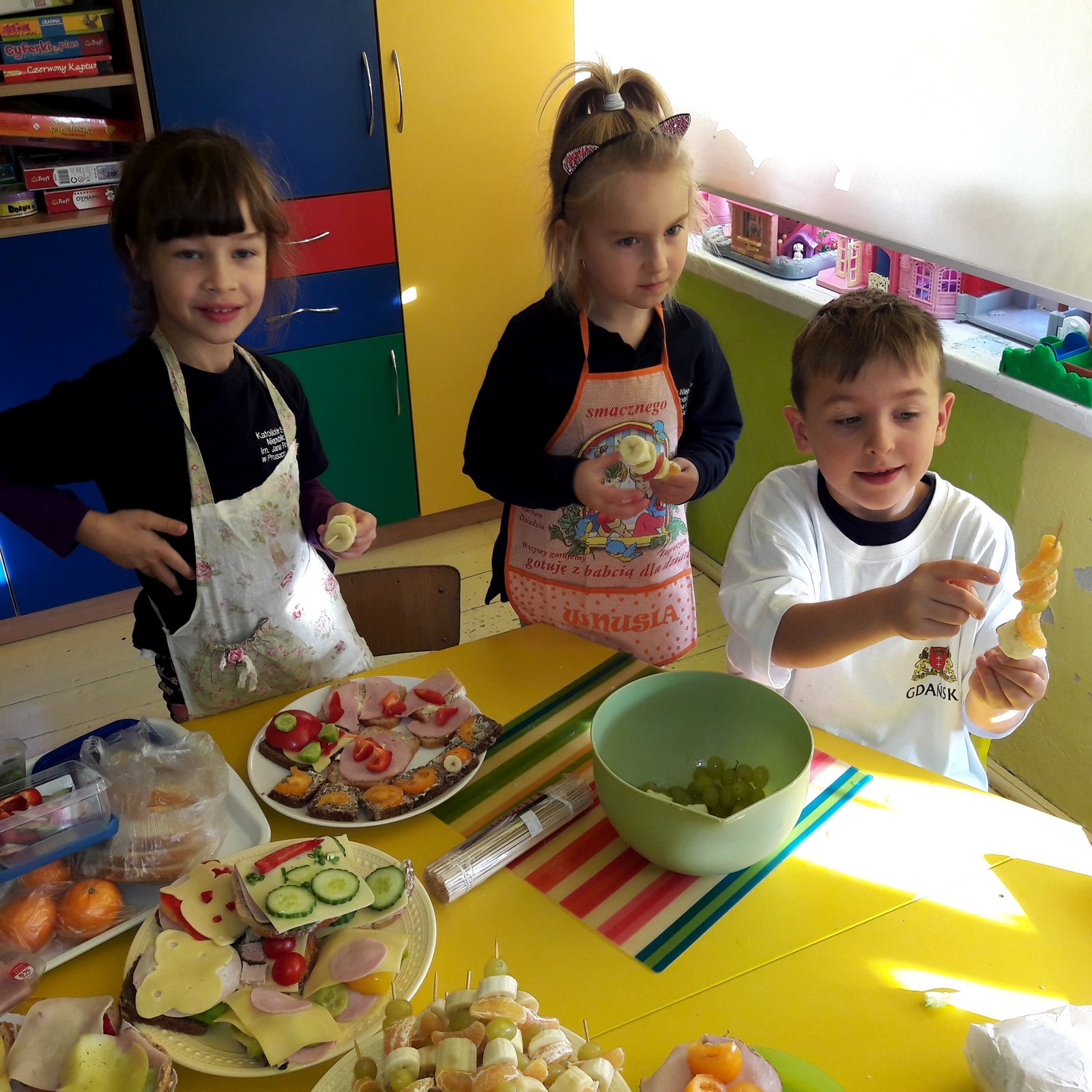 W związku z tym przeprowadzone zostały zajęcia podczas których dzieci dowiedziały się jak zdrowo odżywiać się i jak przygotować najważniejszy posiłek dnia. Zwieńczeniem zajęć było przygotowanie kanapek, które stanowiły wspólny posiłek wszystkich klas na sali gimnastycznej. To był zdrowy i pracowity dzień.