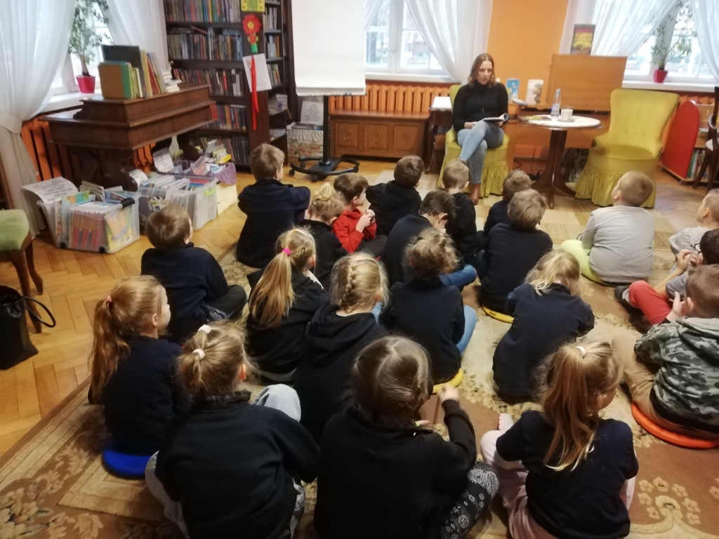 Pierwszoklasiści wzięli udział w spotkaniu autorskim z panią Magdą Bielecką, zorganizowanym przez Powiatową i Miejską Bibliotekę Publiczną w Pruszczu Gdańskim. Mieli okazję posłuchać o pracy pisarza i o korzyściach z czytania książek. Poznali także stworzonych przez Panią Magdę bohaterów literackich - Telepatka i Melepetka :)