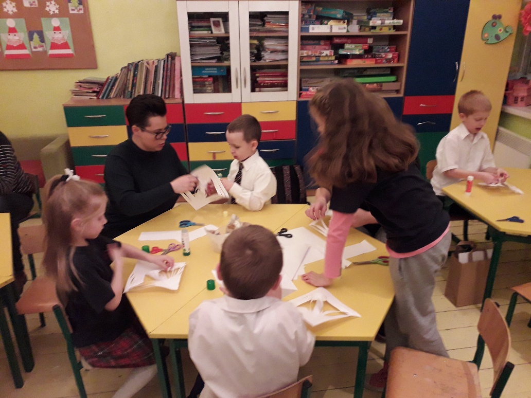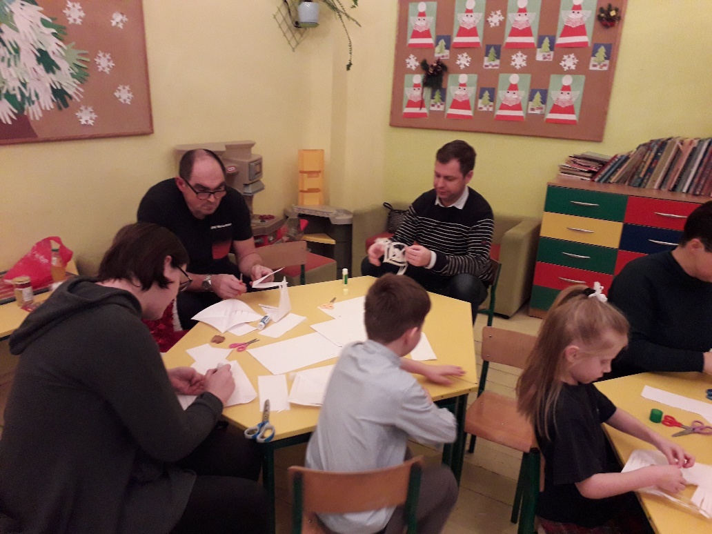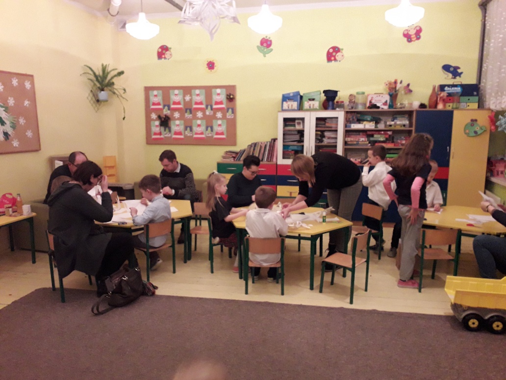 Święta tuż, tuż...i właśnie z tej okazji rodzice wraz z uczniami klasy zero spotkali się, aby udekorować salę. Wszyscy ochoczo przystąpili do pracy. W ramach integracji jedna z mam przyniosła własnoręcznie upieczone ciasteczka. Były bardzo smaczne. Atmosfera była iście świateczna. A oto efekty .....