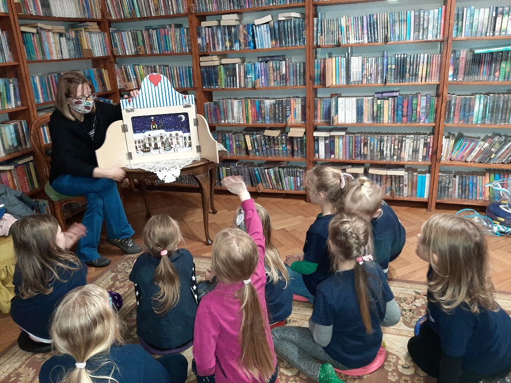 Dzisiaj uczniowie klasy drugiej wybrali się do Powiatowej I Miejskiej Biblioteki Publicznej w Pruszczu Gdańskim na spotkanie z teatrzykiem kamishibai. Pani Asia zaprezentowała nam baśń Hansa Christiana Andersena pt." Dziewczynka z zapałkami".