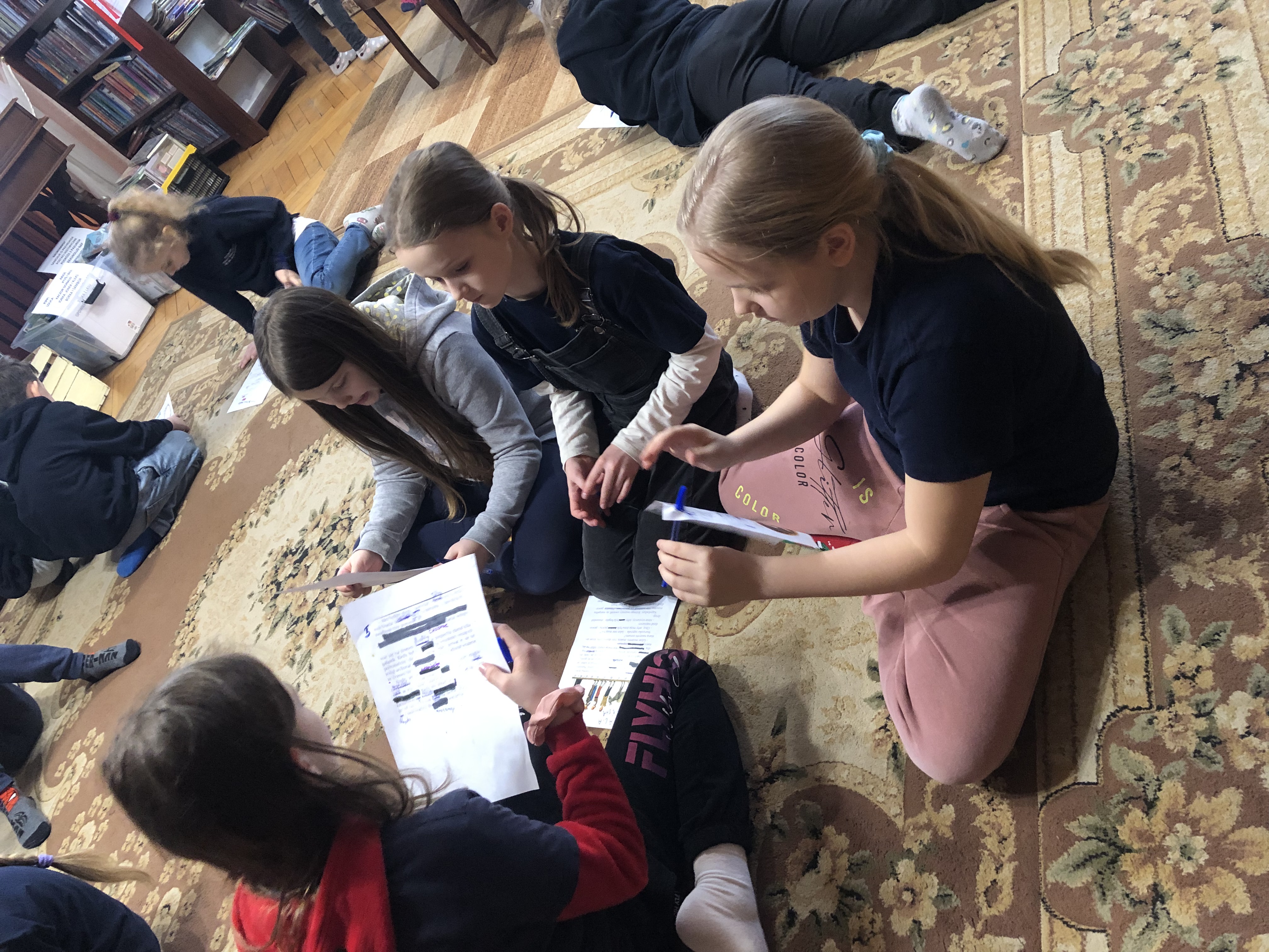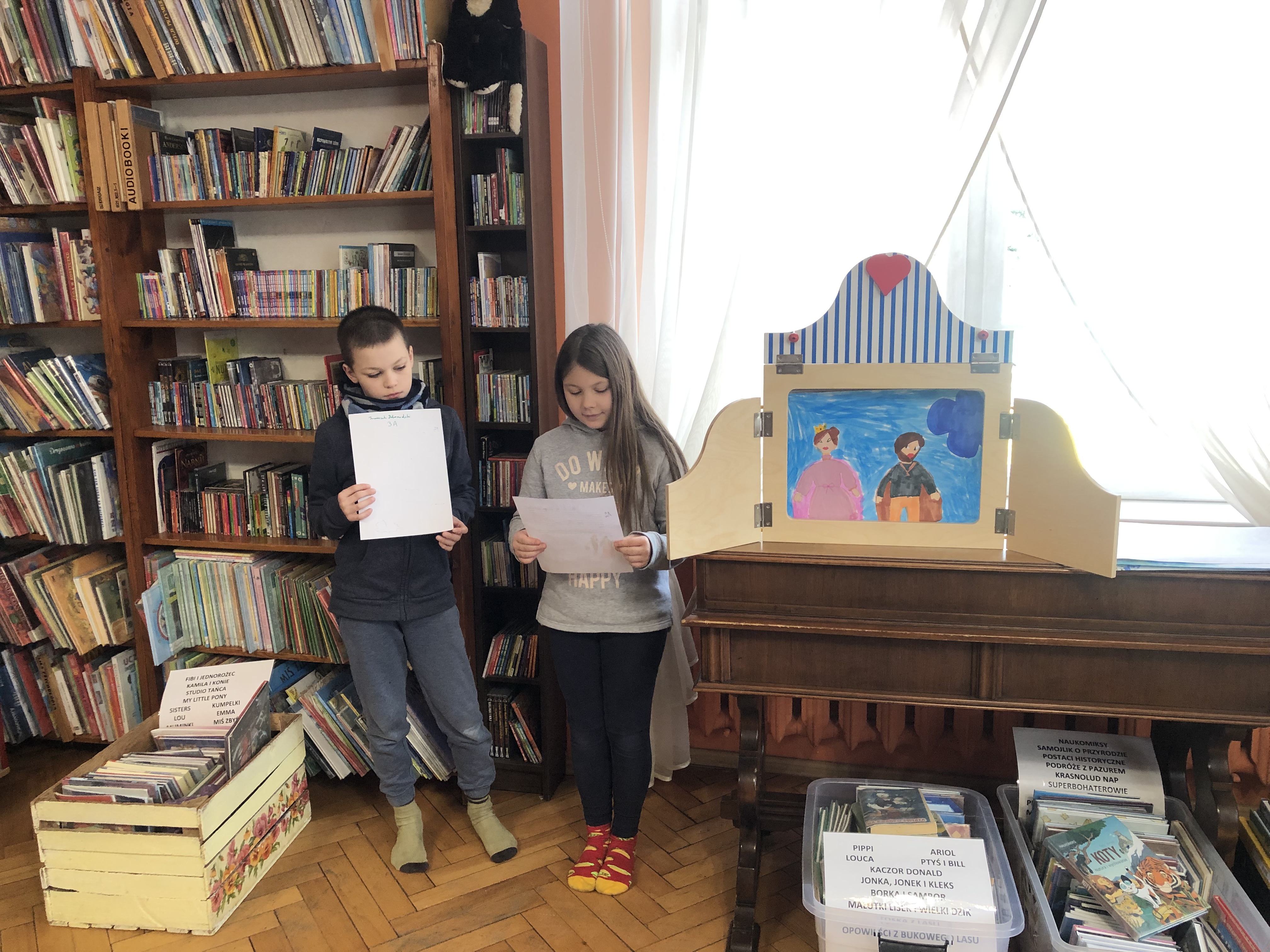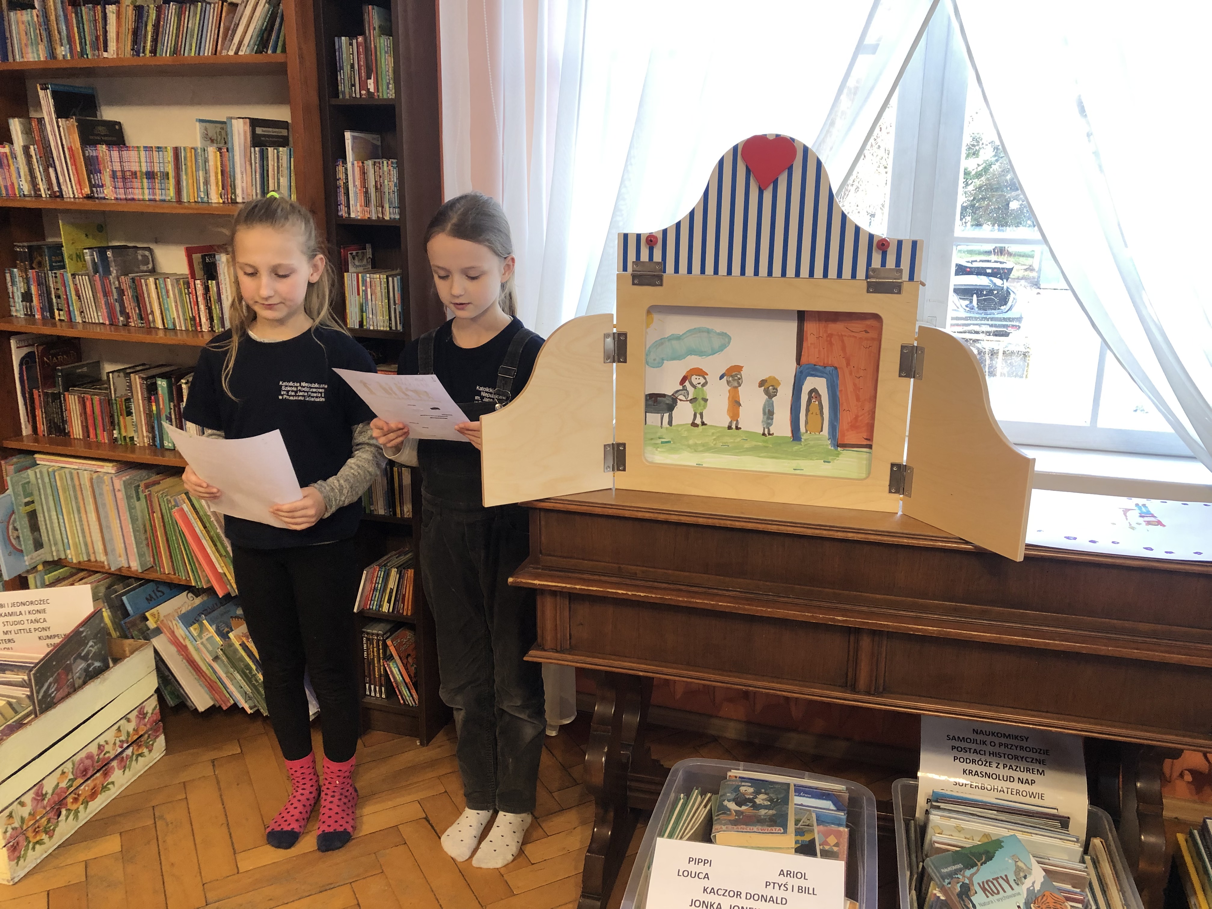 Uczniowie klasy 3 przygotowują się do zaprezentowania przedstawienia, które będzie wystawione jako zwieńczenie projektu pt. Spotkania z teatrzykiem kamishibai, który realizowany był przy współpracy z PiMBP w Pruszczu Gdańskim.