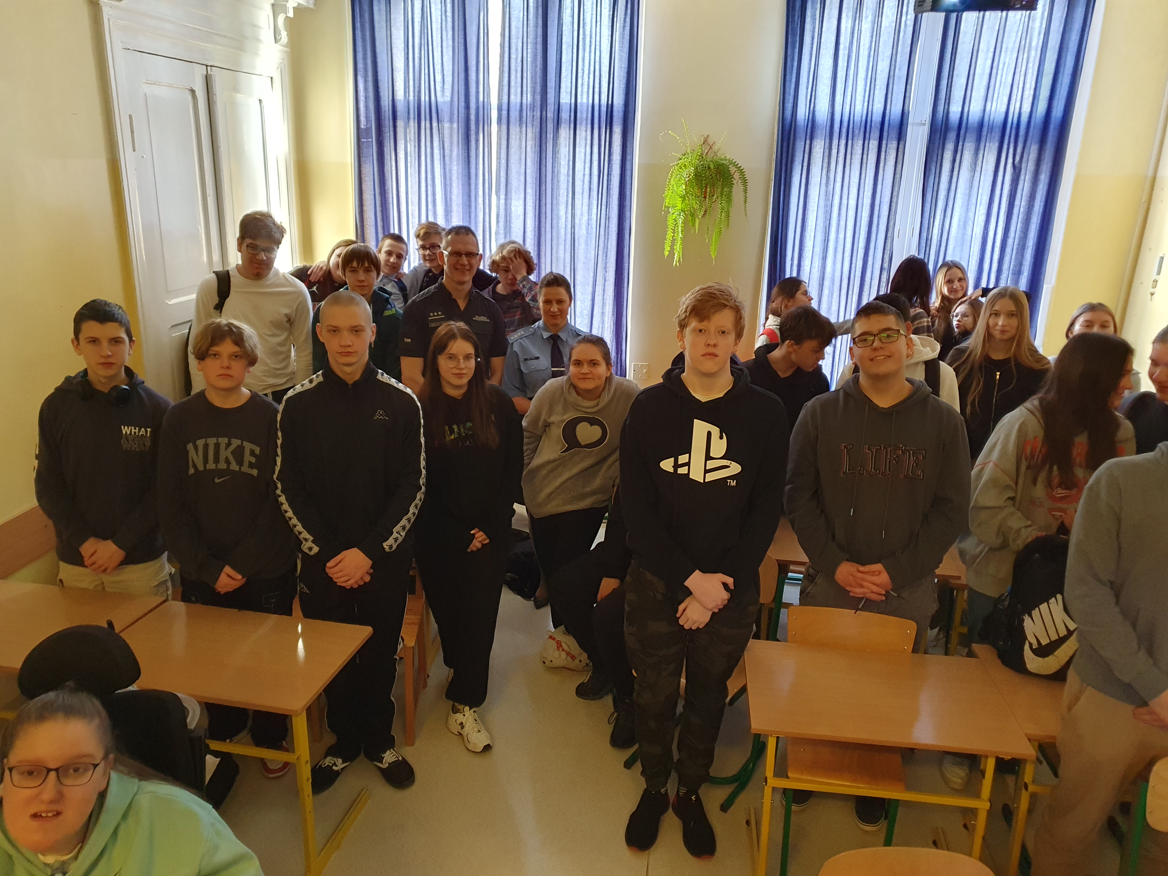 Podczas spotkania poruszyli oni tematykę dotyczącą między innymi zadań Służby Więziennej, strukturę organizacyjną jednostek, typologię jednostek penitencjarnych jak i kwestię umundurowania funkcjonariuszy. Zasygnalizowana została istota uzbrojenia znajdującego się na wyposażeniu jednostek oraz używania środków przymusu bezpośredniego. Nasi dzielni licealiści zmierzyli się także z quizem polegającym na rozszyfrowaniu skrótów oznaczających np. typy zakładów karnych.