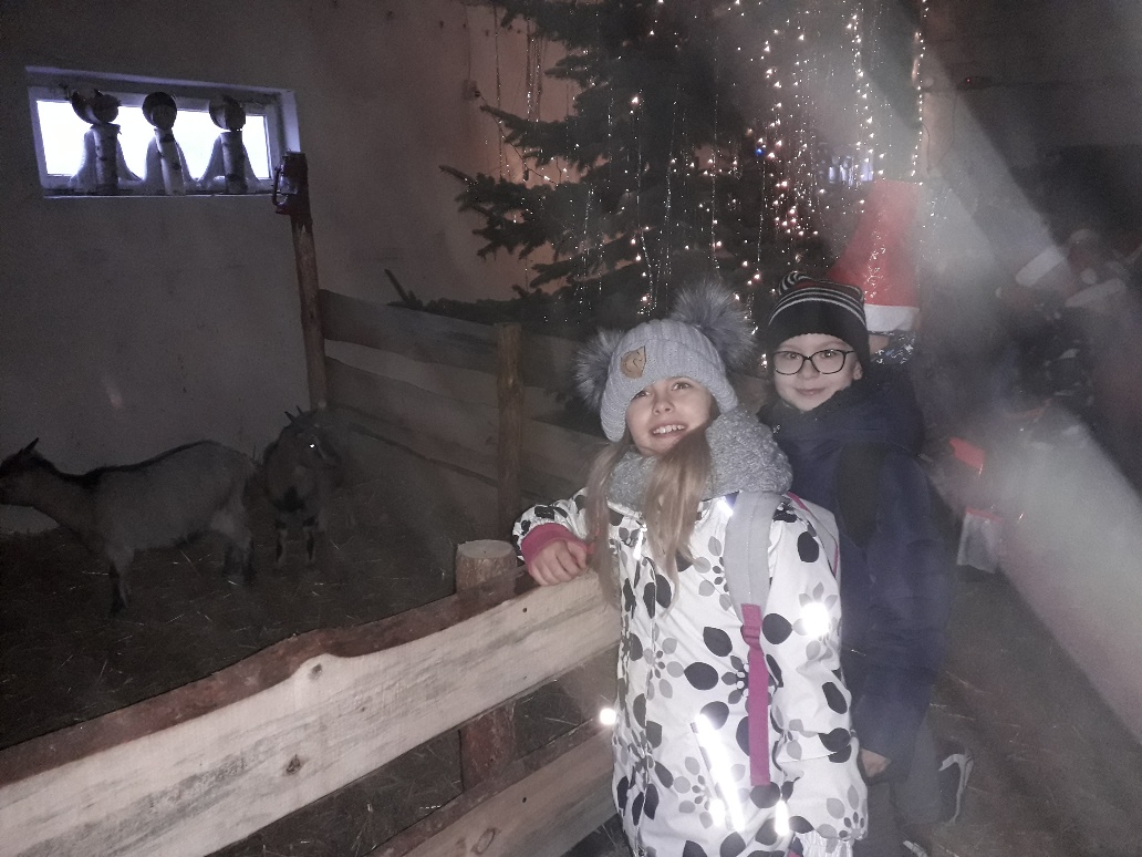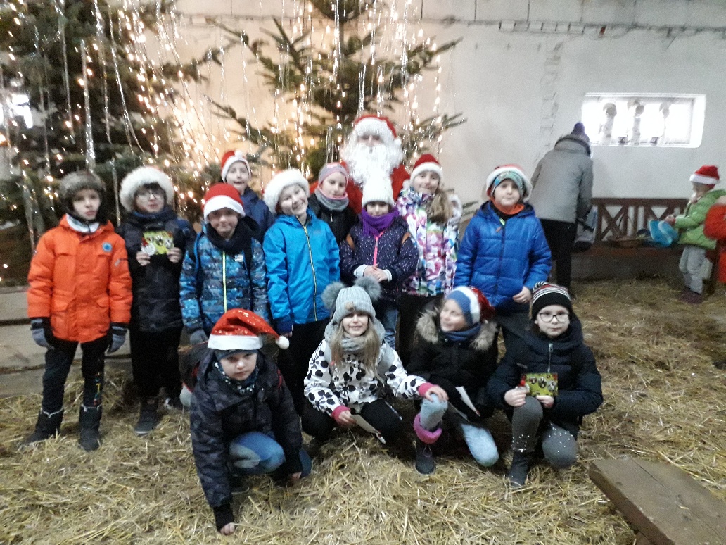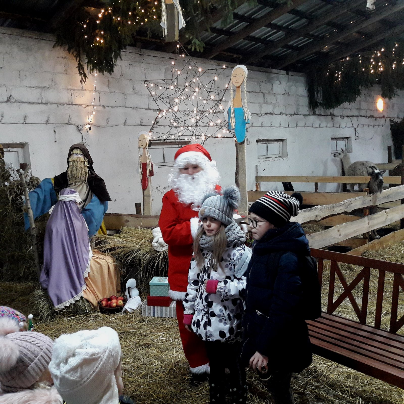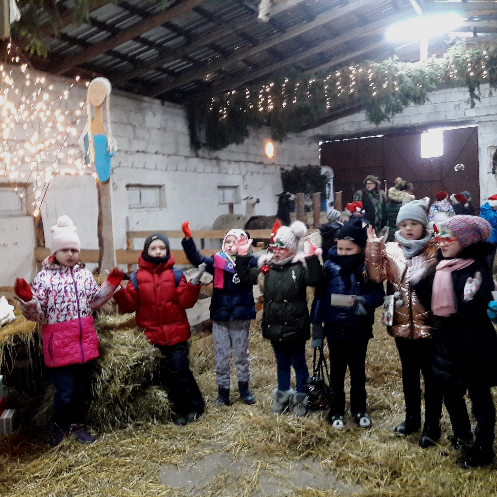 W Zagrodzie Wiejskiej, uczniowie edukacji wczesnoszkolnej spotkali się z Mikołajem, brali udział w jasełkach i kolędowały. Miały okazję zobaczyć i nakarmić żywe zwierzęta. Dzieci zostały poczęstowane gorącą herbatą, przepysznym ciasteczkiem oraz otrzymały kartki z życzeniami. To był wspaniały mikołajkowy dzień.