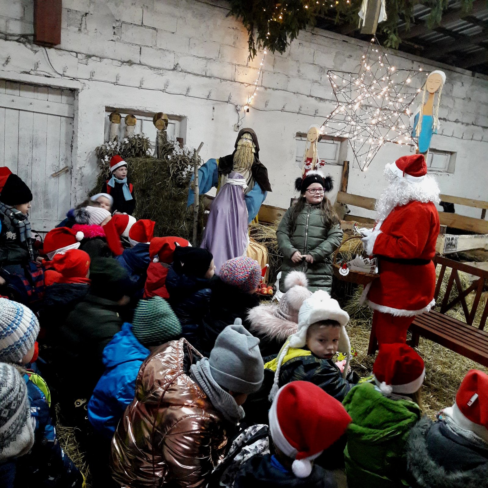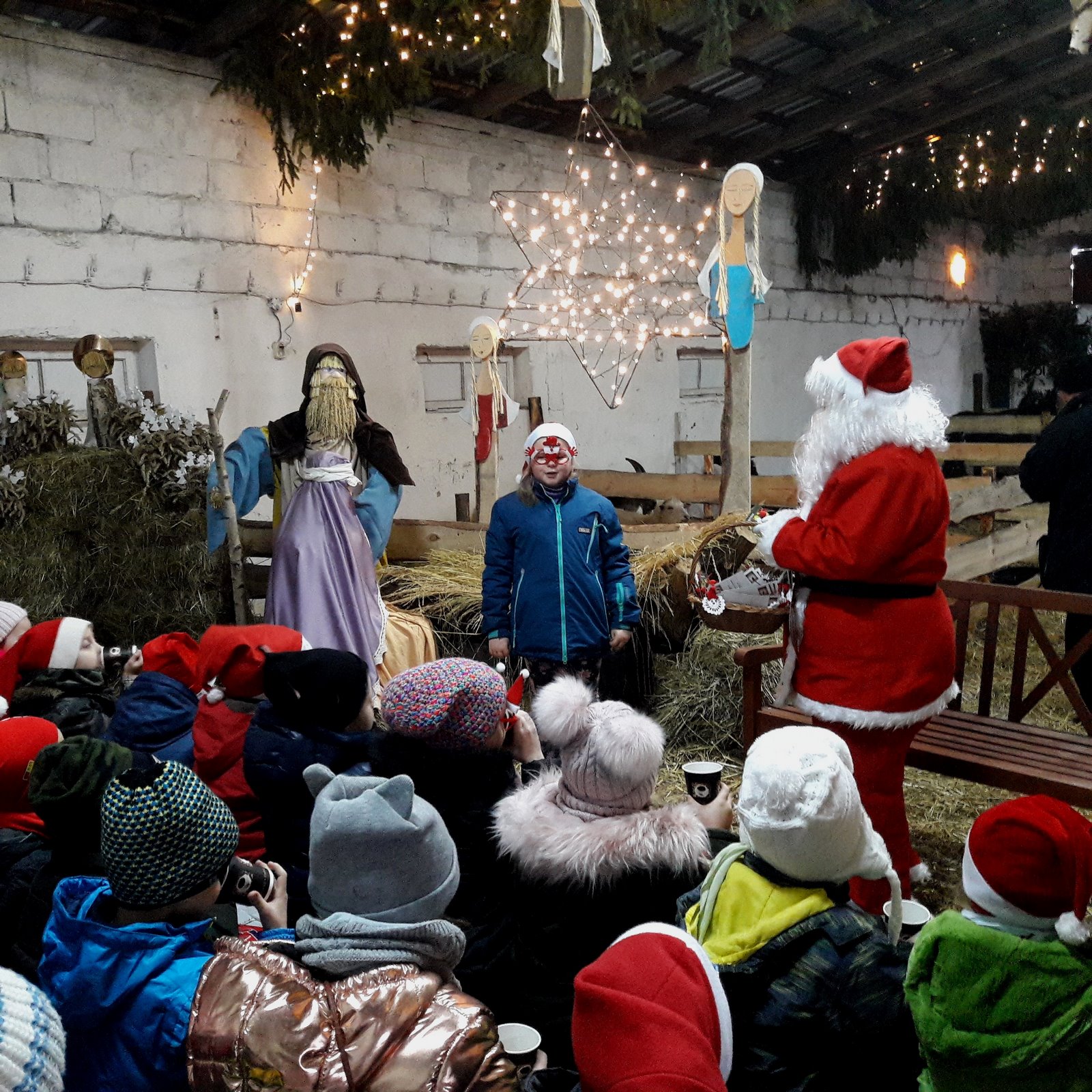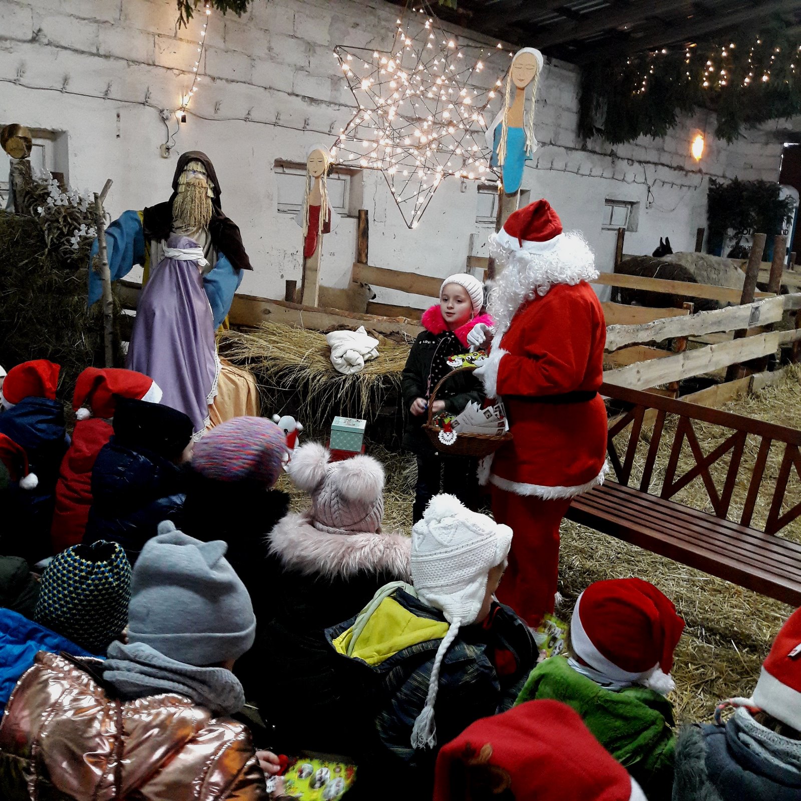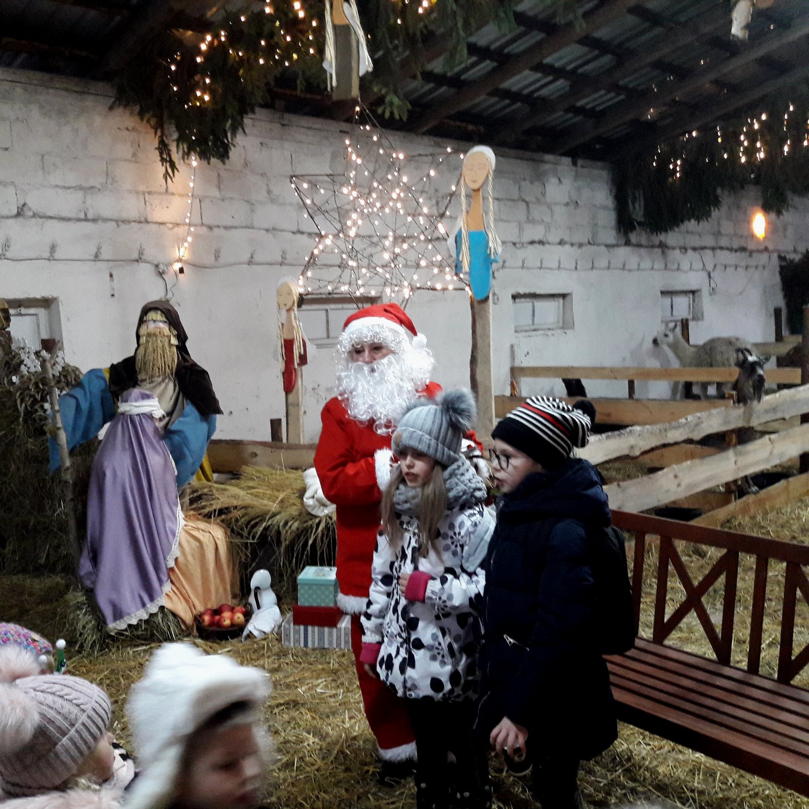 W Zagrodzie Wiejskiej, uczniowie edukacji wczesnoszkolnej spotkali się z Mikołajem, brali udział w jasełkach i kolędowały. Miały okazję zobaczyć i nakarmić żywe zwierzęta. Dzieci zostały poczęstowane gorącą herbatą, przepysznym ciasteczkiem oraz otrzymały kartki z życzeniami. To był wspaniały mikołajkowy dzień.