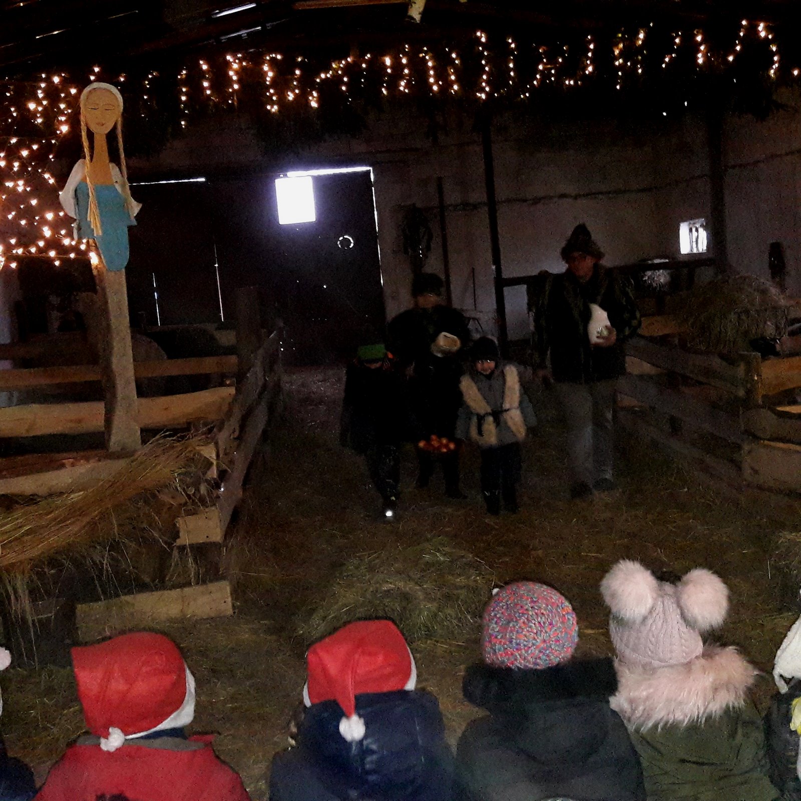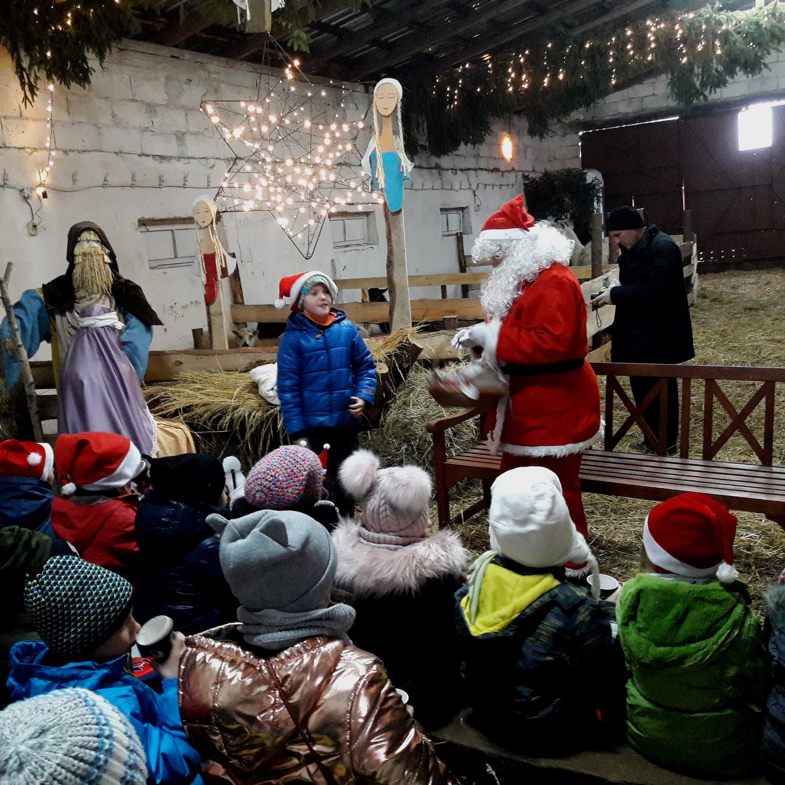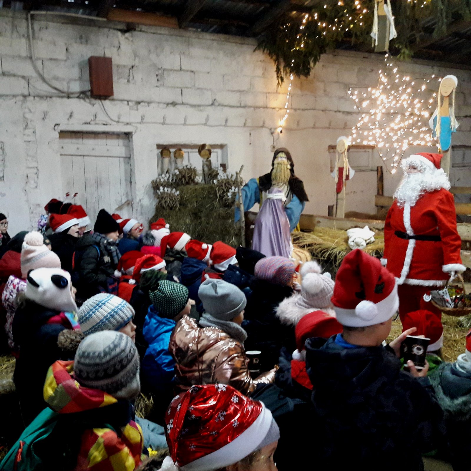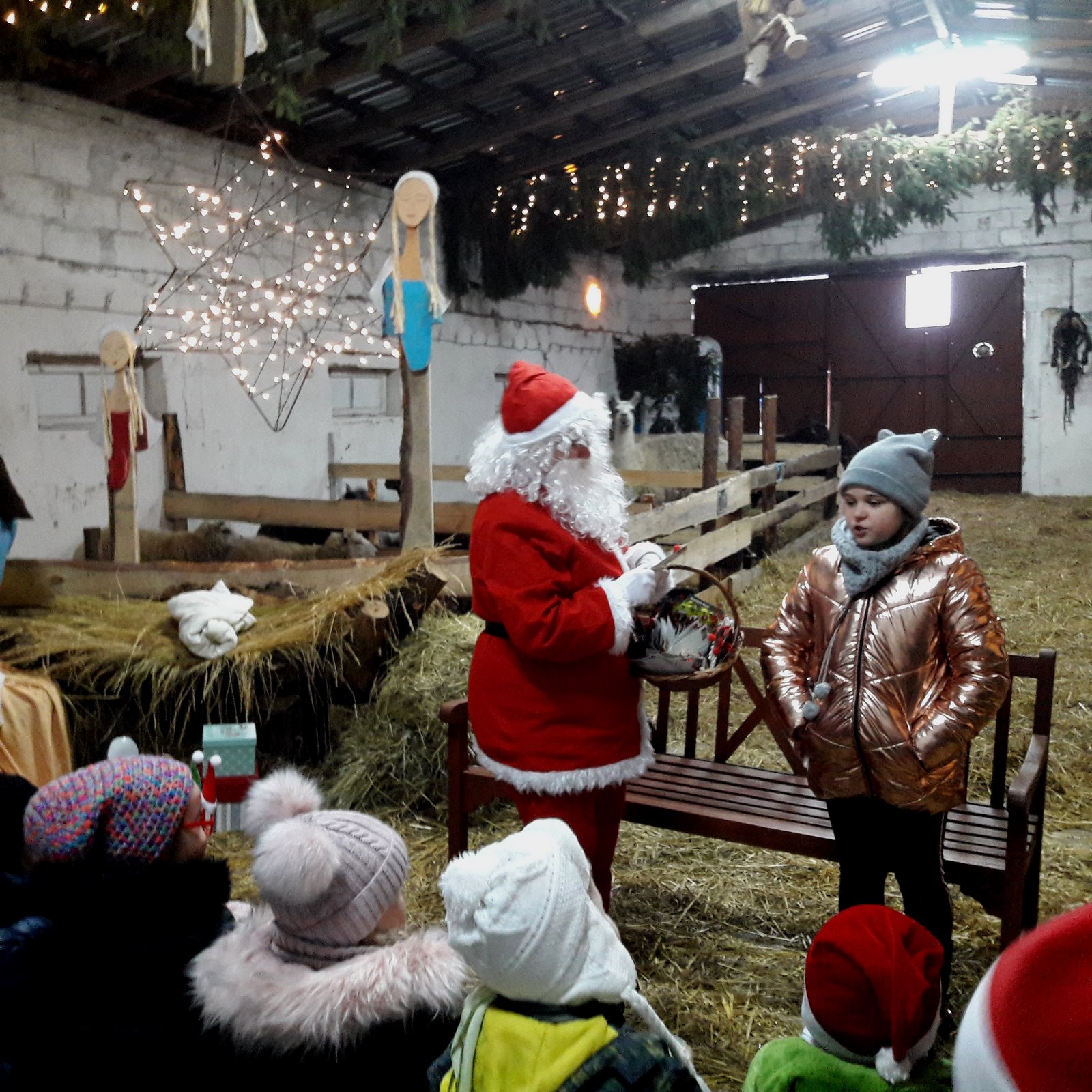 W Zagrodzie Wiejskiej, uczniowie edukacji wczesnoszkolnej spotkali się z Mikołajem, brali udział w jasełkach i kolędowały. Miały okazję zobaczyć i nakarmić żywe zwierzęta. Dzieci zostały poczęstowane gorącą herbatą, przepysznym ciasteczkiem oraz otrzymały kartki z życzeniami. To był wspaniały mikołajkowy dzień.
