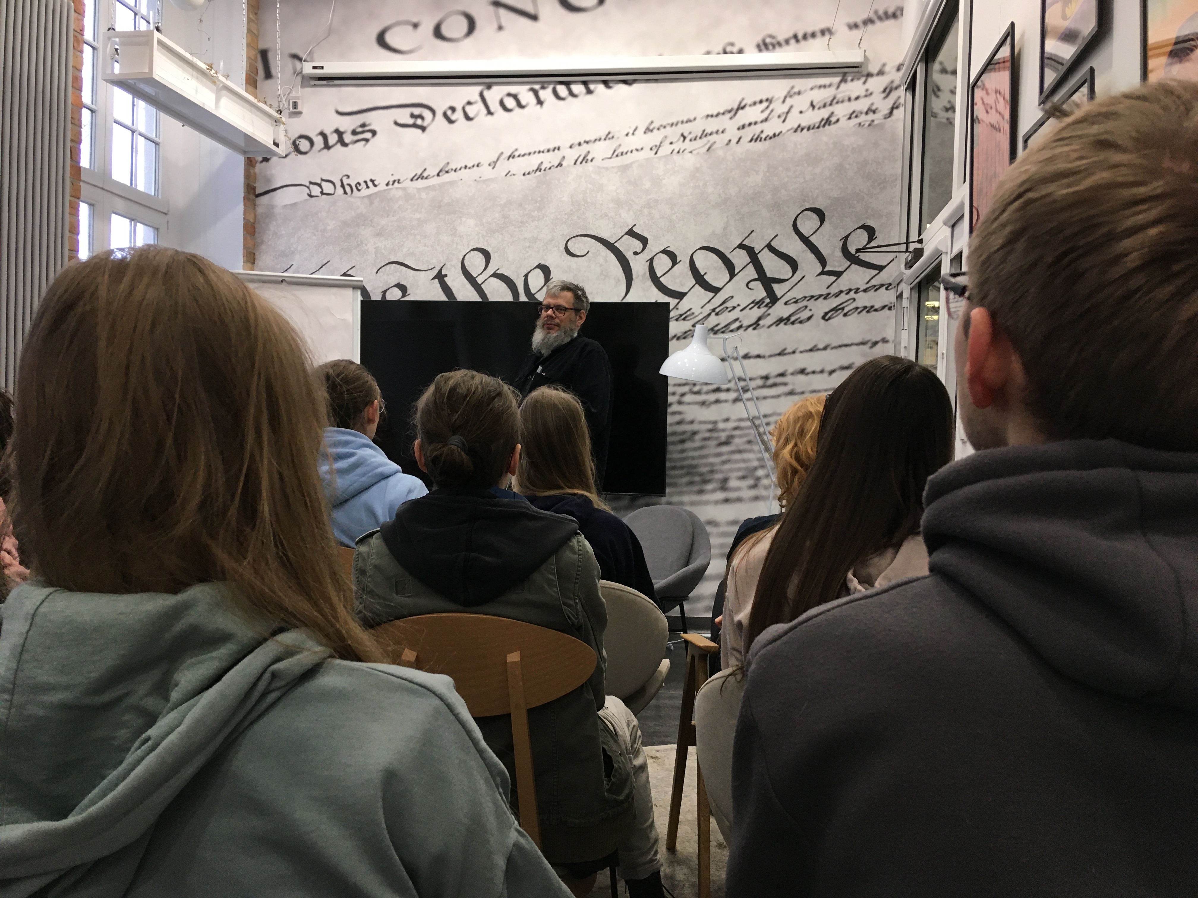 We wtorek 7. marca Janek z klasy 1. LO uczestniczył w spotkaniu z pisarzem i ilustratorem Pawłem Wakułą, autorem między innymi serii o przygodach "Bjorna".