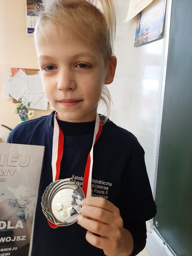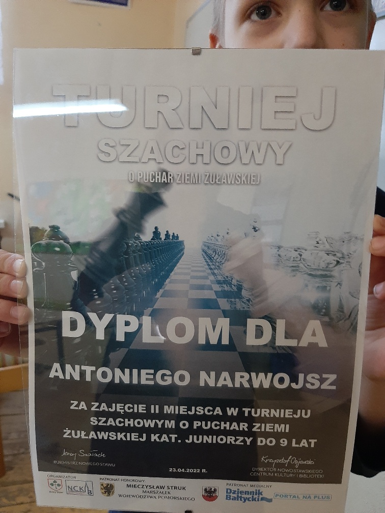UCZEŃ KLASY II ANTONI NARWOJSZ ZAJĄŁ II MIEJSCE W TURNIEJU SZACHOWYM O PUCHAR ZIEMI ŻŁAWSKIEJ KAT. JUNIORZY DO 9 LAT.