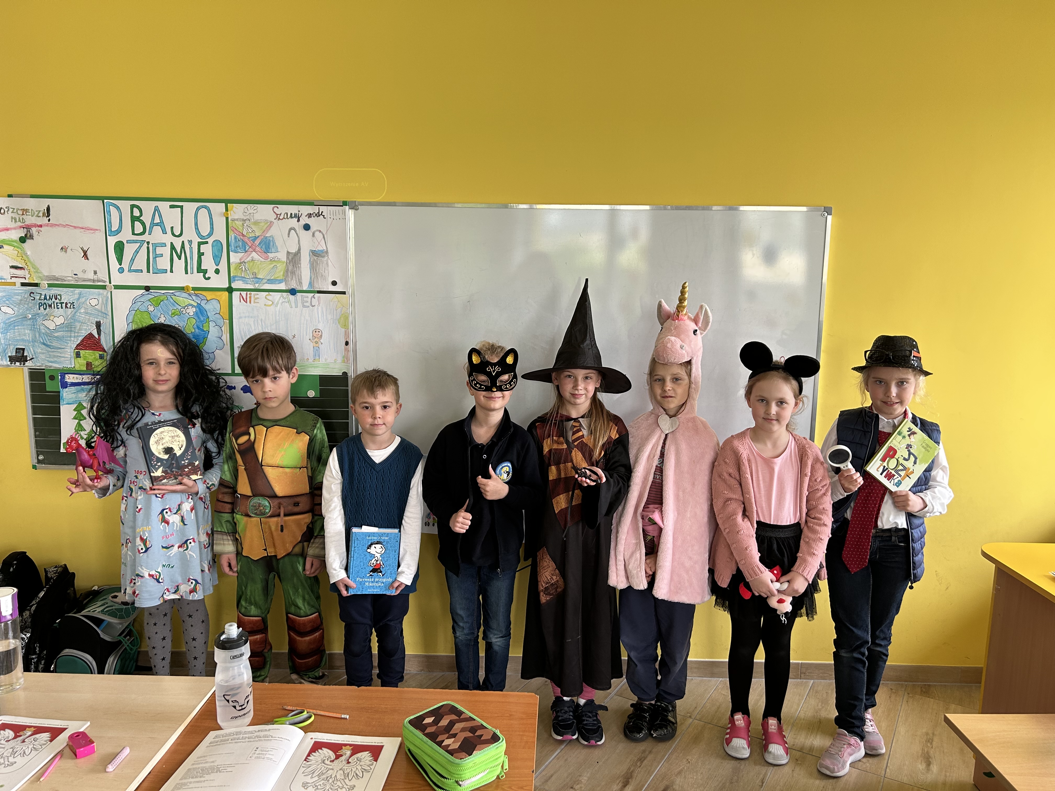 Każdy uczeń mógł przyjść przebrany za ulubioną postać z książki, pojawili się m.in. Kot w butach, Ania z Zielonego Wzgórza, Harry Potter, Mikołajek czy Robin Hood. Tego dnia odbywało się również wielkie wspólne czytanie książek: o godz. 10:20 uczniowie z klas licealnych oraz 8. szkoły podstawowej czytali fragmenty książek swoim rówieśnikom i młodszym kolegom i tak:
