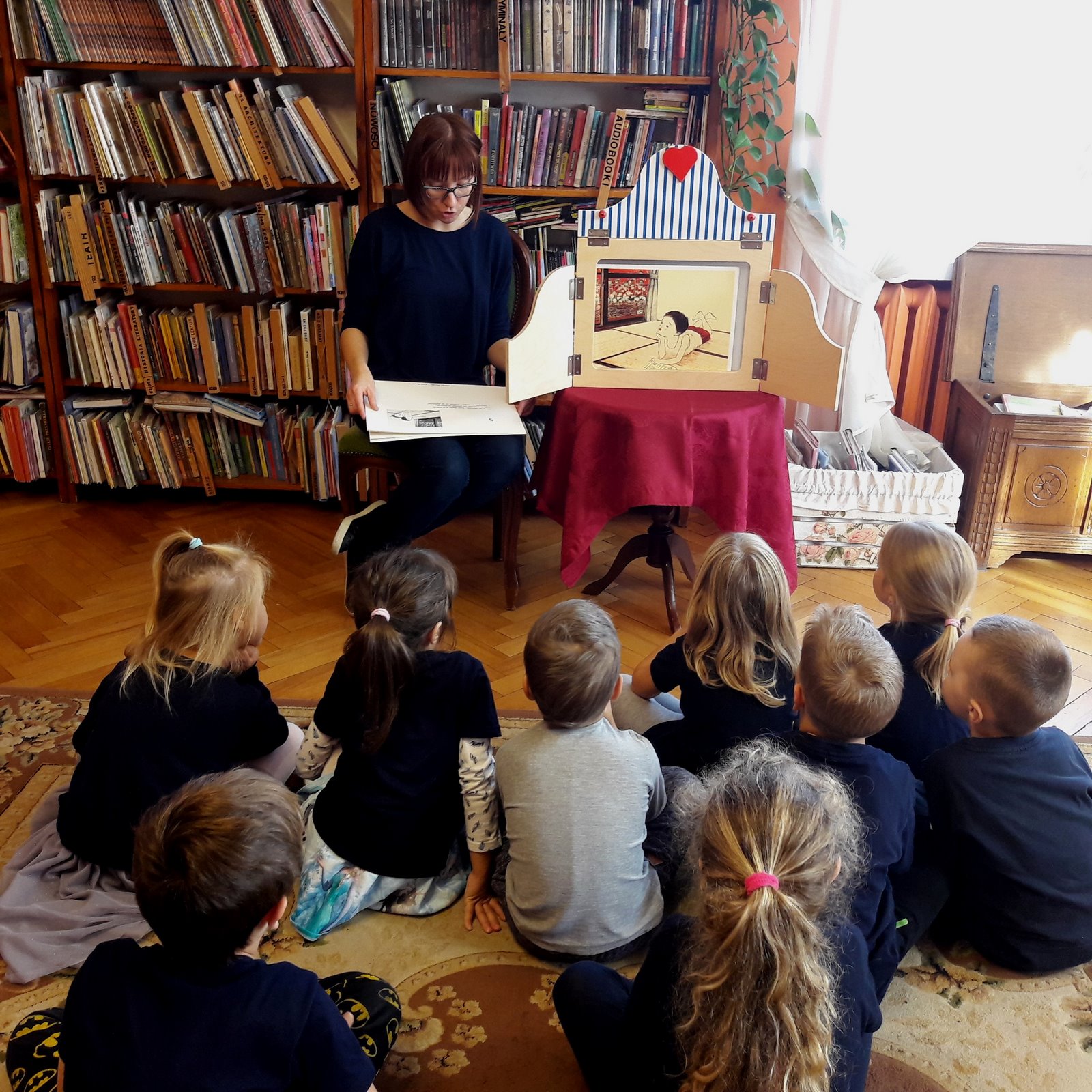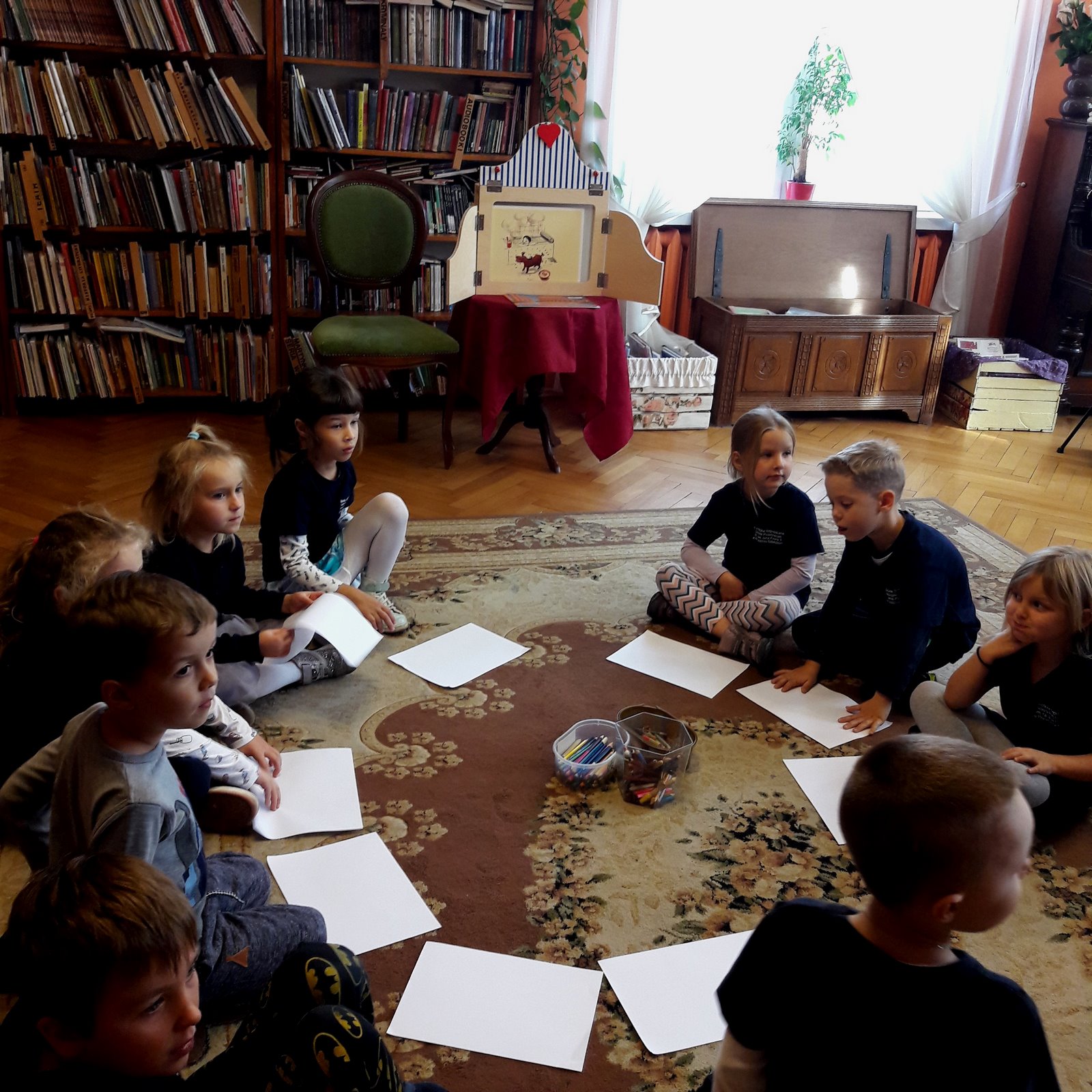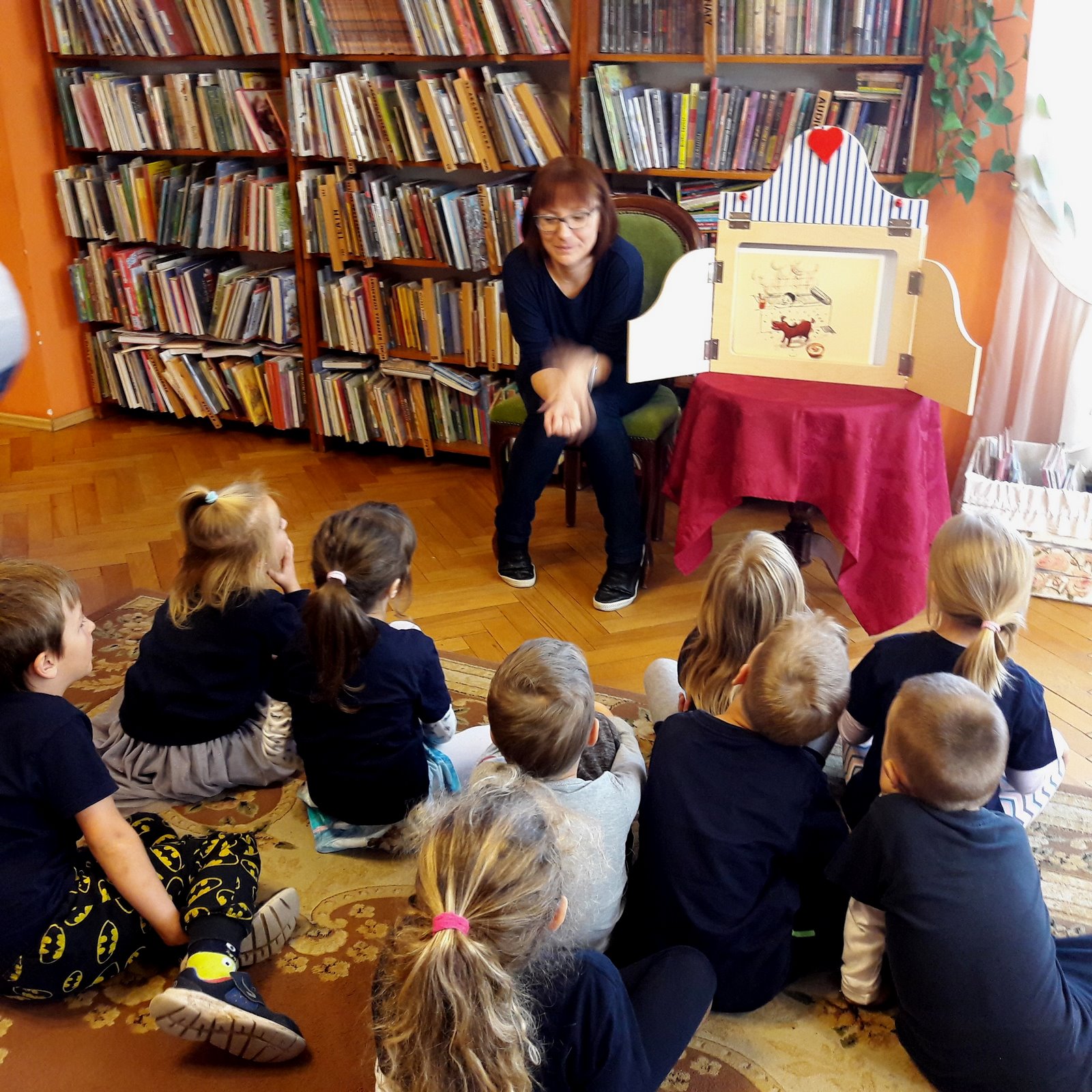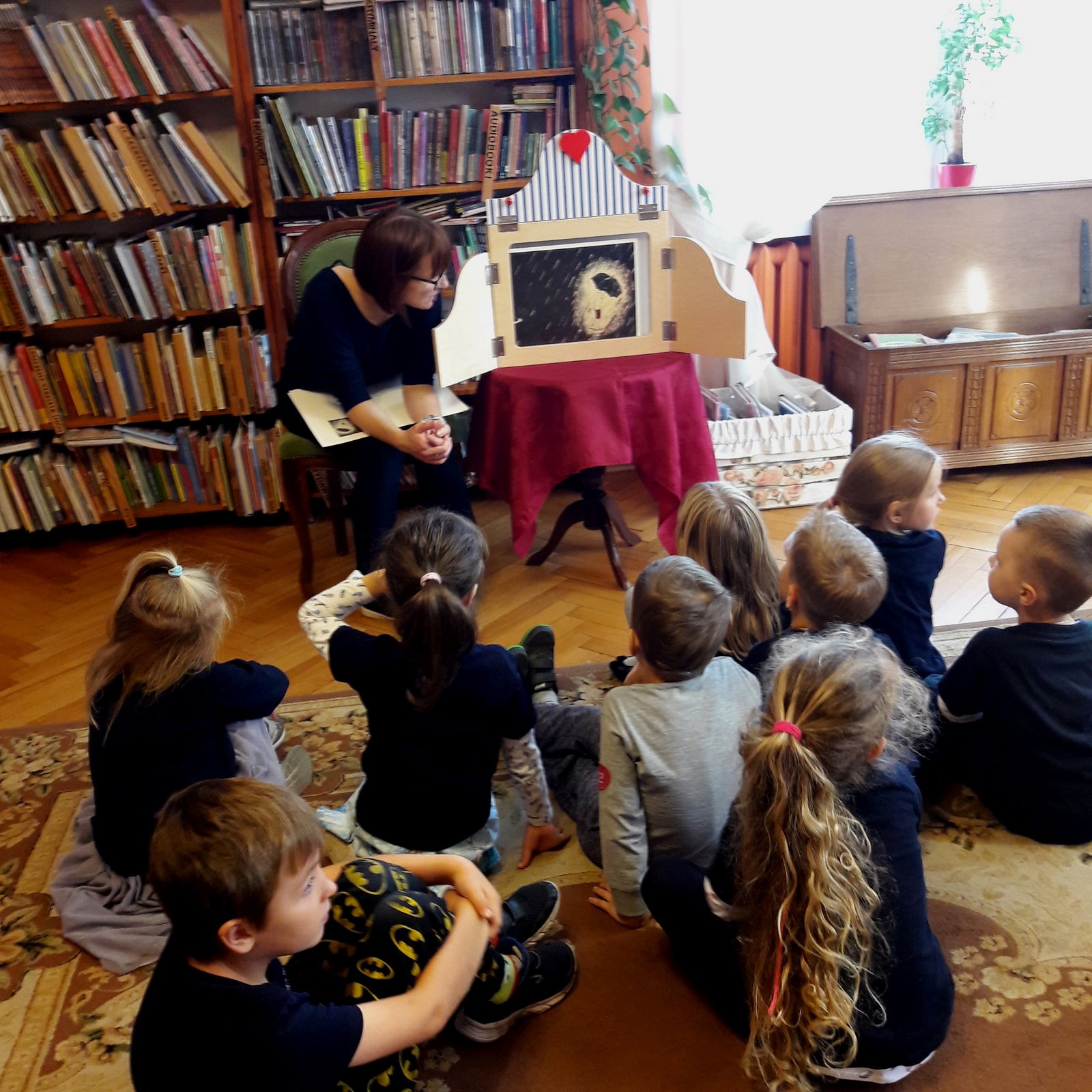16 października uczniowie zerówki uczestniczyli w kameralnym przedstawieniu „Szukając Marudka” w teatrze KAMISHIBAI w Miejskiej Bibliotece Publicznej.