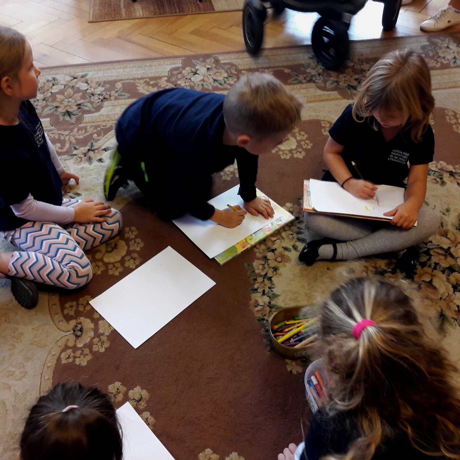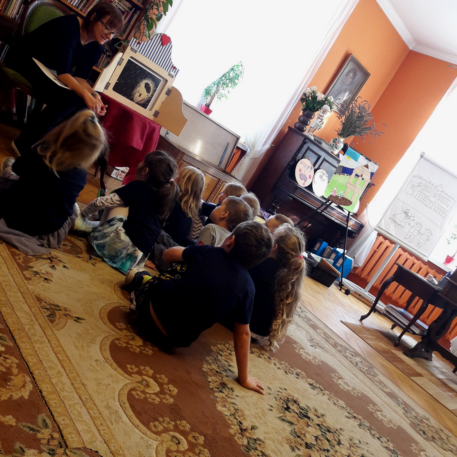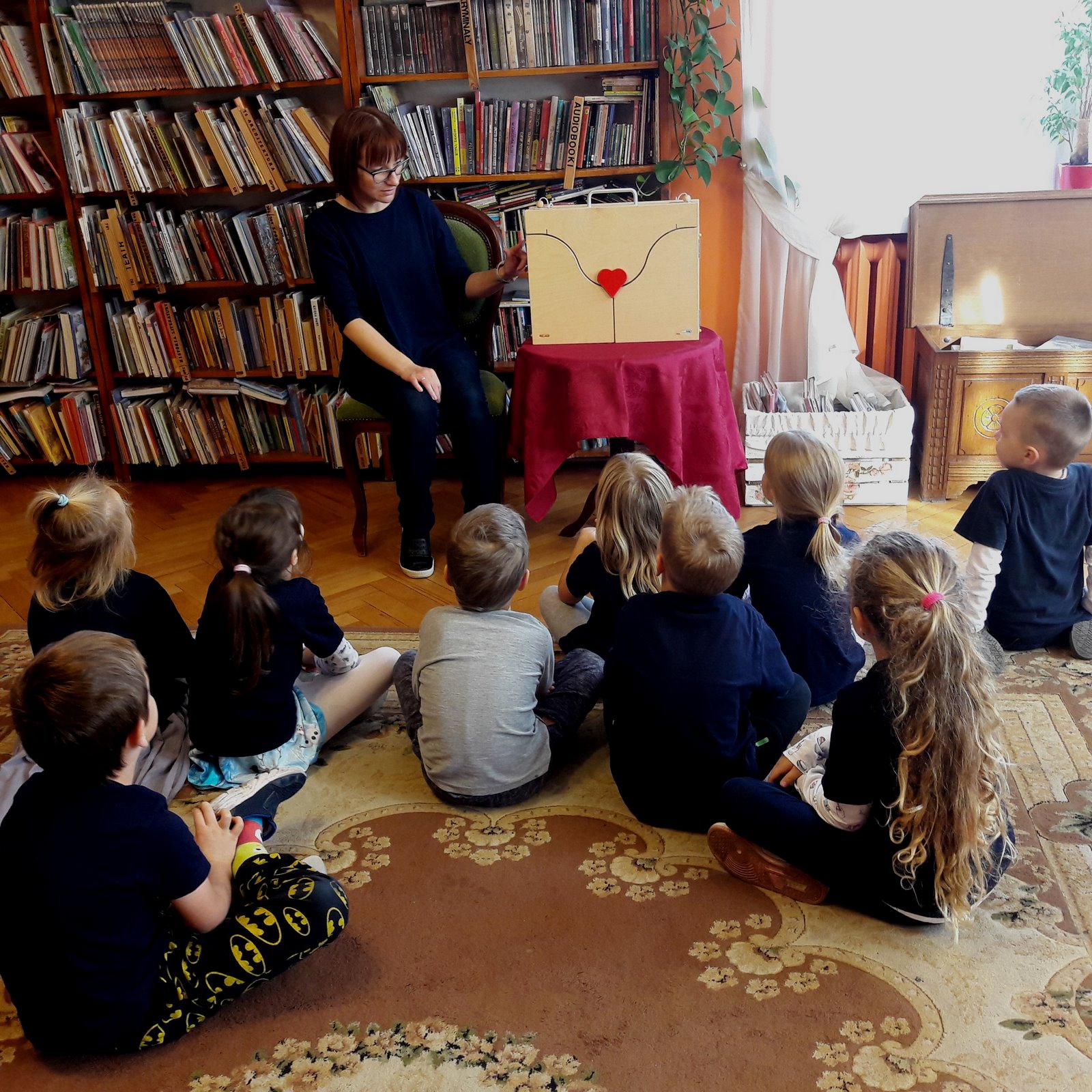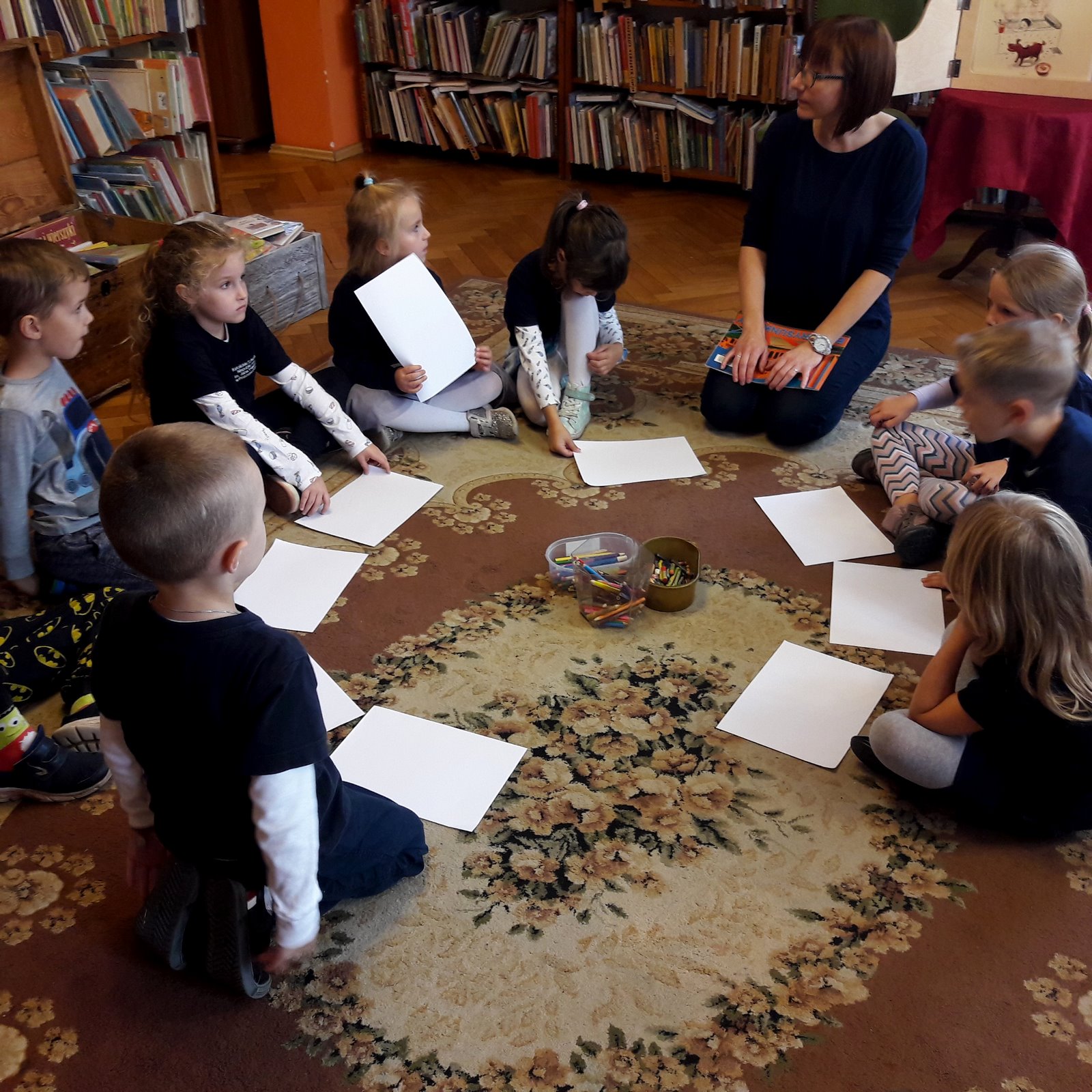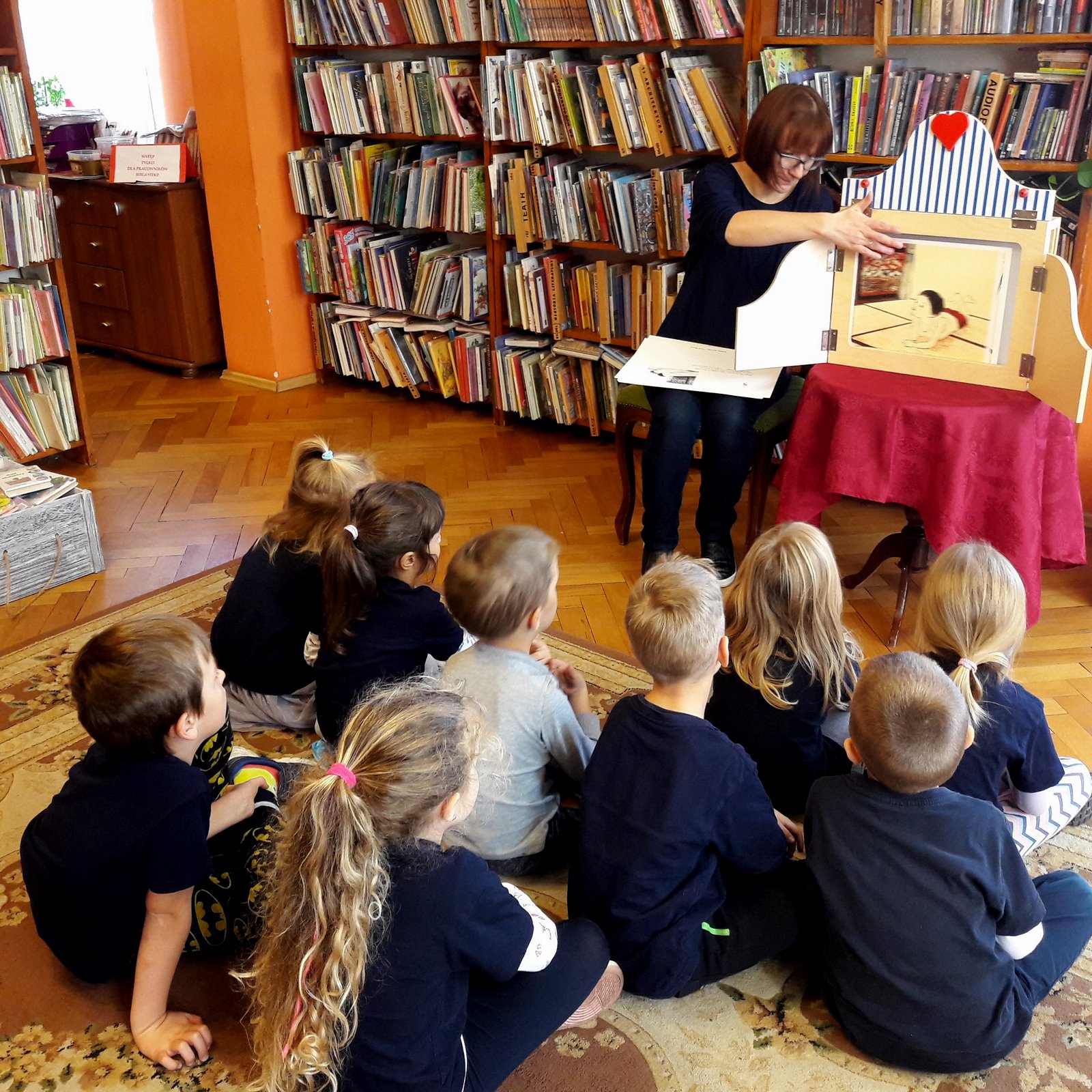 16 października uczniowie zerówki uczestniczyli w kameralnym przedstawieniu „Szukając Marudka” w teatrze KAMISHIBAI w Miejskiej Bibliotece Publicznej.