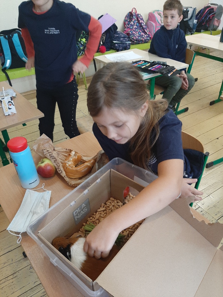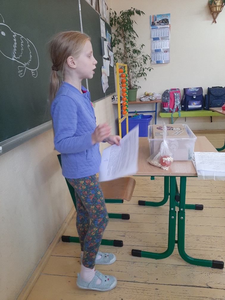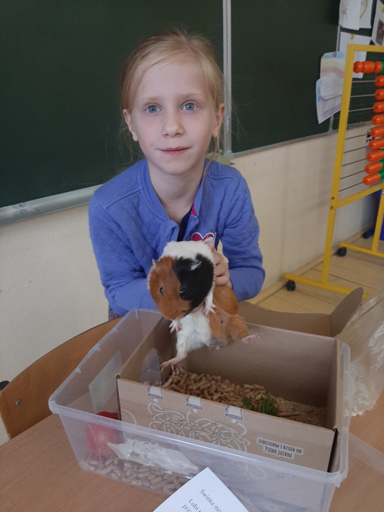 Nasi uczniowie bardzo chętnie przygotowują lekcje dla swojej klasy. W roli nauczyciela czują się świetnie. Hiacyntka poprowadzila lekcje o swinkach morskich,