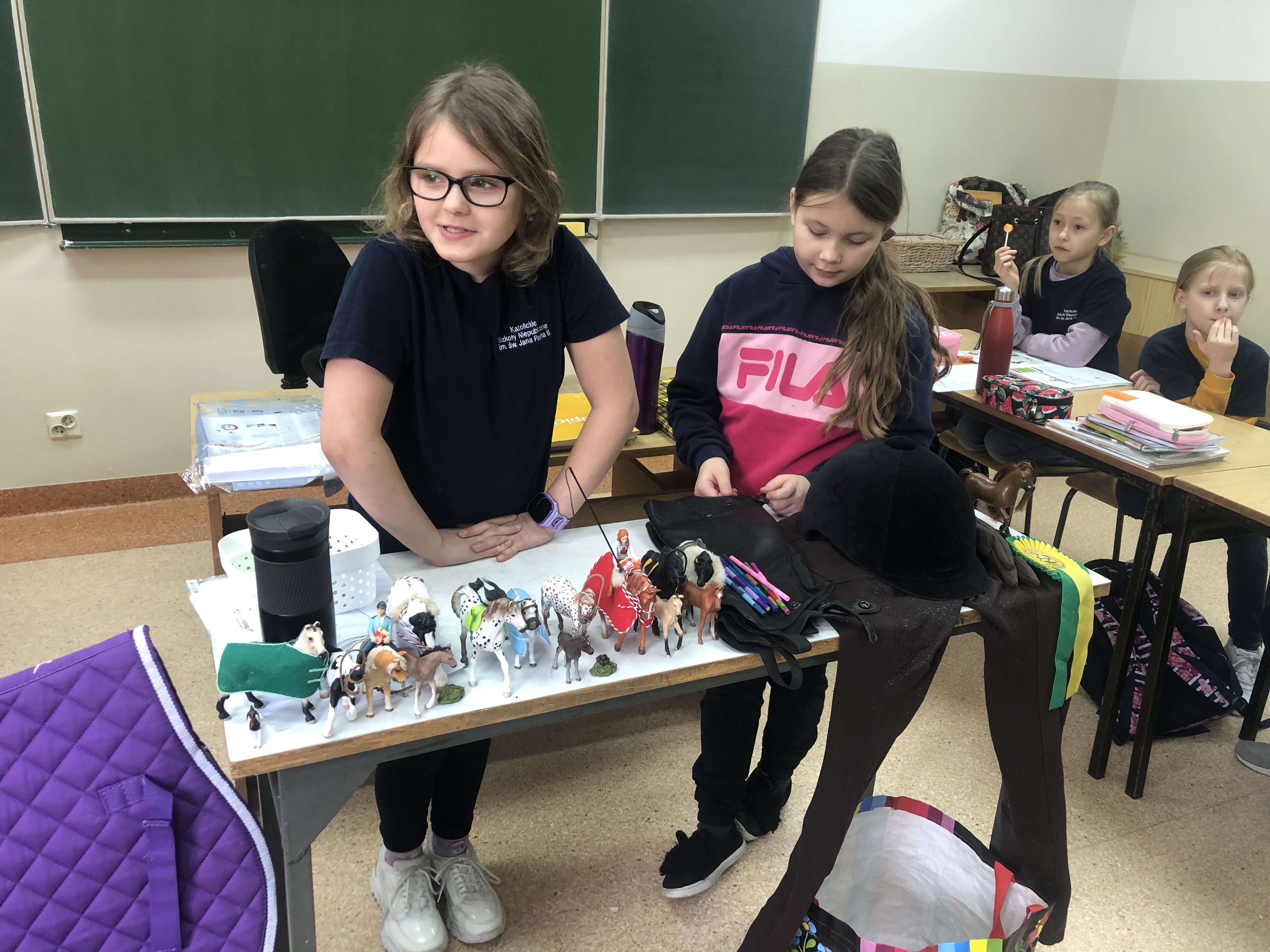 W ostatni piątek Alicja i Iga, uczennice klasy 3 poprowadziły profesjonalne zajęcia na temat koni:)