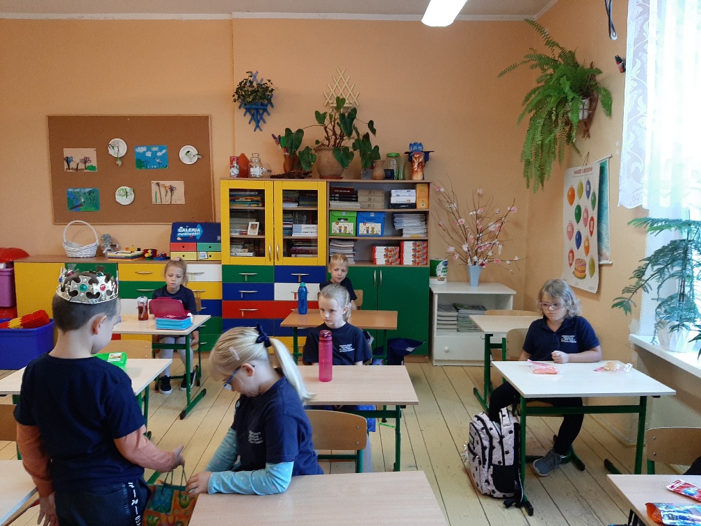 W klasie pierwszej znowu imprezka. Czarek postanowił wyprawić zaległe urodziny. Były życzenia i słodkości.