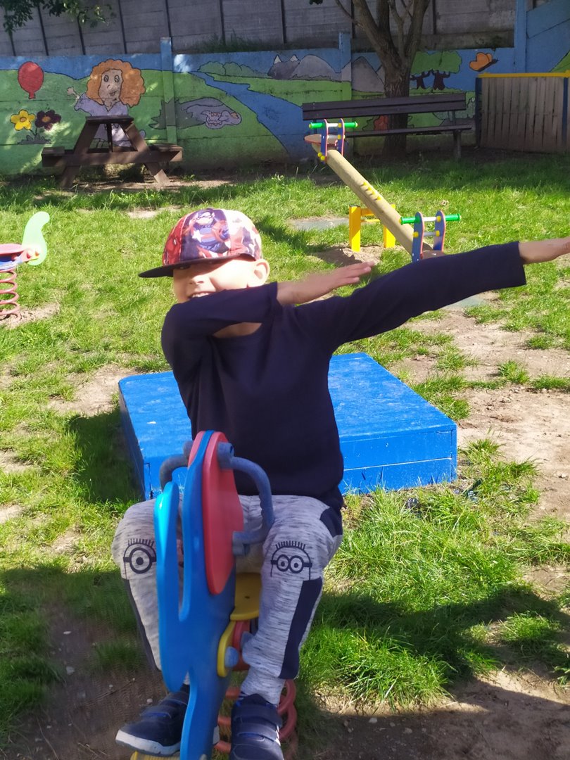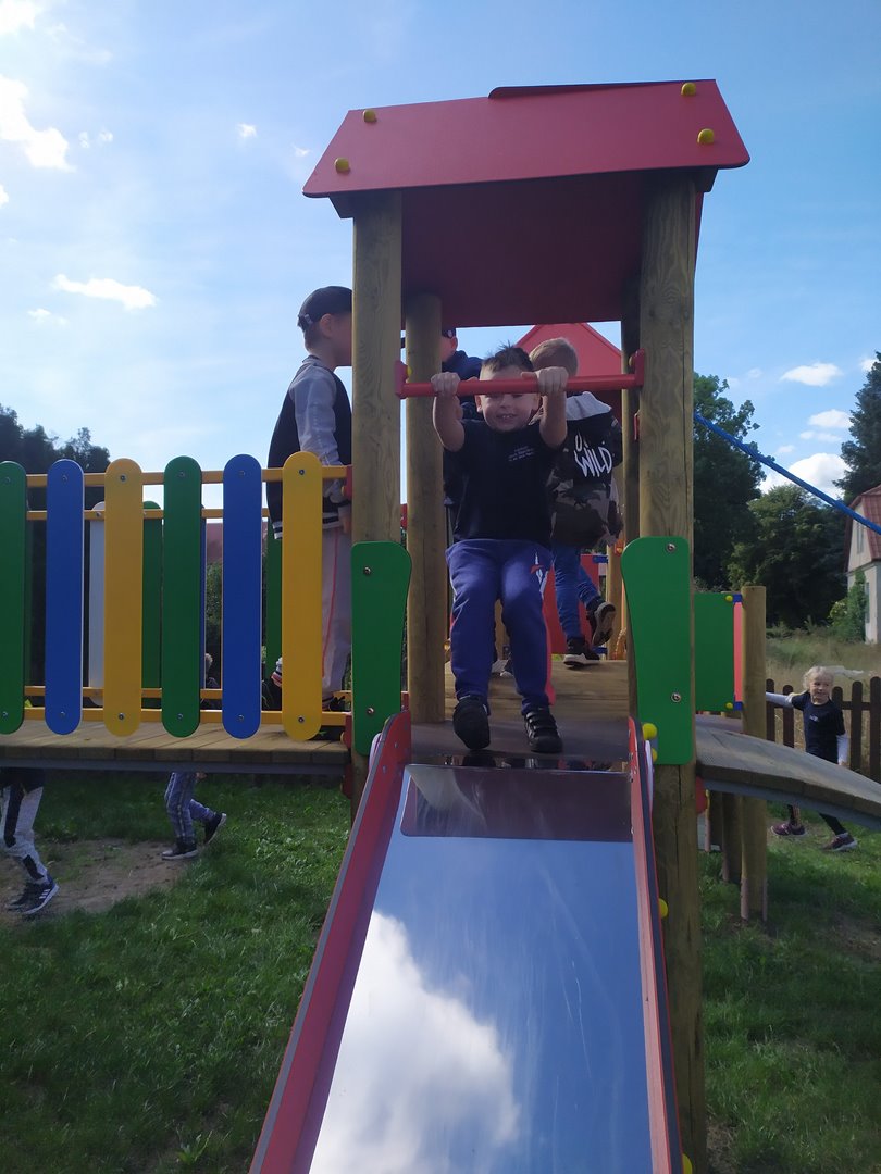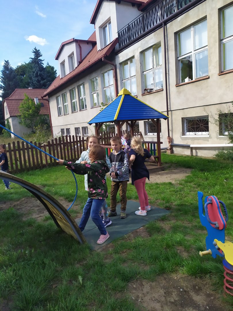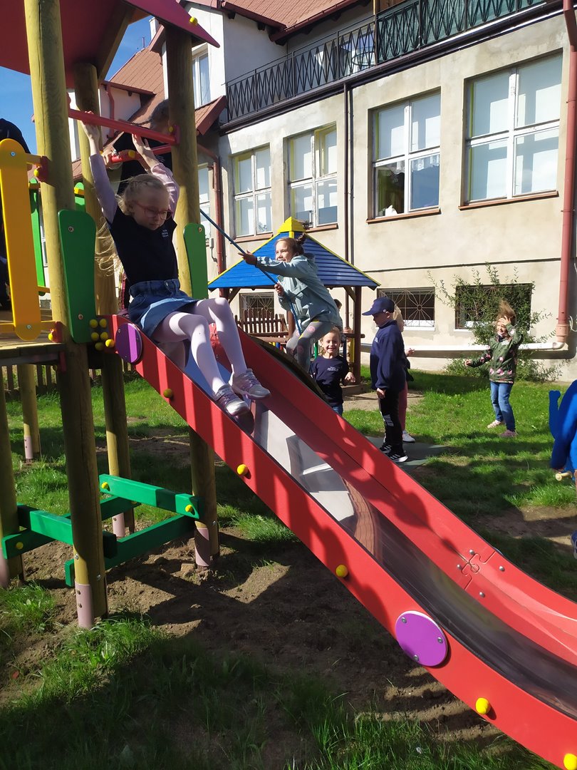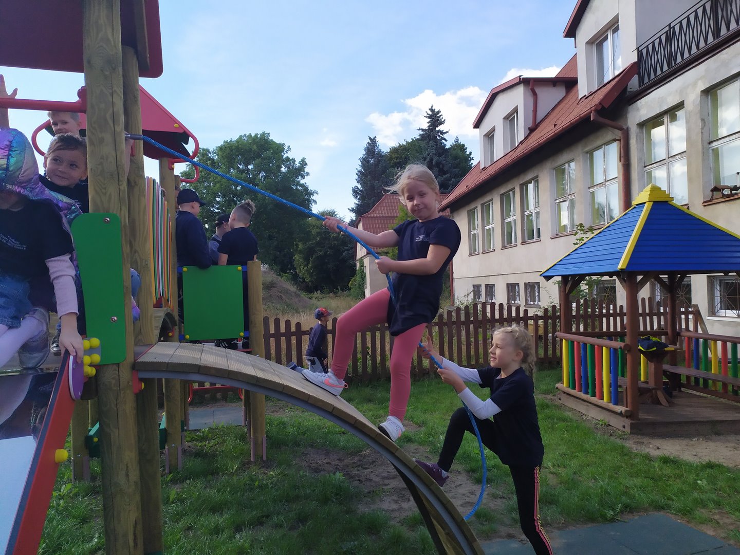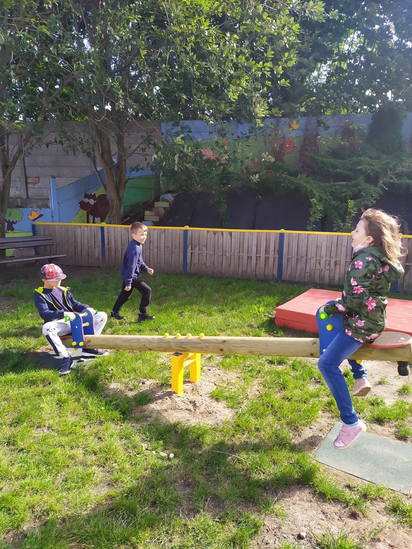 Każdemu z nas trafiają się okresy lepszego i gorszego samopoczucia. Czasem bywamy zmęczeni, nie mamy na nic ochoty. Innym razem rozpiera nas energia i wszystko sprawia nam radość. Aby mieć jak najwięcej sił do nauki i zabawy codziennie korzystamy ze świeżego powietrza i bawimy się na placu zabaw, testując nowe przyrządy. Sprawia nam to dużo frajdy!