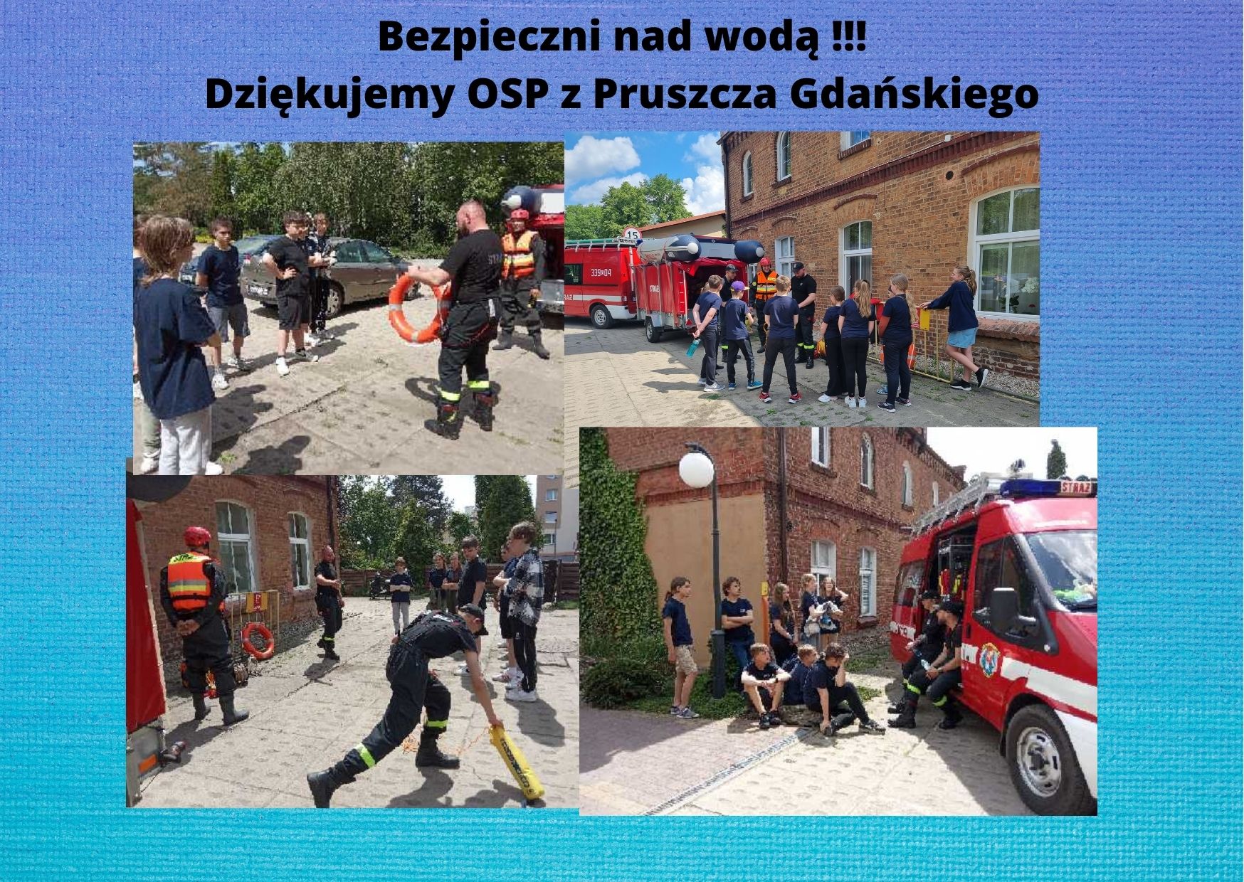 Bardzo dziękujemy Panu Prezesowi oraz pracownikom Ochotniczej Straży Pożarnej w Pruszczu Gdańskim za przeprowadzenie zajęć edukacyjnych 7 czerwca 2022 roku w szkole podstawowej jako profilaktyki bezpiecznego wypoczynku dzieci szczególnie nad wodą.