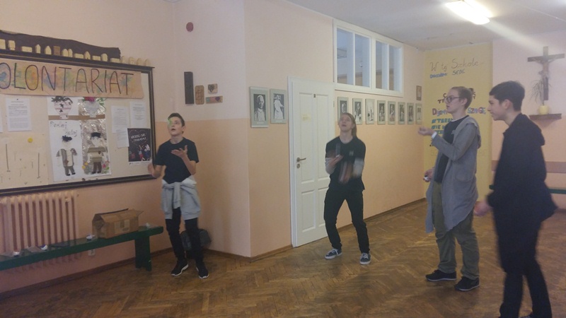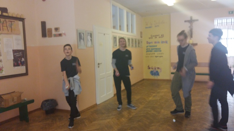 Żonglowanie jest nie tylko doskonałym sposobem na przerwę podczas wytężonej pracy umysłowej, ale także wpływa dodatnio na rozwój naszej koordynacji wzrokowo-ruchowej, poszerza pole widzenia, wzmacnia umiejętności koordynacyjne, sprzyja koncentracji, a przede wszystkim pobudza i synchronizuje pracę obu półkul mózgu i co za tym idzie zwiększa naszą zdolność do nauki. Klasie III g nie udało się na razie wyjść poza dwie piłeczki, ale wszystko jeszcze przed nimi.