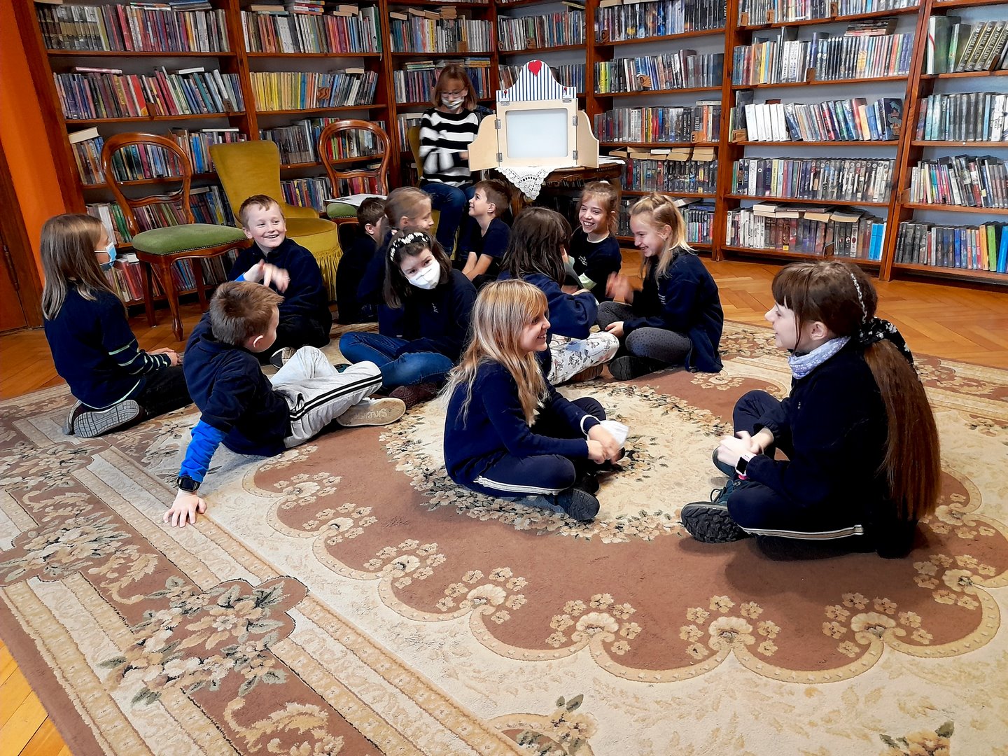 29 października 2021r. uczniowie obejrzeli nietypowy teatr, a mianowicie japoński Teatrzyk Kamishibai. Historię "W lustrzanej sali" Juliana Brudzewskiego opowiedzianą poprzez ilustracje czytała pani Asia. To przypowieść w jaki sposób widzimy świat i jak świat widzi nas. Jak nasze zachowanie i działanie wpływają na to co nam się przydarza.