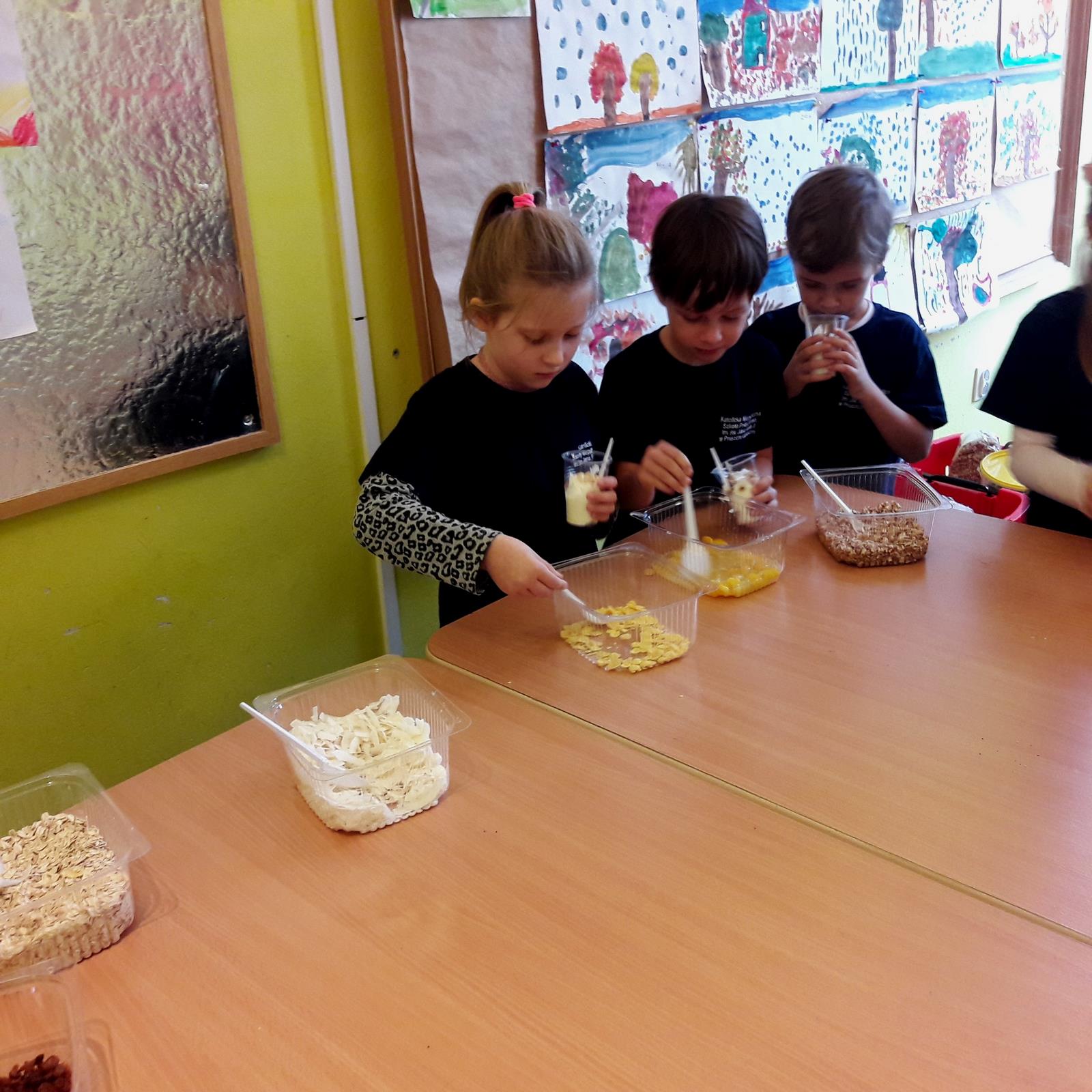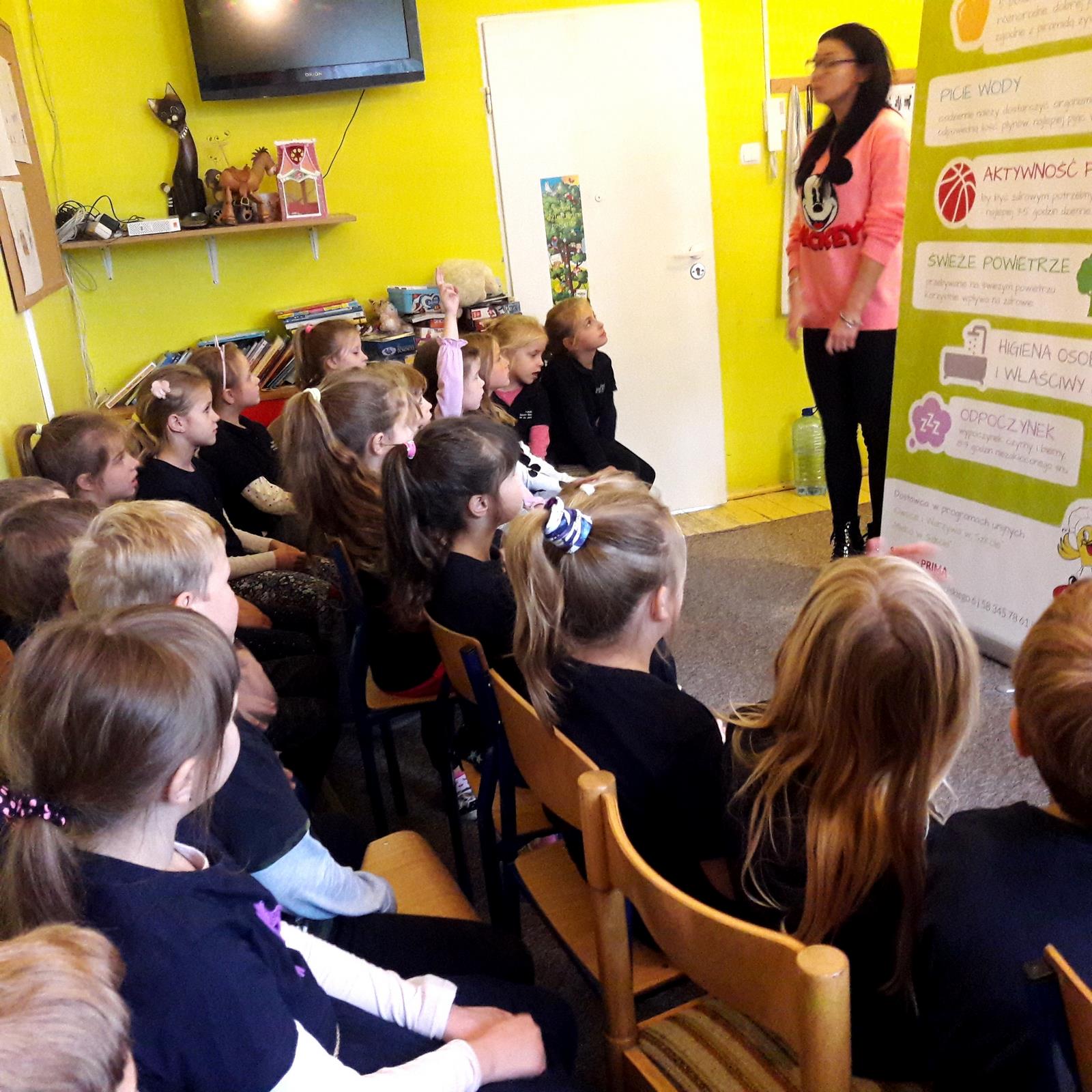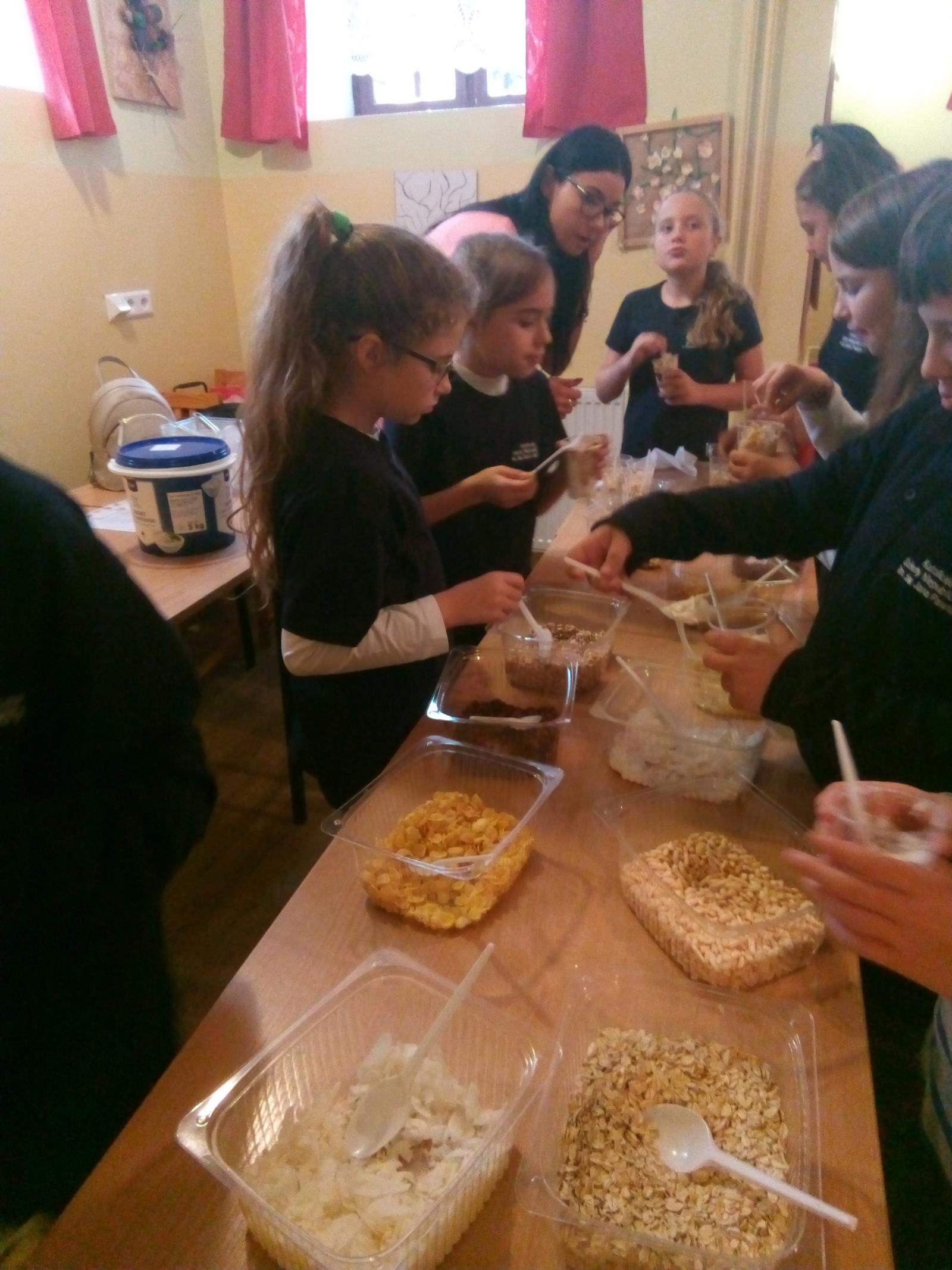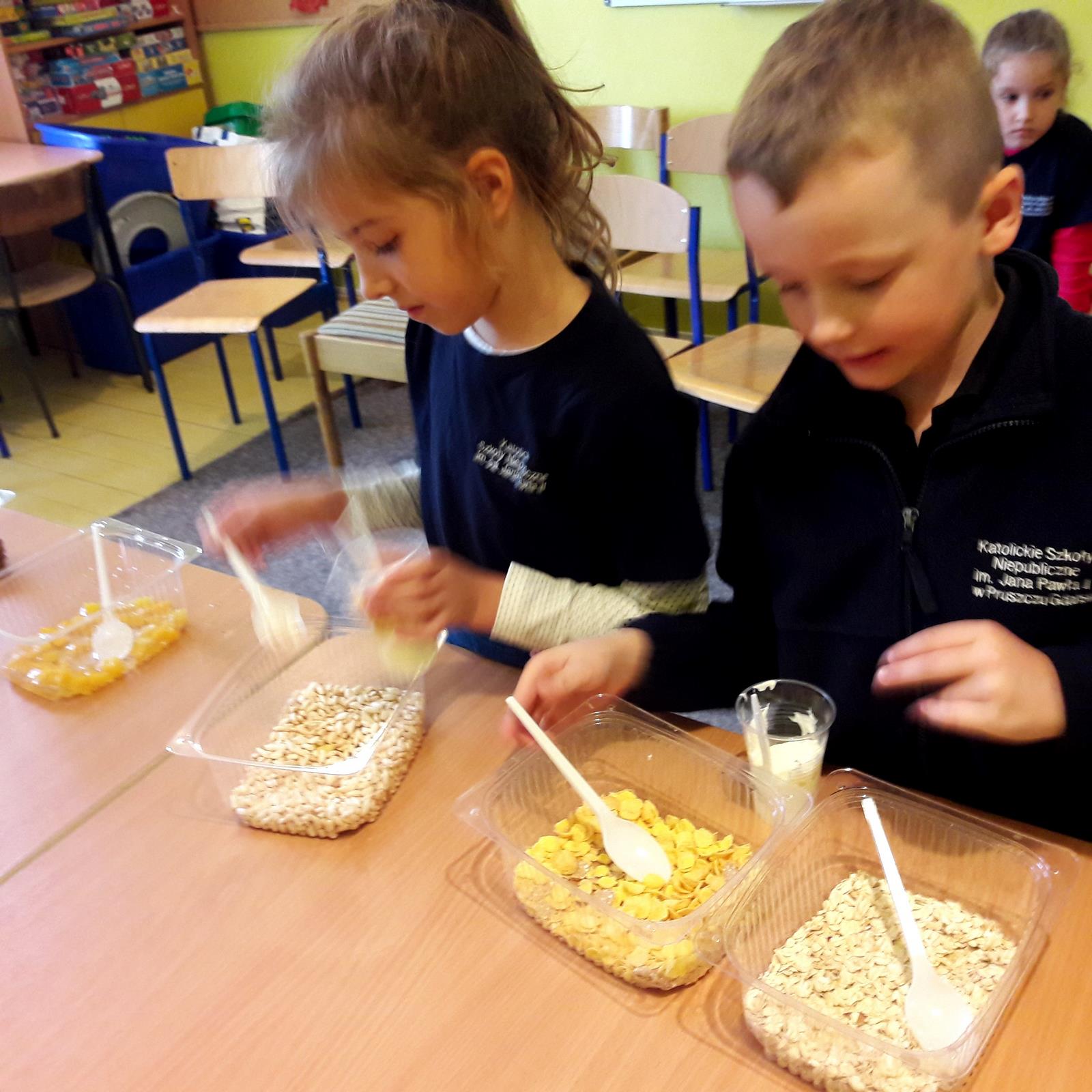 W dniu dzisiejszym, tj. 08.10.2019 r. gościliśmy w naszej szkole Panie z firmy Salvit-Prima. Celem spotkania były warsztaty dotyczące zdrowego żywienia. Panie opowiedziały uczniom o sposobie odżywiania, polegającym na przyjmowaniu substancji korzystnych dla zdrowia w celu zapewnienia lub poprawy zdrowia. Poruszony został także temat o produktach, które przez wieki nauczyliśmy się spożywać. Dzieci dowiedziały się, że jedne z nich są zdrowe, innych natomiast warto unikać. Bez względu na to, jaką dietę wybierzemy, powinniśmy przede wszystkim pamiętać o tym, by spożywać jak najwięcej owoców i warzyw, szczególnie surowych. Wybierając produkty zbożowe, warto decydować się szczególnie na te pełnoziarniste, które dostarczają naszym organizmom najlepsze składniki i są najlepiej przez nas przyswajane. Po wykładzie teoretycznym uczniowie sami przygotowali drugie śniadanie na bazie jogurtu naturalnego i dodatków, które samodzielnie dobierali.