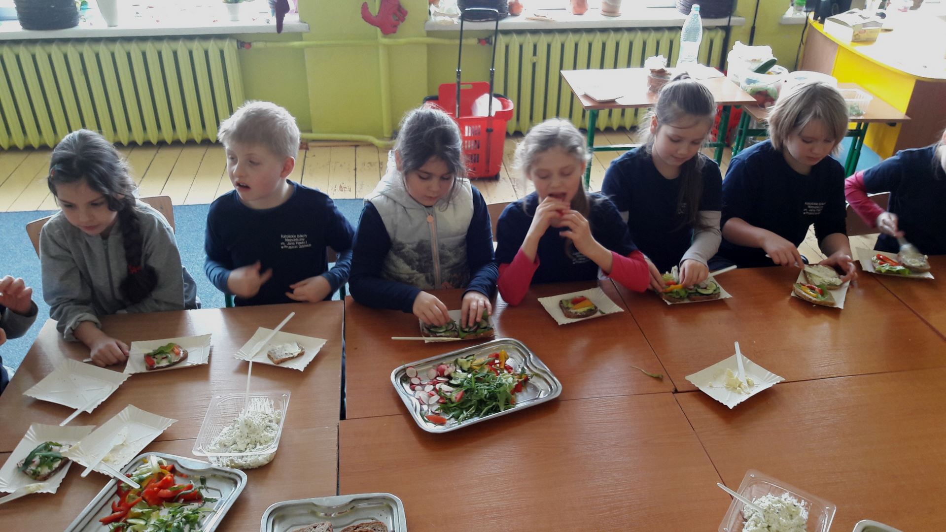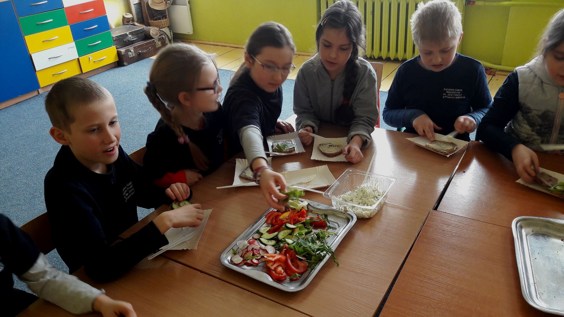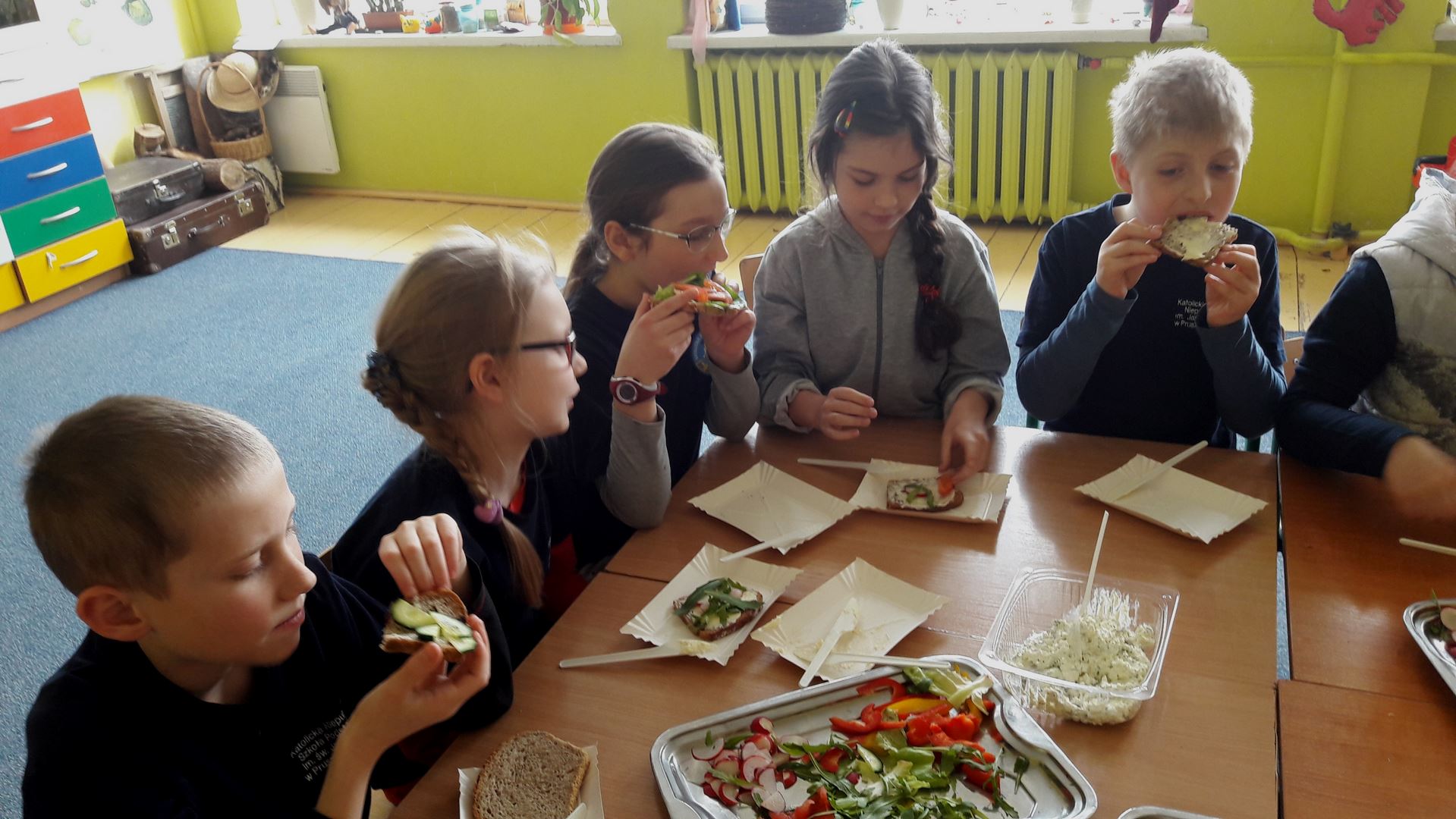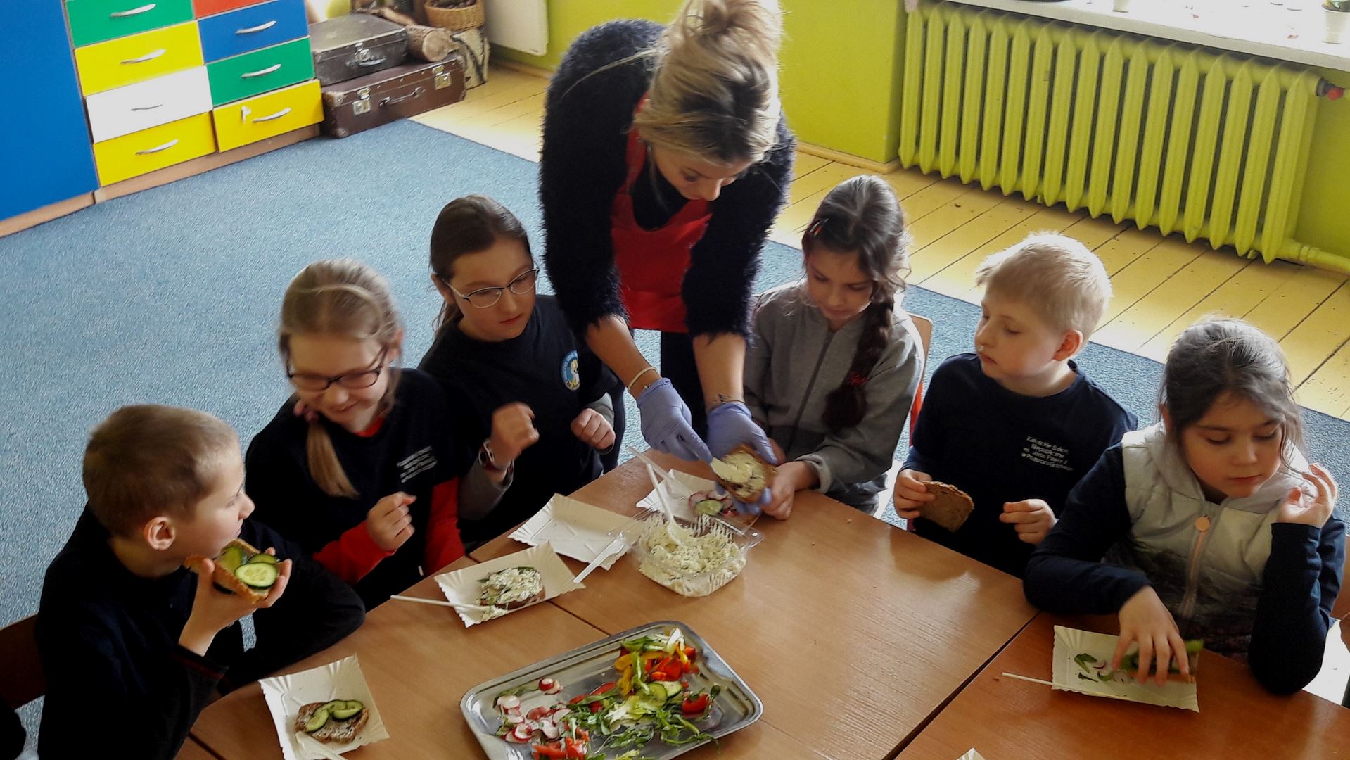 15 marca dla uczniów edukacji wczesnoszkolnej odbyły się Warsztaty Zdrowego Żywienia. Celem warsztatów było kreowanie właściwych nawyków żywieniowych oraz wyrabianie nawyku sięgania po zdrową i ekologiczną żywność. Na zajęciach poruszano również temat wartości odżywczych warzyw i owoców. Po prelekcji uczniowie przeszli do działań praktycznych. Było smacznie i zdrowo.
