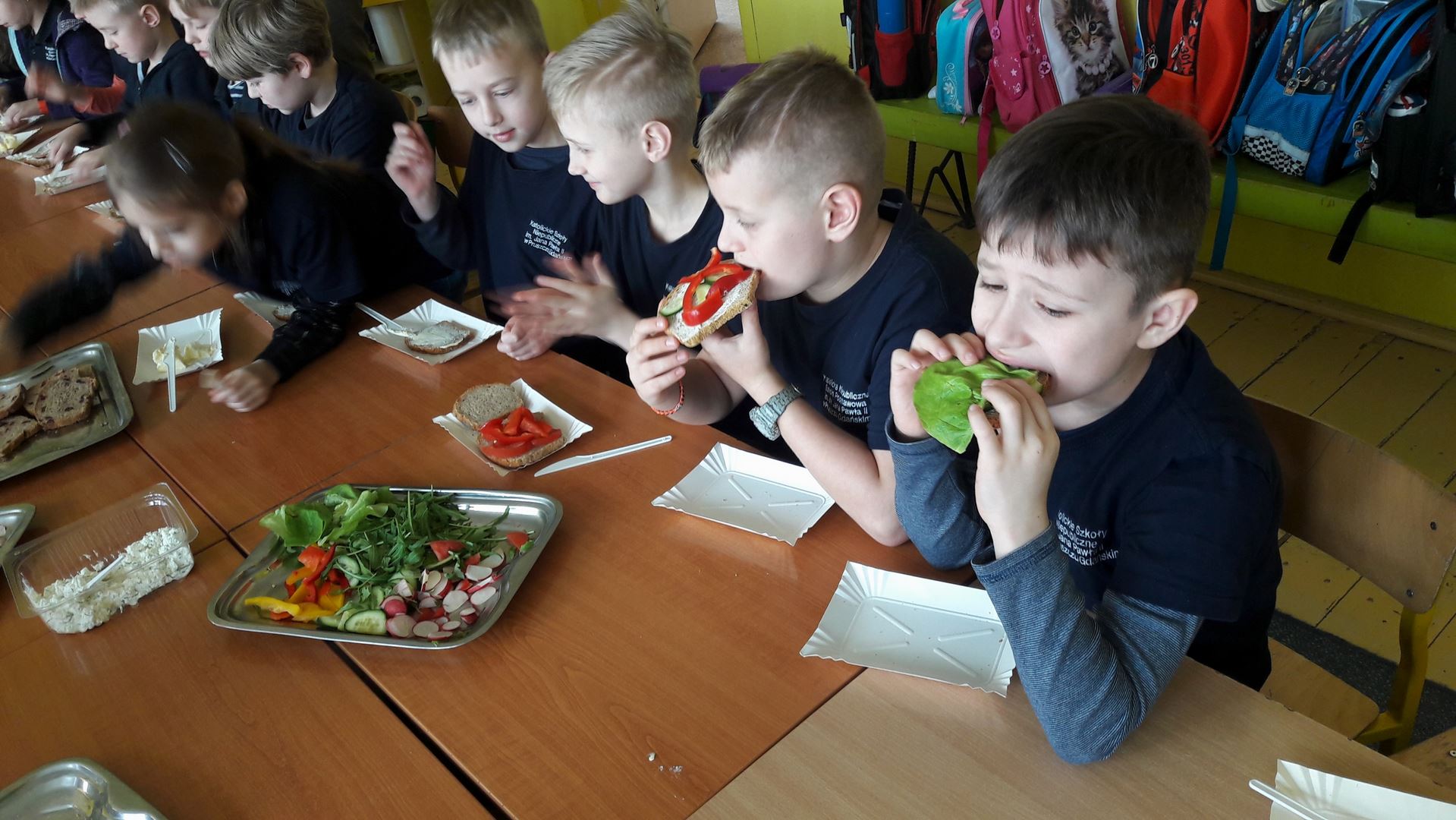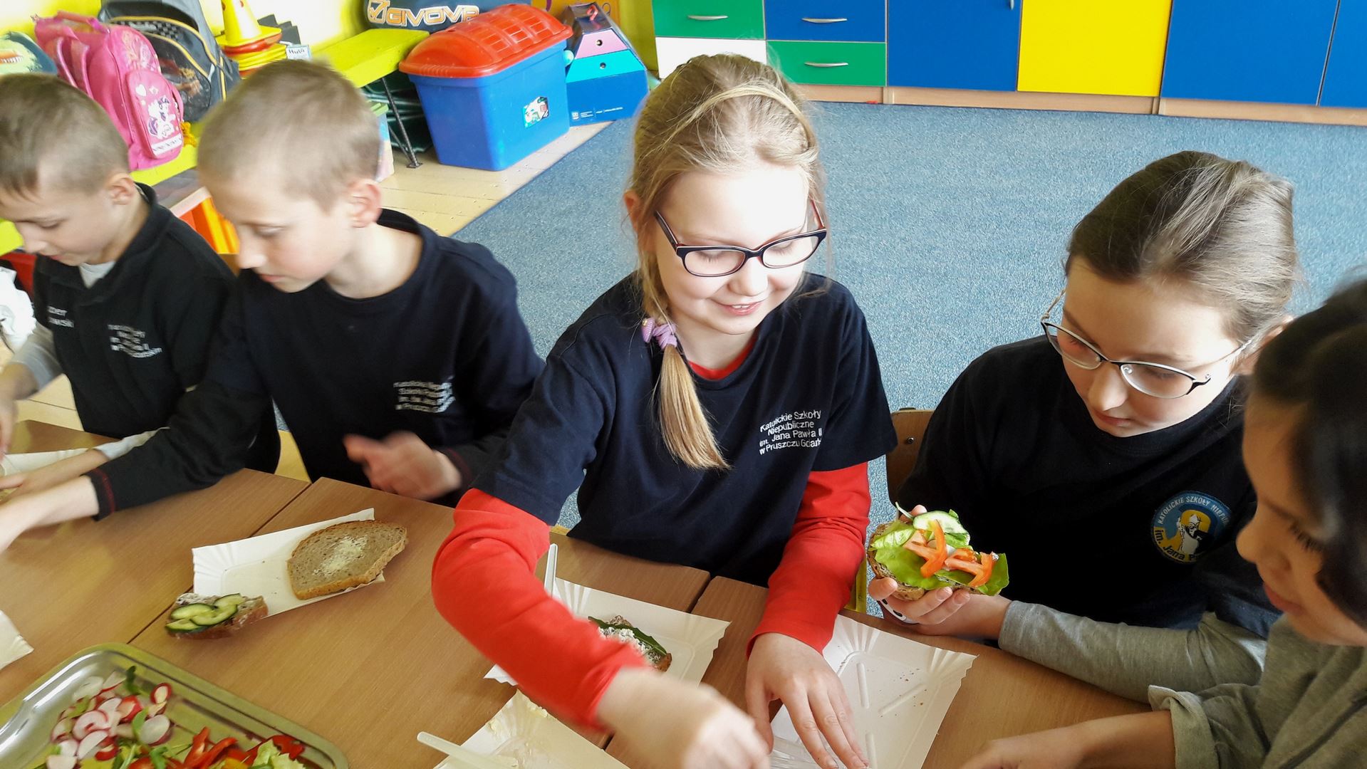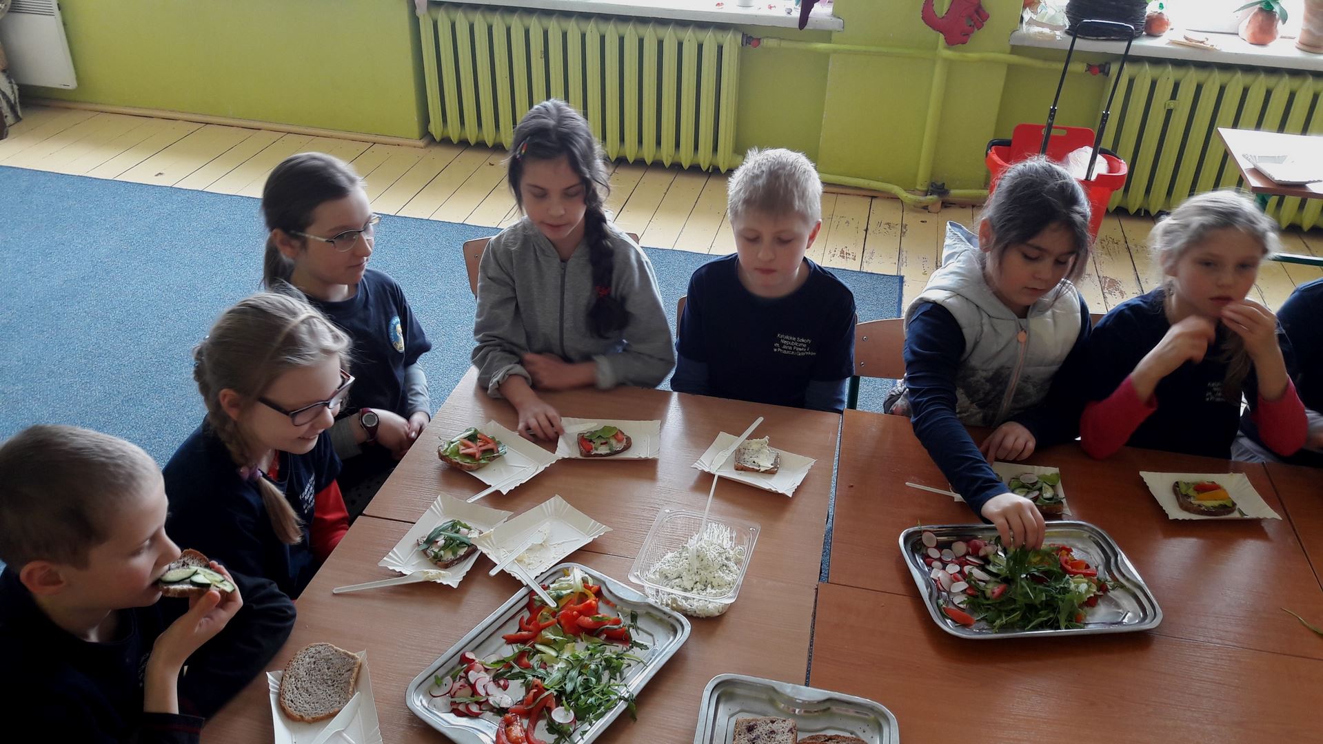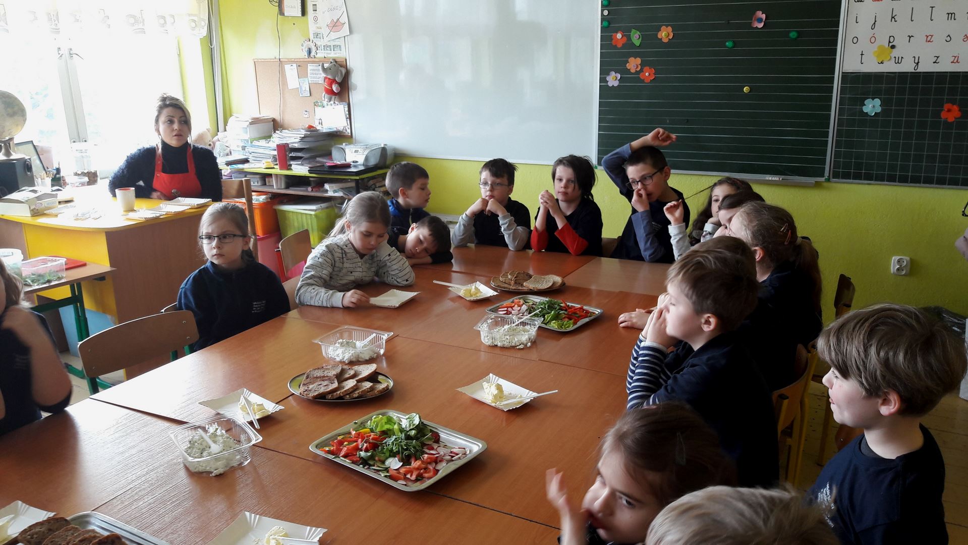15 marca dla uczniów edukacji wczesnoszkolnej odbyły się Warsztaty Zdrowego Żywienia. Celem warsztatów było kreowanie właściwych nawyków żywieniowych oraz wyrabianie nawyku sięgania po zdrową i ekologiczną żywność. Na zajęciach poruszano również temat wartości odżywczych warzyw i owoców. Po prelekcji uczniowie przeszli do działań praktycznych. Było smacznie i zdrowo.
