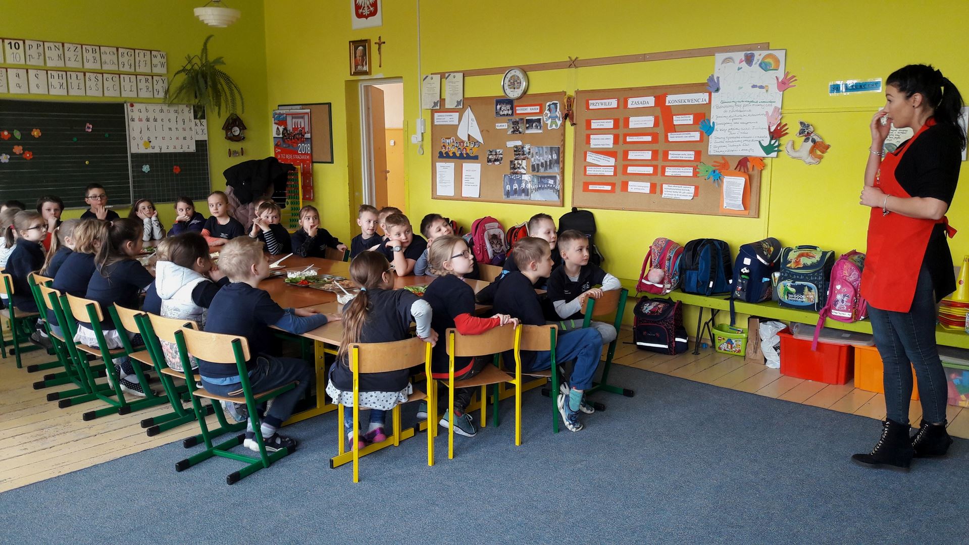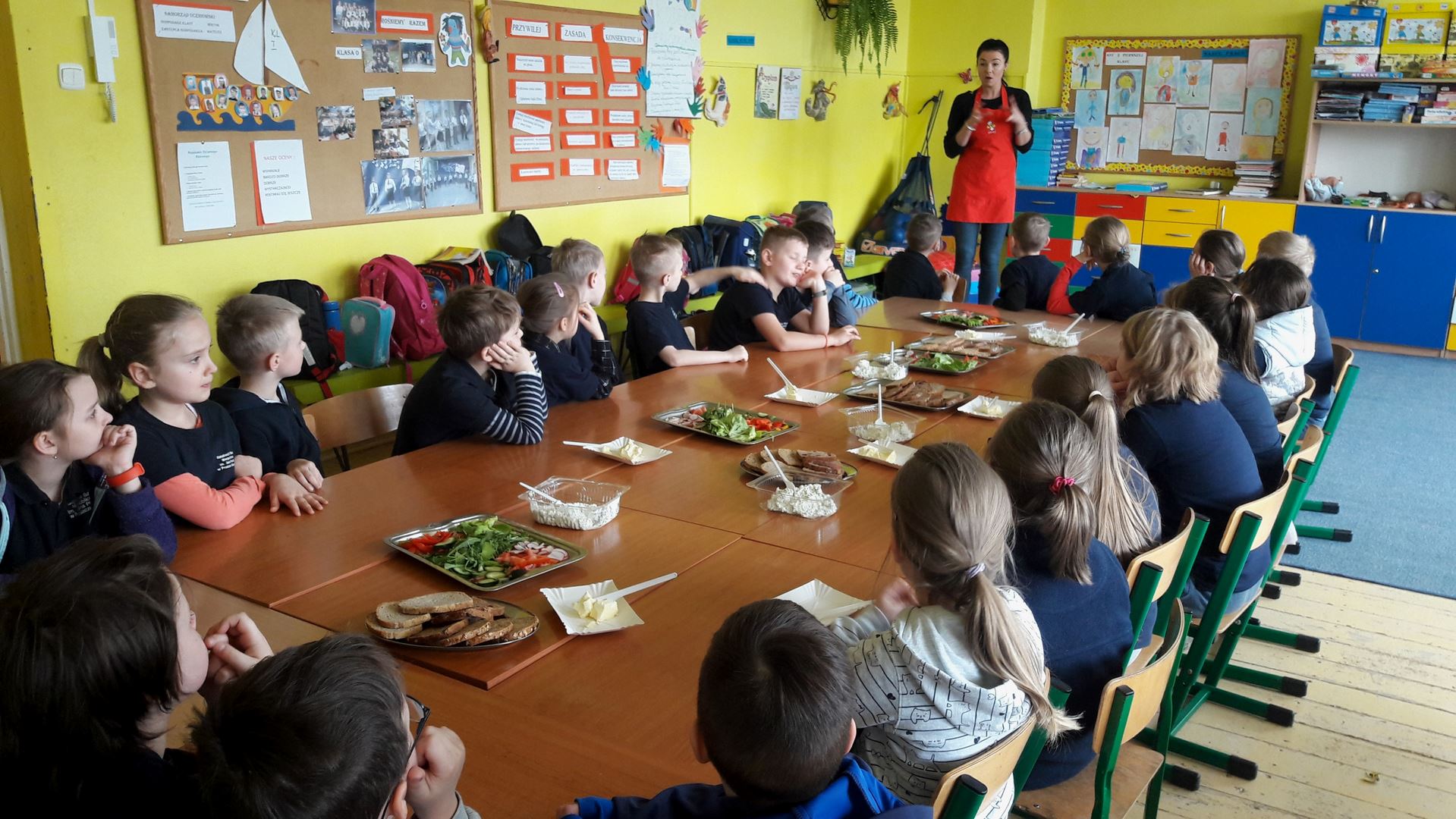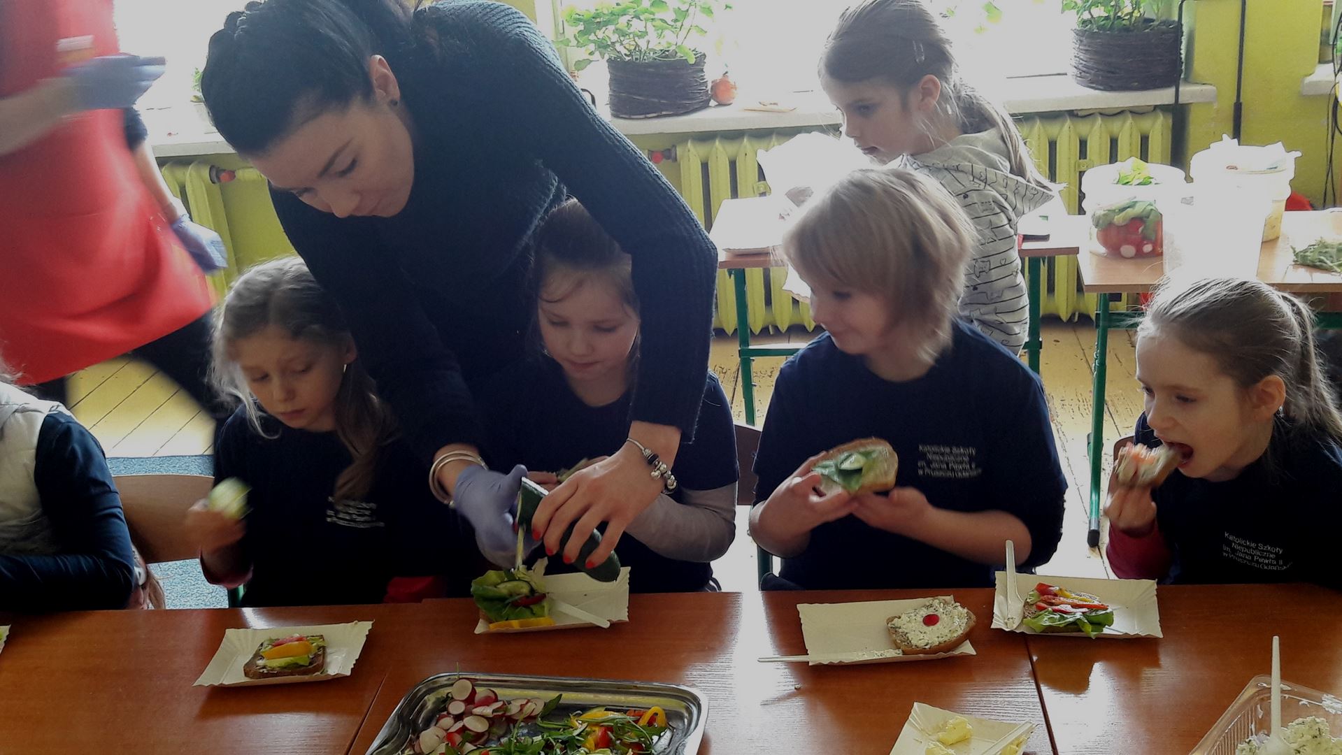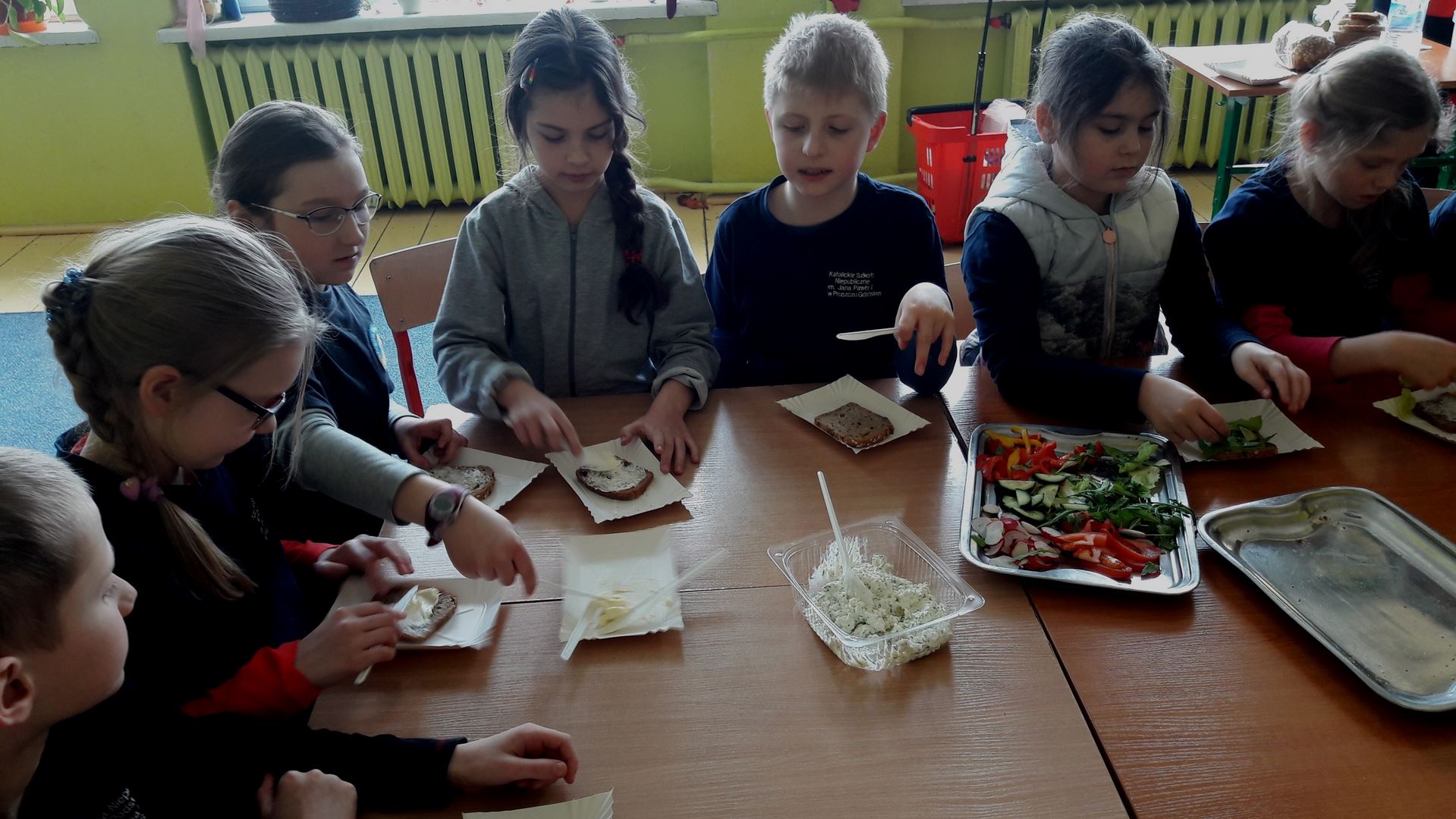 15 marca dla uczniów edukacji wczesnoszkolnej odbyły się Warsztaty Zdrowego Żywienia. Celem warsztatów było kreowanie właściwych nawyków żywieniowych oraz wyrabianie nawyku sięgania po zdrową i ekologiczną żywność. Na zajęciach poruszano również temat wartości odżywczych warzyw i owoców. Po prelekcji uczniowie przeszli do działań praktycznych. Było smacznie i zdrowo.
