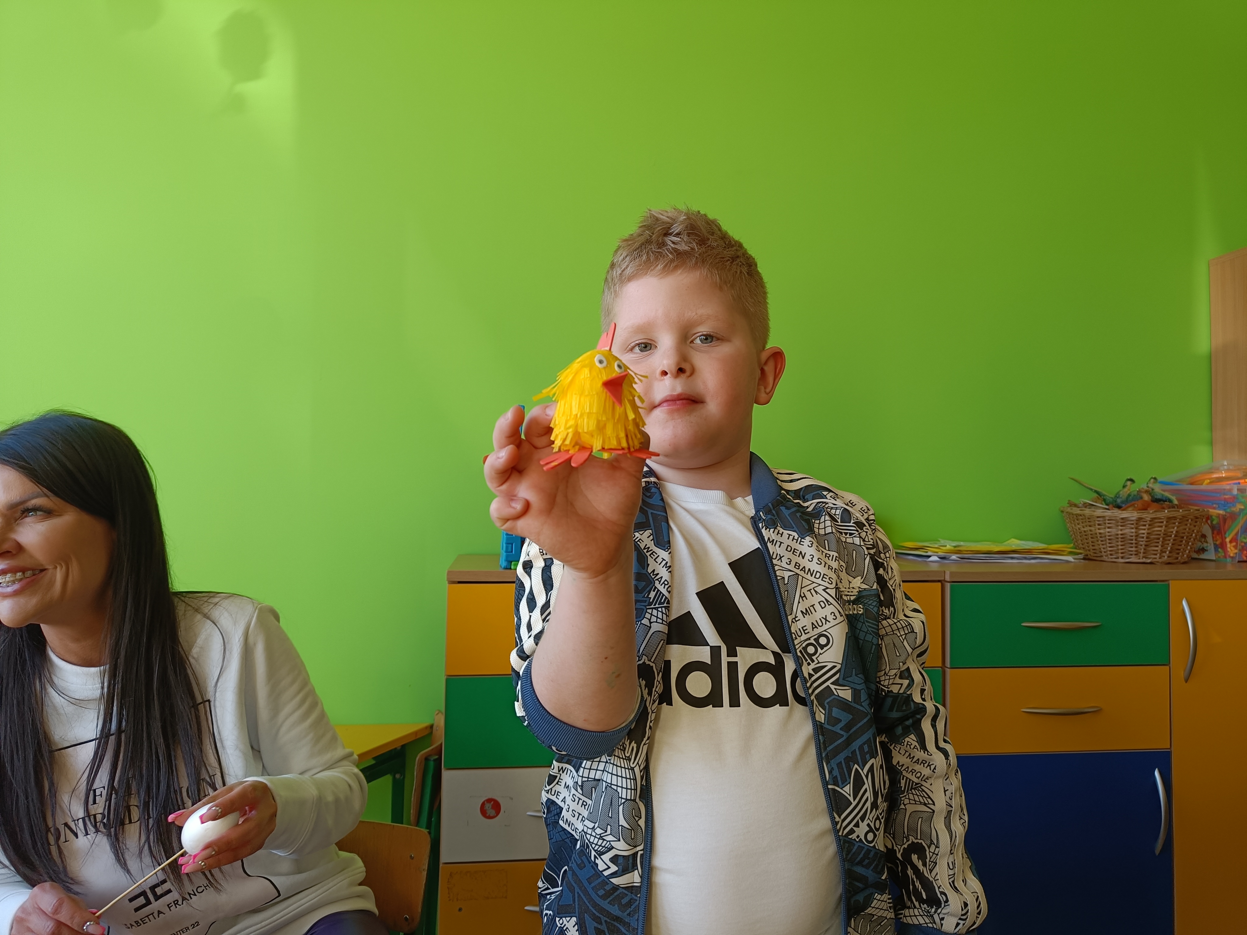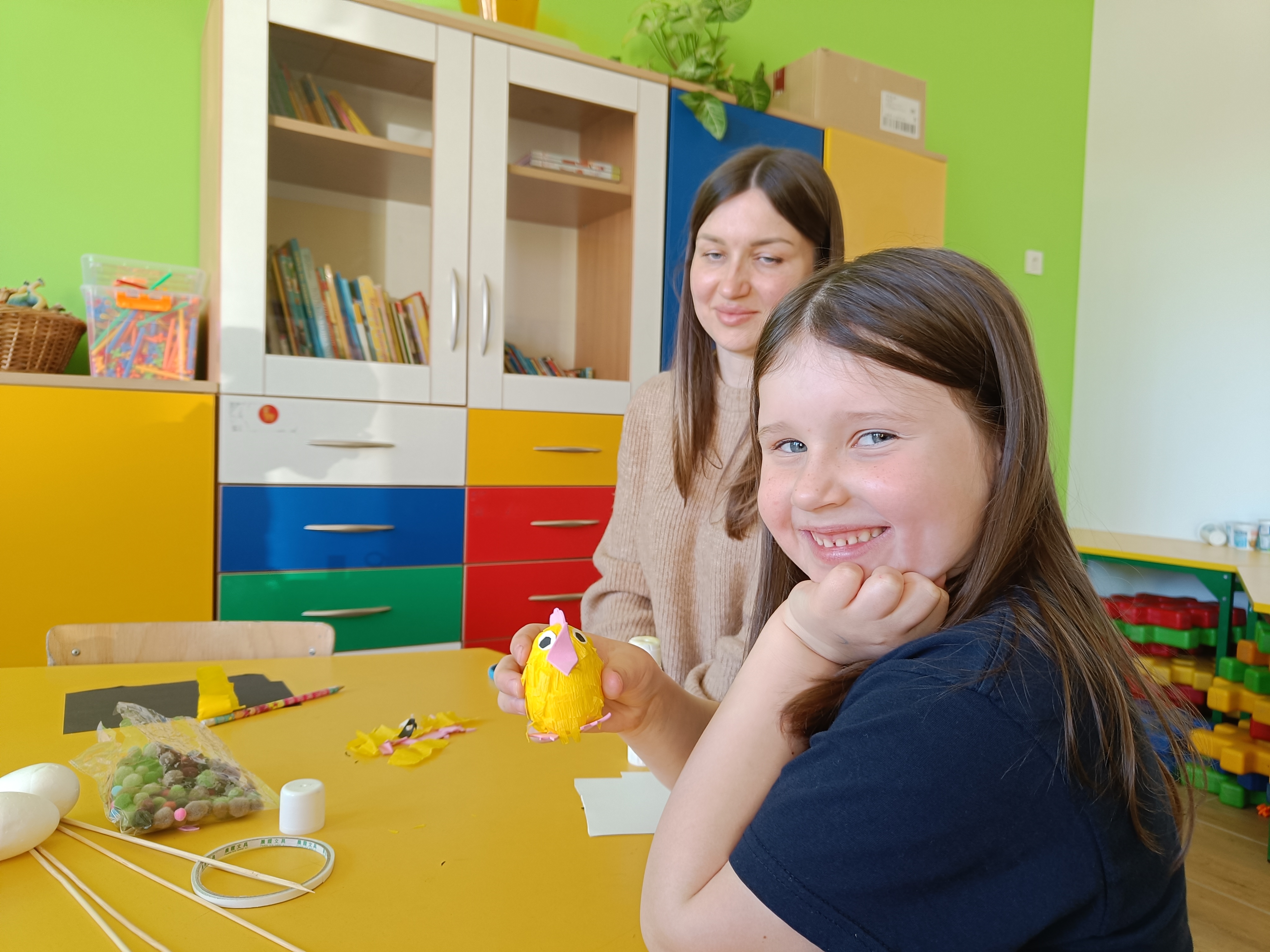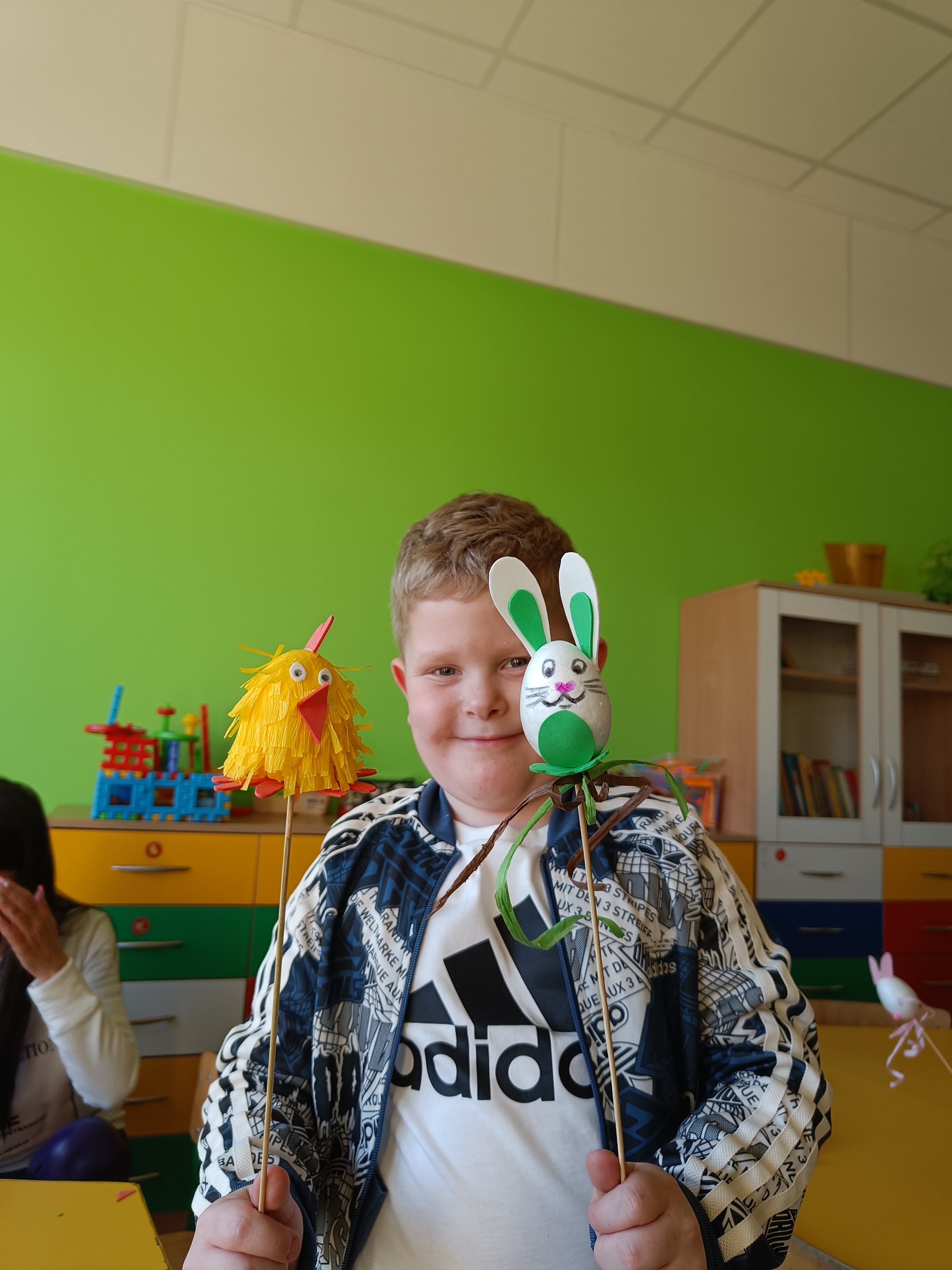 Dnia 04.04.2023 r. w oddziale przedszkolnym odbyły się wielkanocne warszty z rodzicami. Tego dnia dzieci wykonały z styropianowych jajek kurczaczka i króliczka :)
