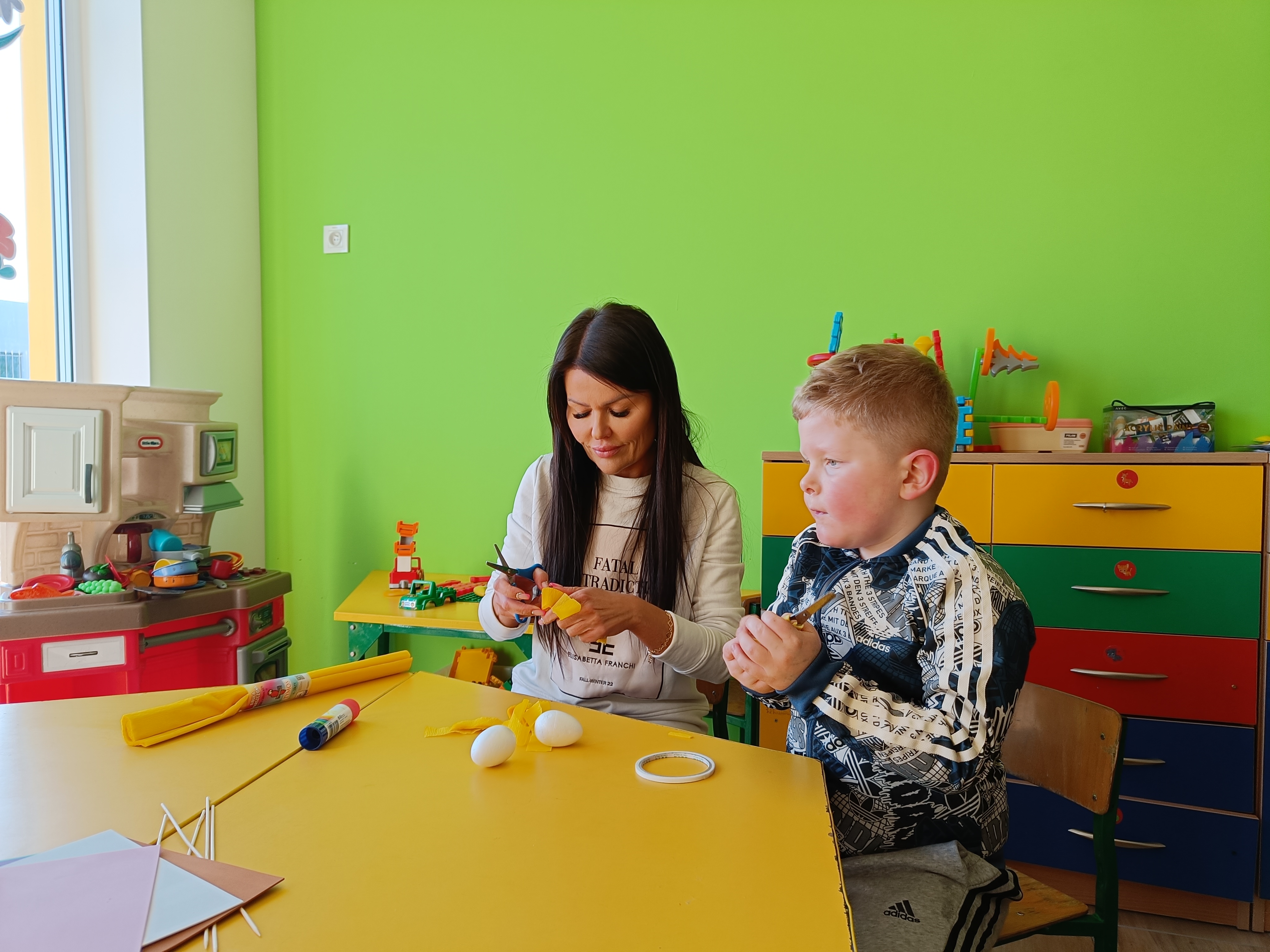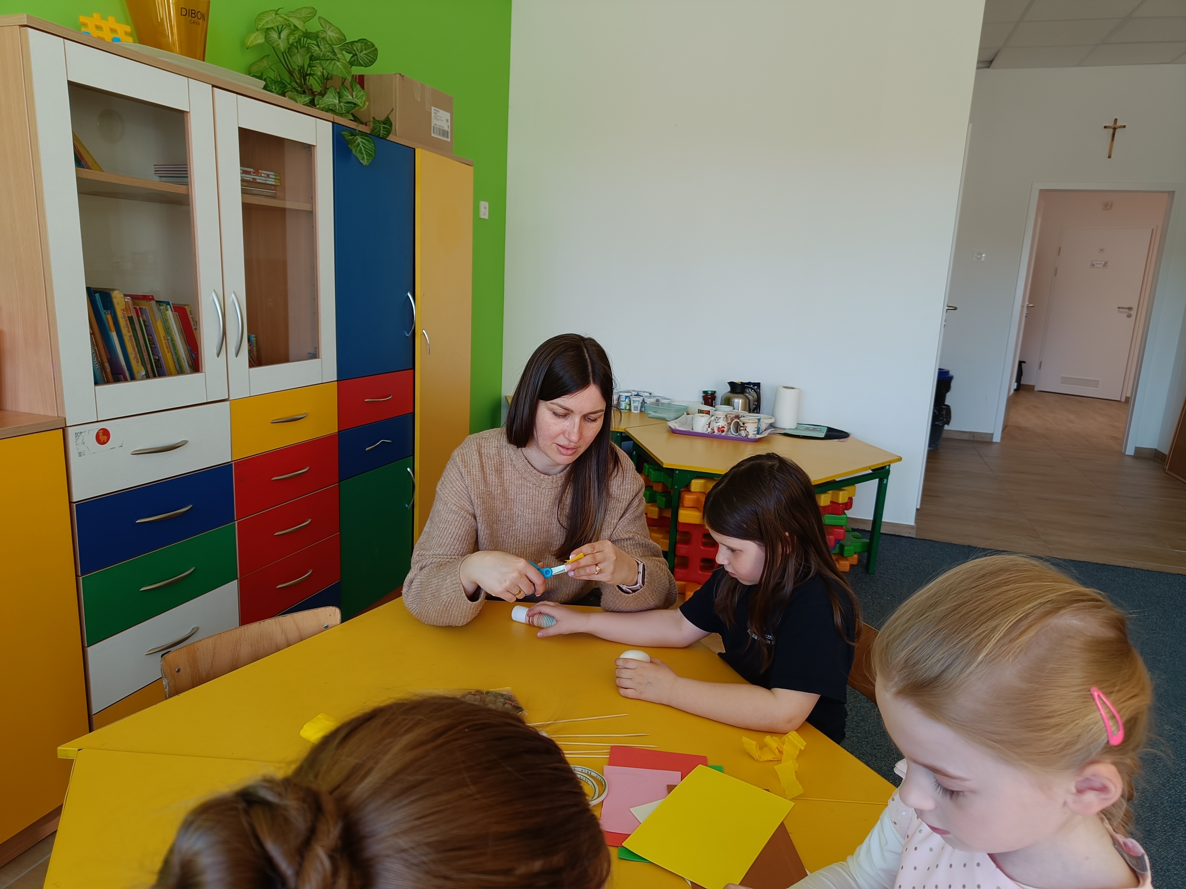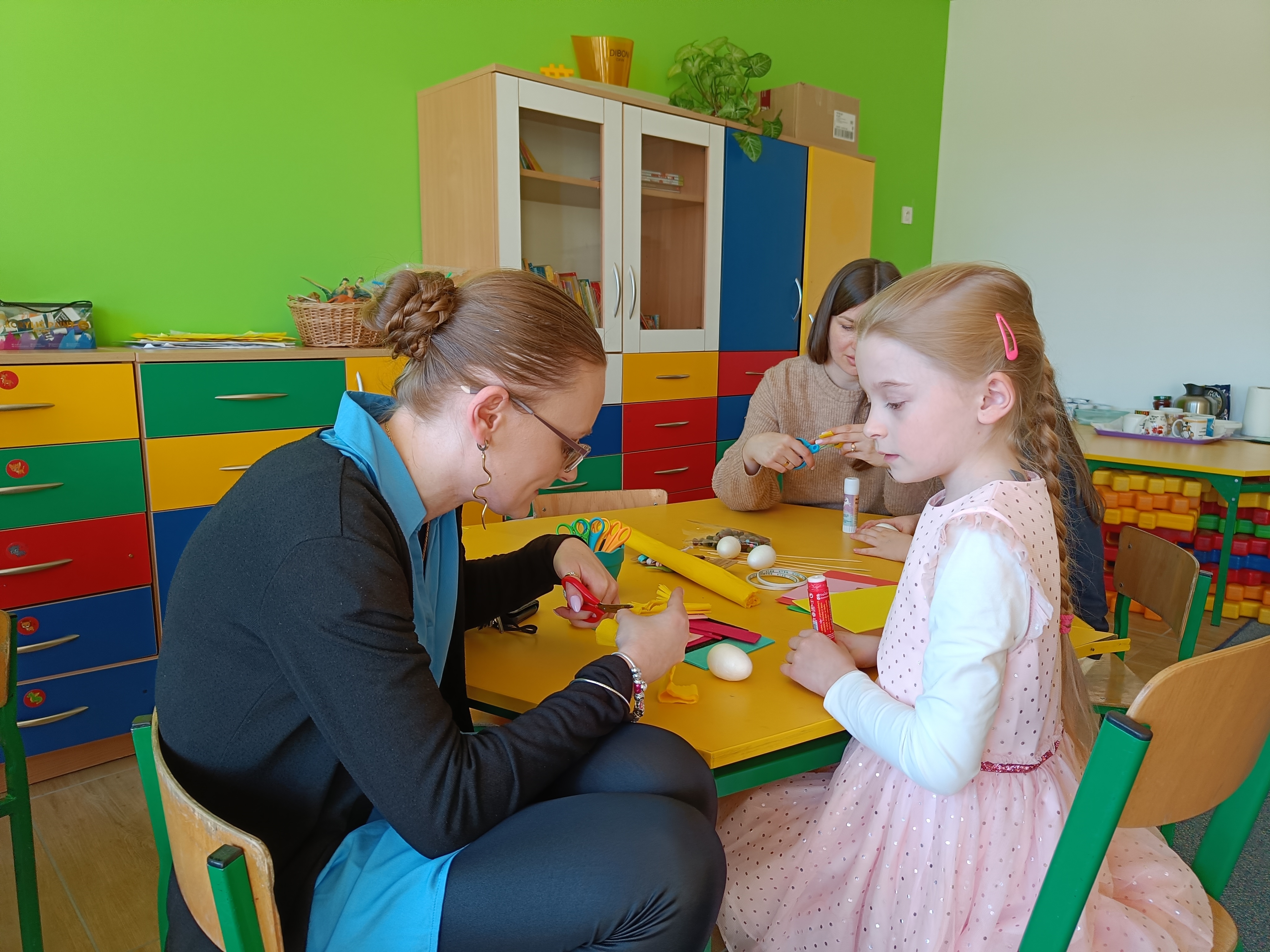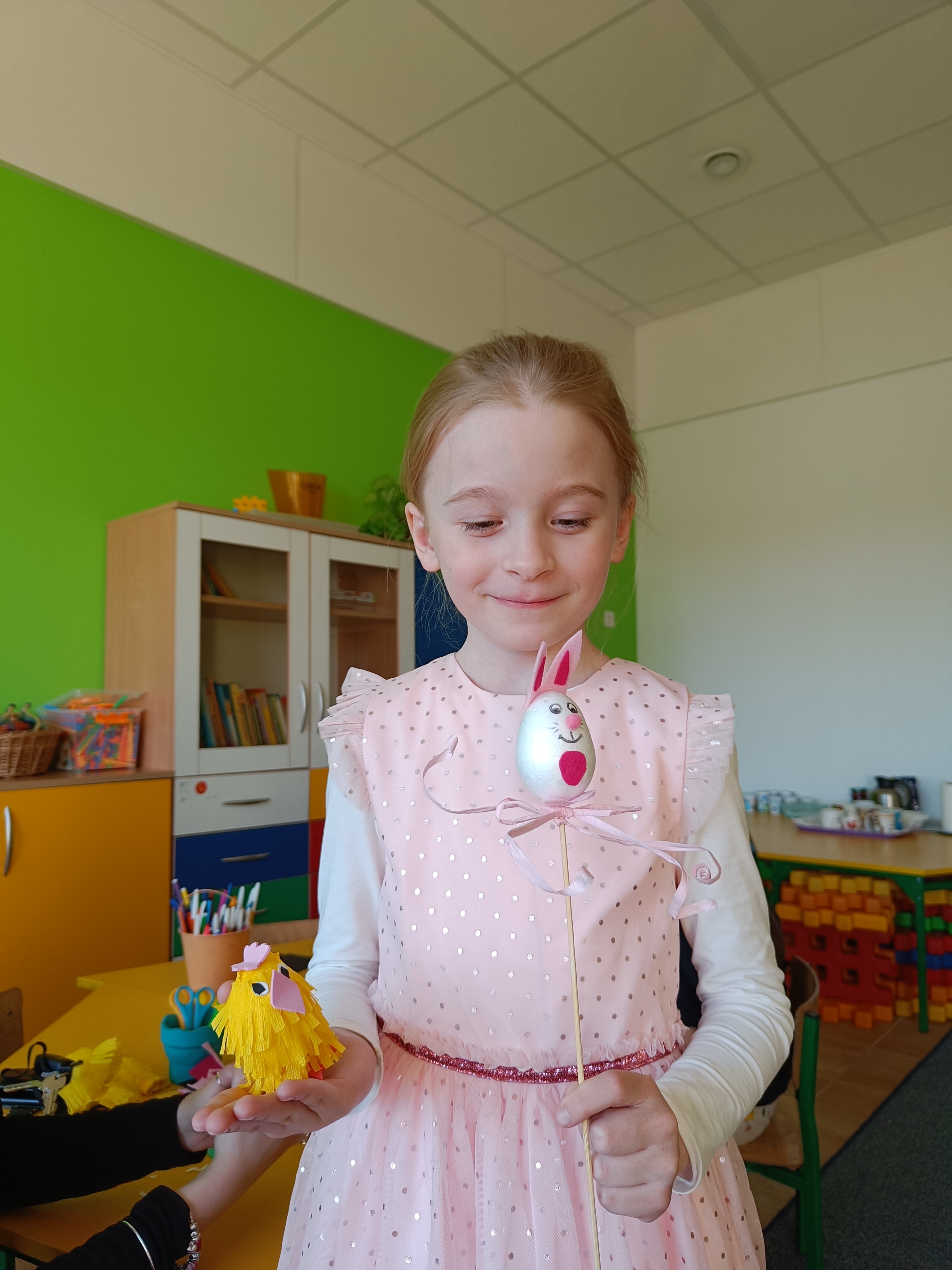 Dnia 04.04.2023 r. w oddziale przedszkolnym odbyły się wielkanocne warszty z rodzicami. Tego dnia dzieci wykonały z styropianowych jajek kurczaczka i króliczka :)