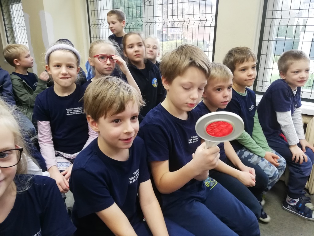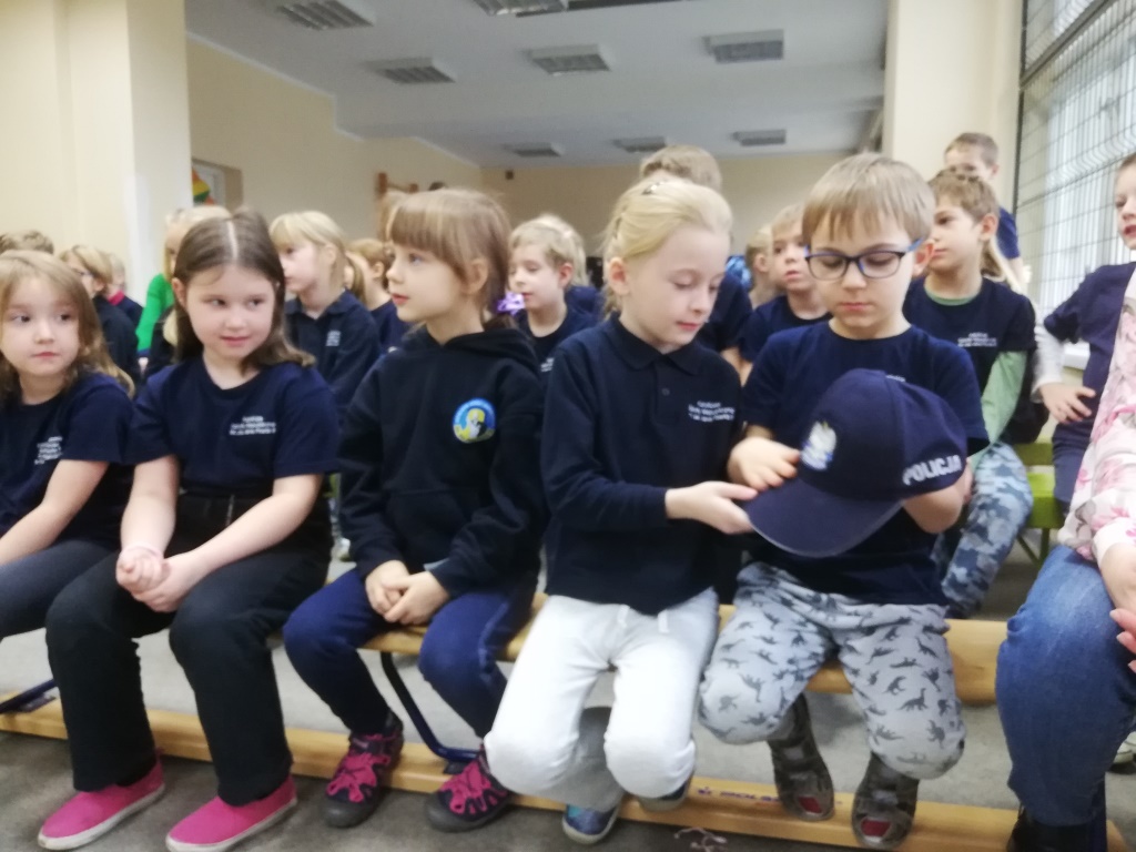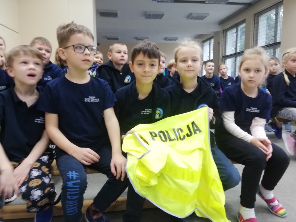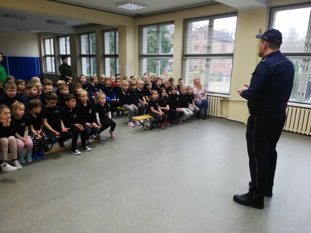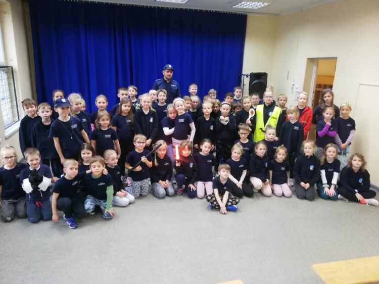 Uczniów klas 0 - III odwiedził wyjątkowy gość - Pan Policjant. Poprowadził zajęcia na temat bezpieczeństwa i odpowiedział na całe mnóstwo :) pytań dotyczących pracy w Policji.