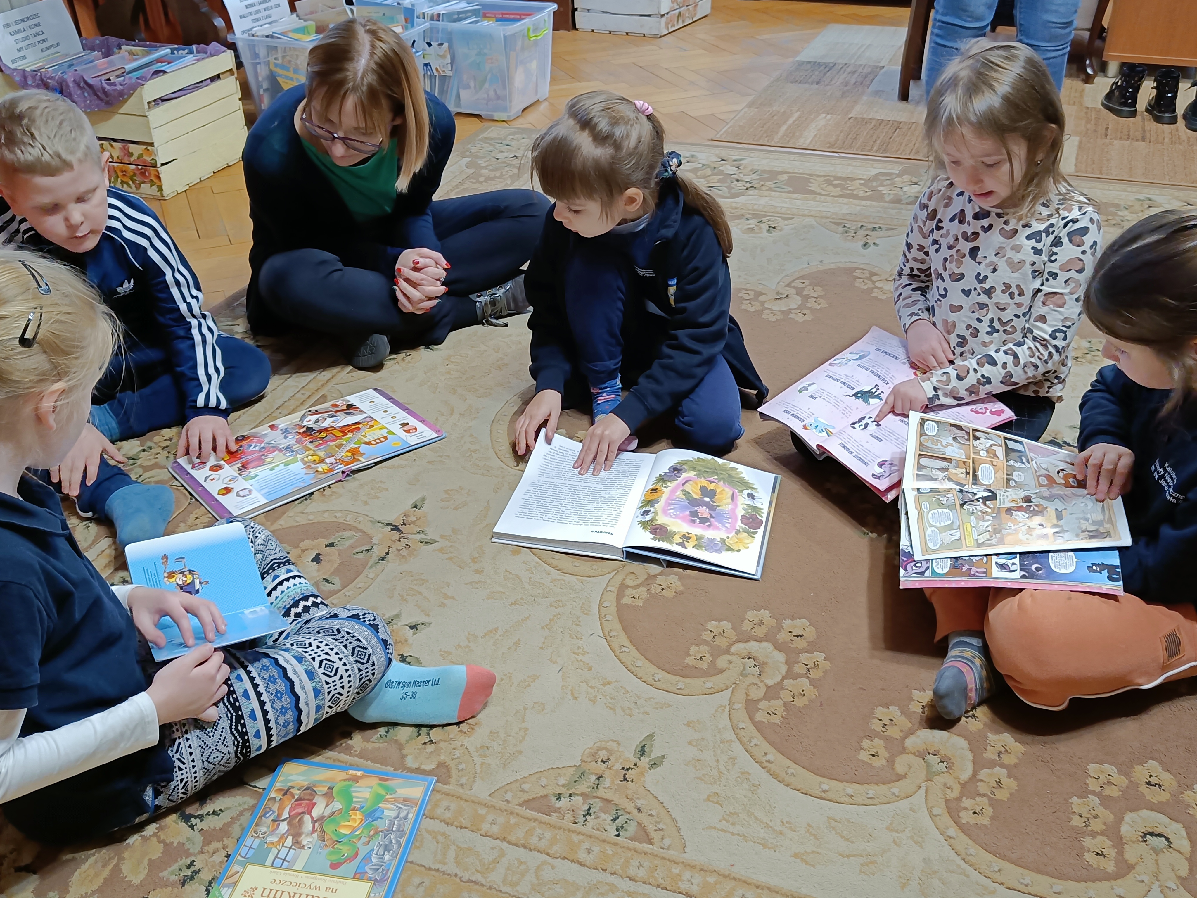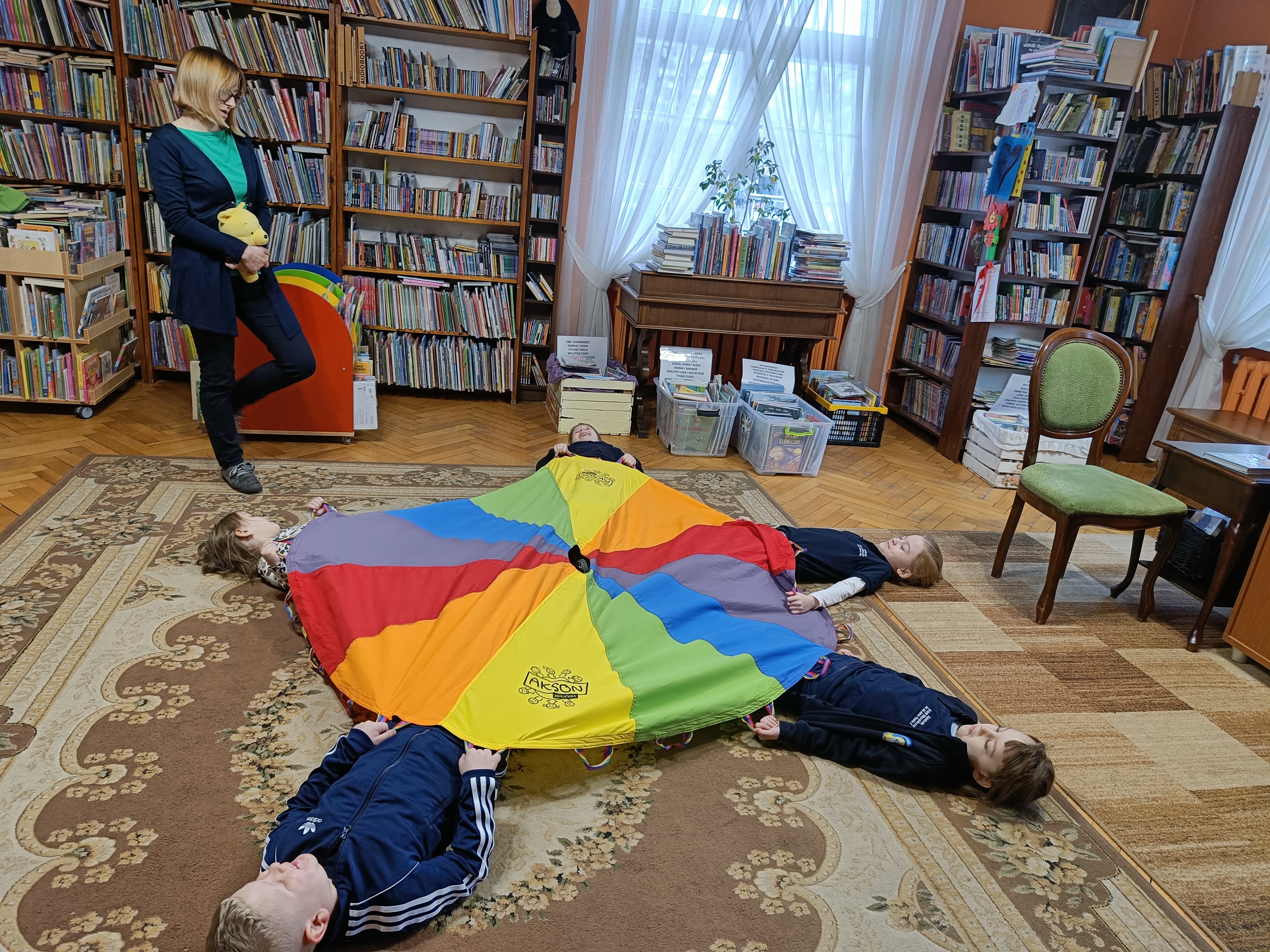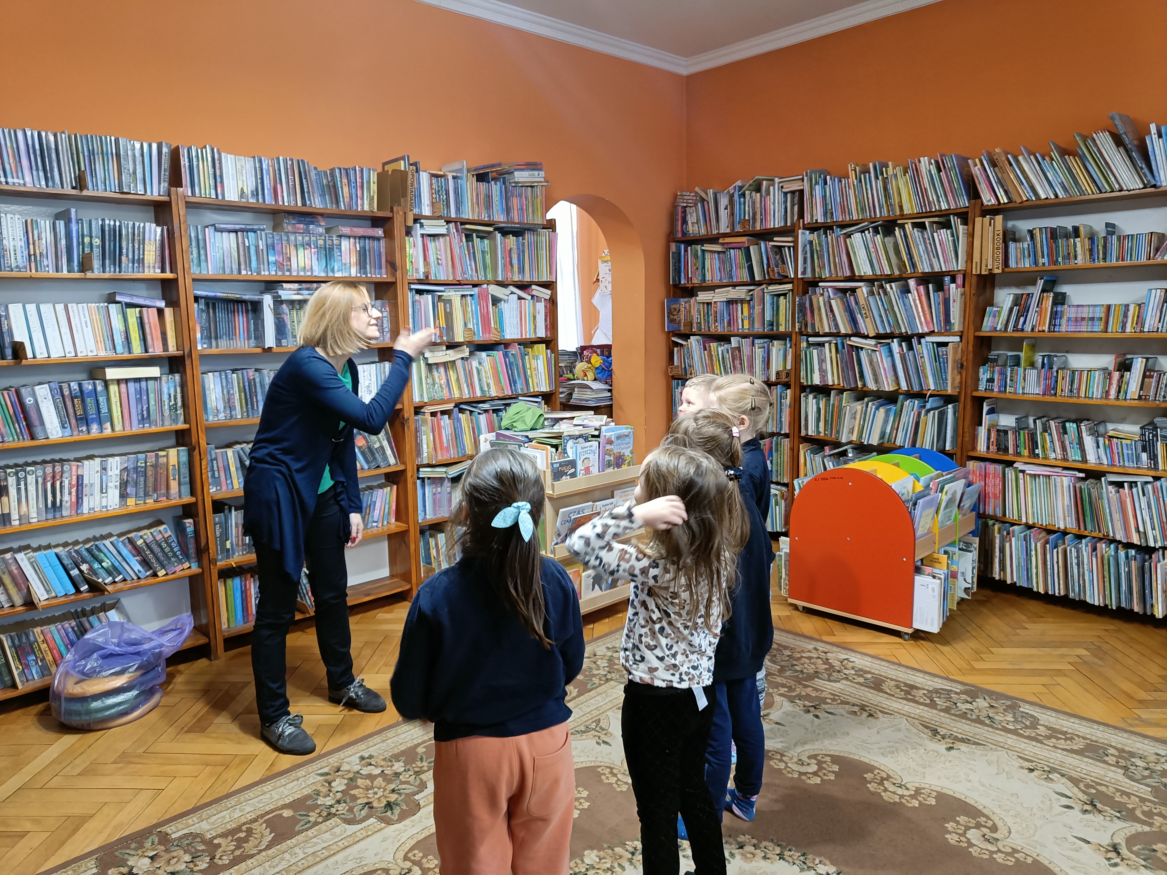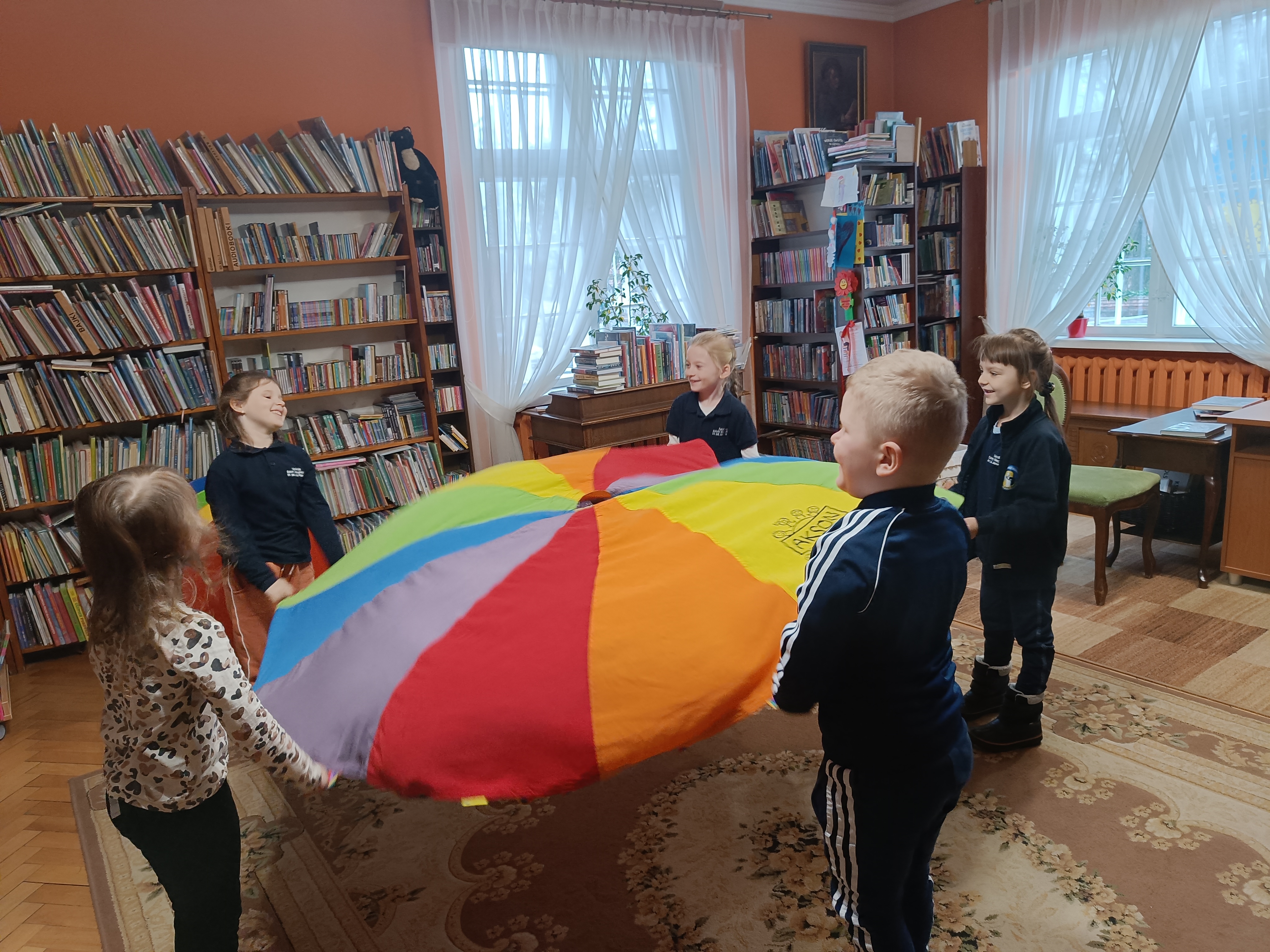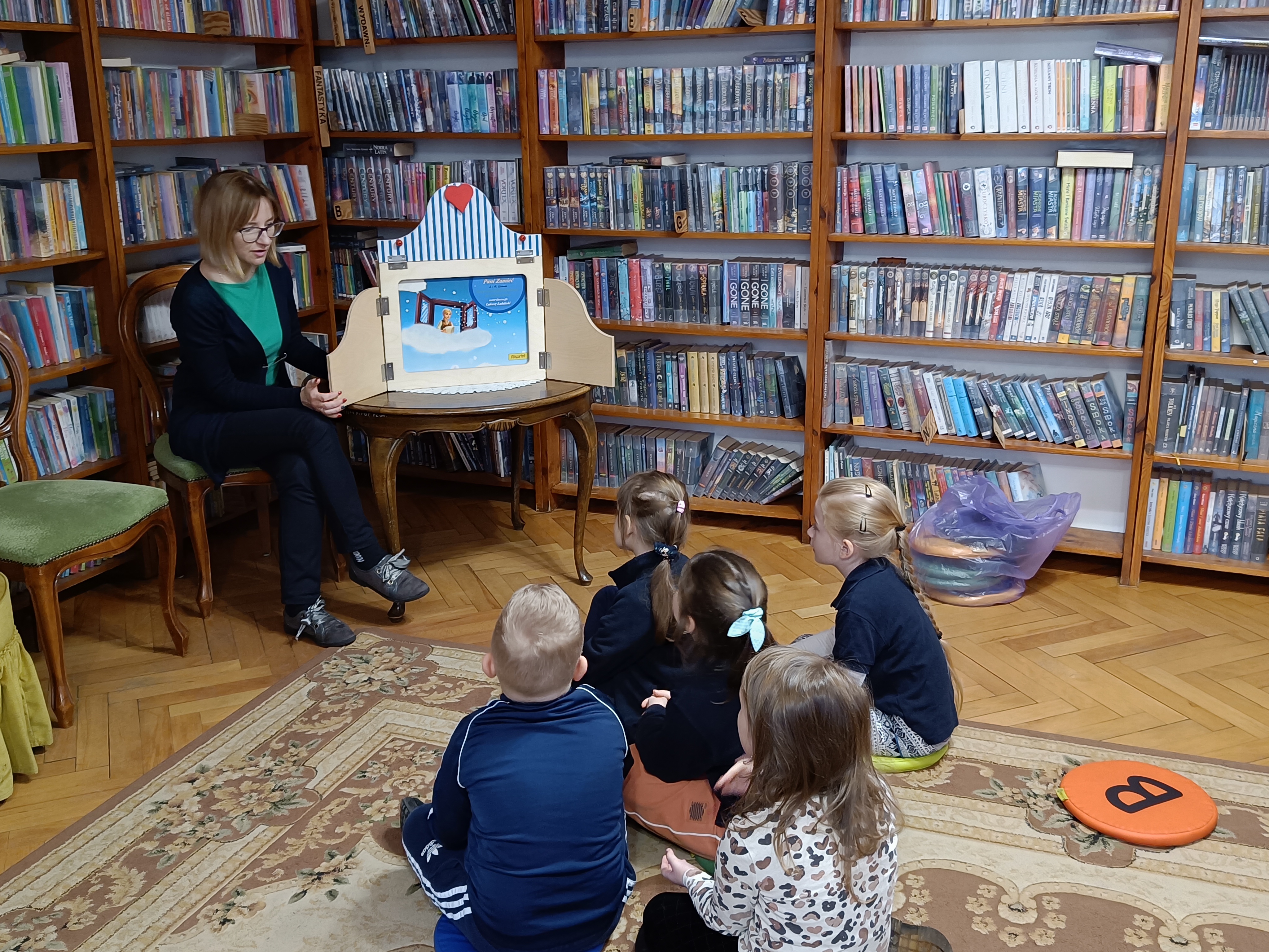 Dzisiaj po raz pierwszy odwiedziliśmy Miejską Bibliotekę Publiczną w Pruszczu Gdańskim. Tematem spotkania było zapoznanie dzieci z biblioteką. Przedszkolaki zwiedziły placówkę, dowiedziały się co należy zrobić aby stać się czytelnikiem biblioteki oraz jak należy się w niej zachowywać. Oprócz tego bibliotekarka Pani Asia zaprosiła dzieci do wspólnej zabawy z chustą animacyjną a za pomocą teatrzyku kamishibai opowiedziała dzieciom baśń pt. " Pani Zamieć" Braci Grimm.