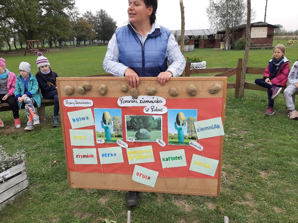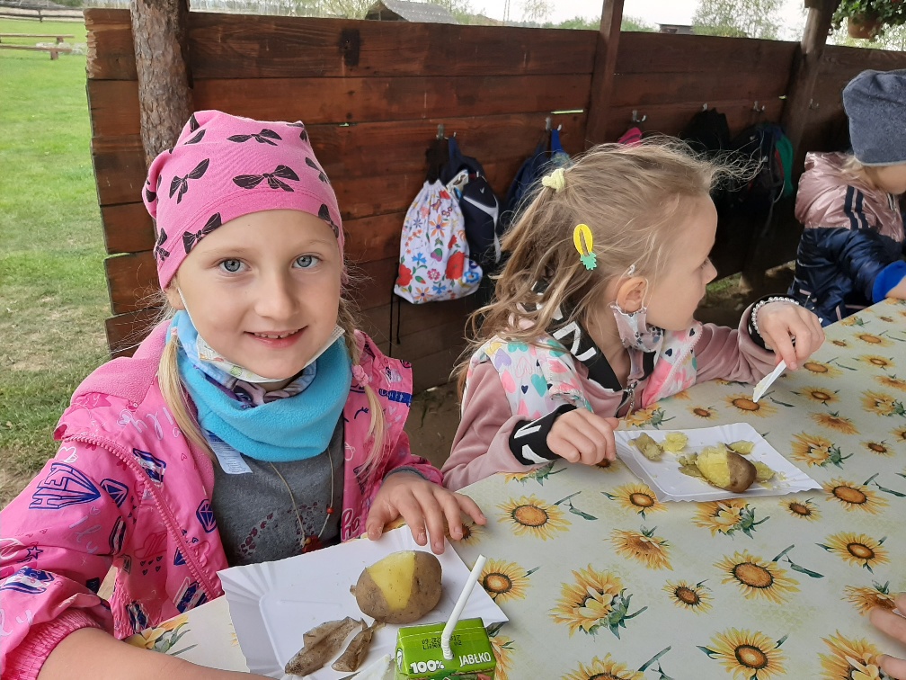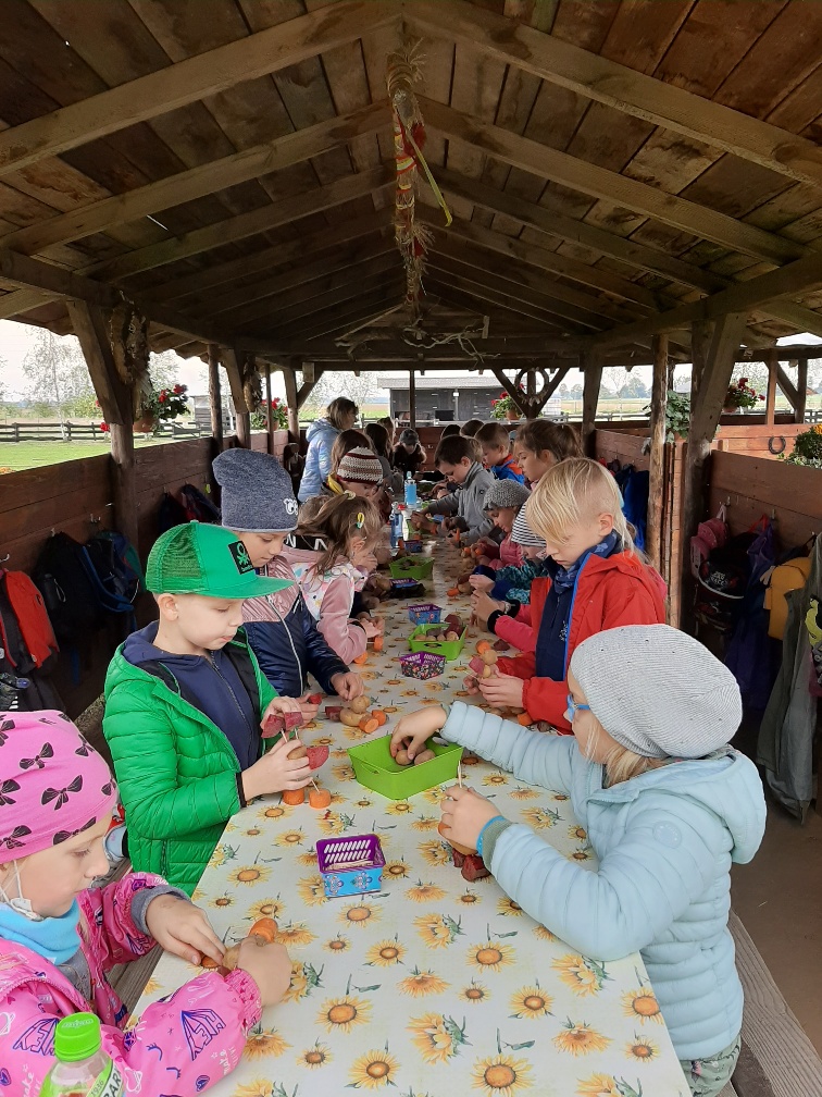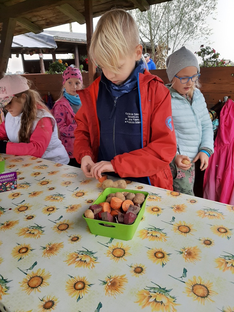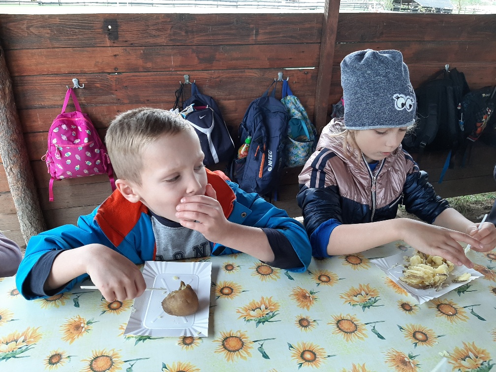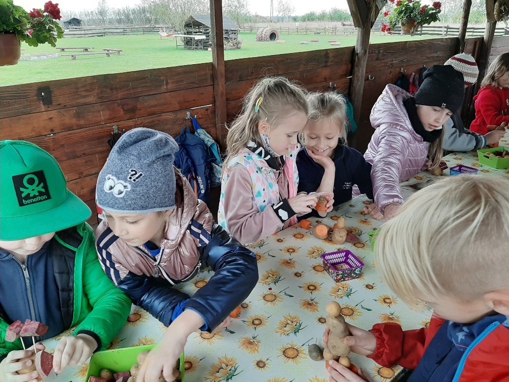Były tam zwierzątka, które głaskaliśmy i karmiliśmy. Kopaliśmy ziemniaki z ekologicznej uprawy, czyli bez użycia pestycydów i nawozów sztucznych. Następnie przygotowane ziemniaki w parniku jedliśmy z wielkim smakiem. Ponadto próbowaliśmy innych ekologicznych produktów. Wszystko było smaczne i bardzo zdrowe. Robiliśmy ludki z ziemniaków o dziwnym kształcie i ścigaliśmy się na torze przeszkód.