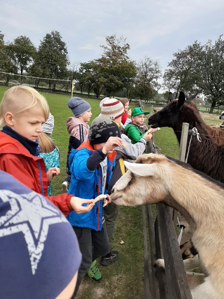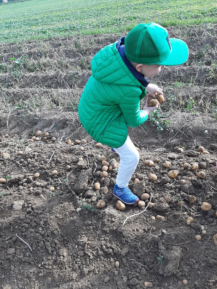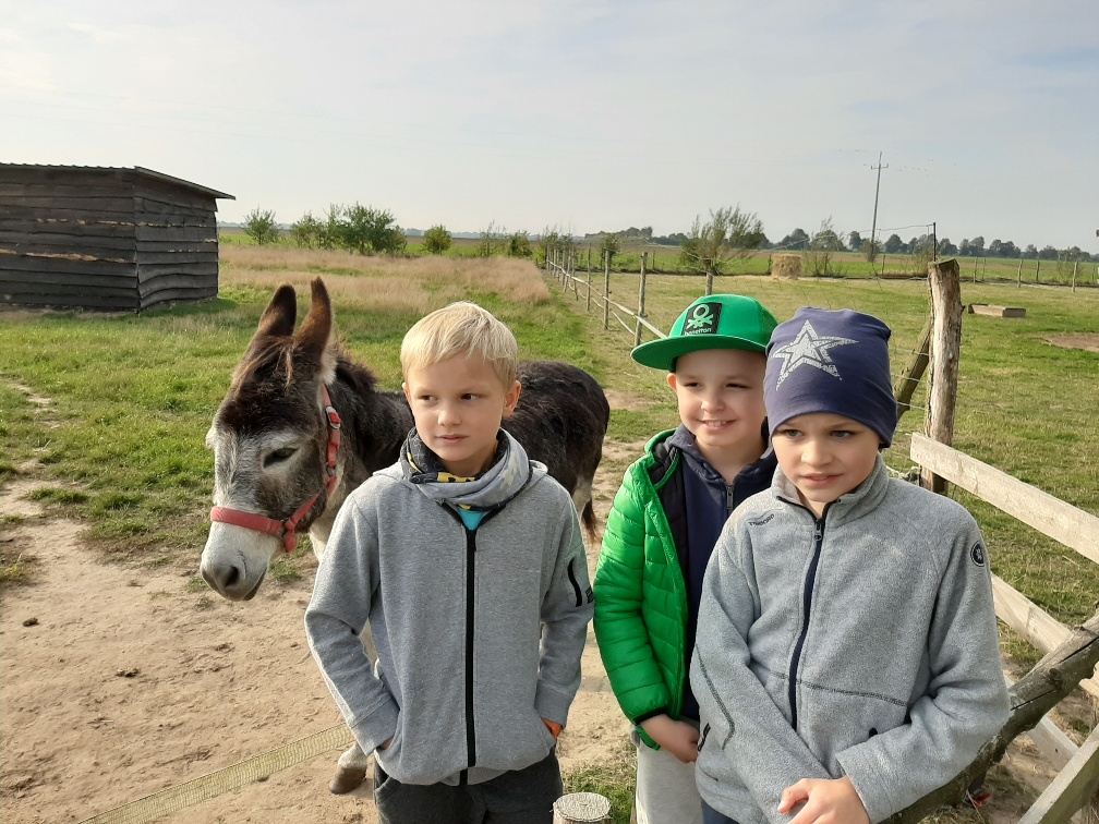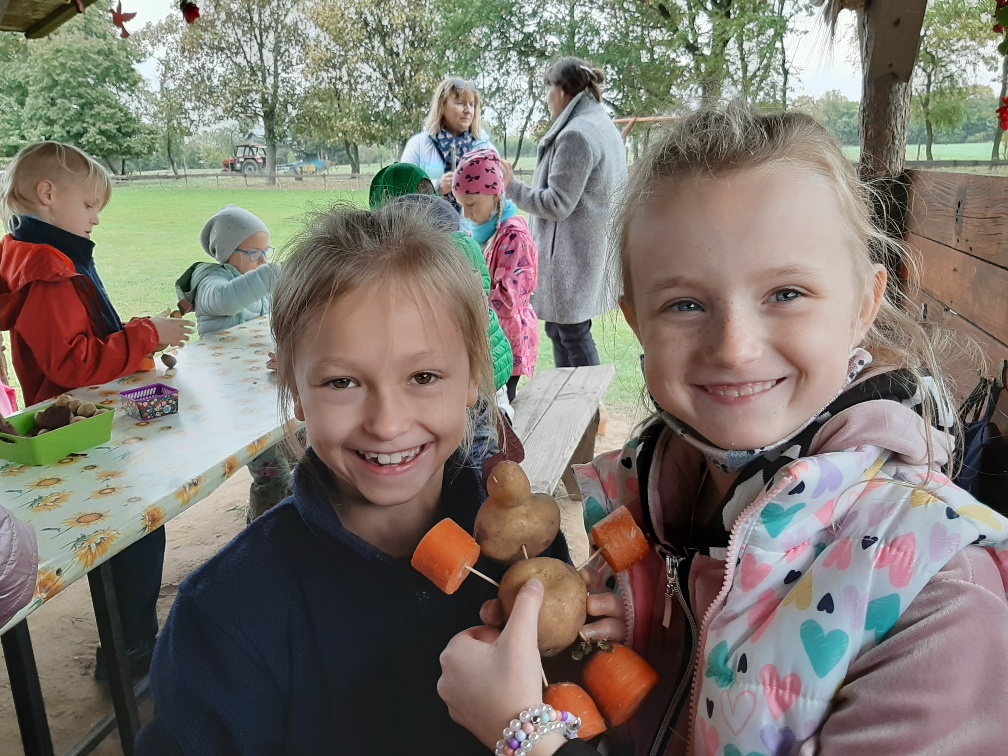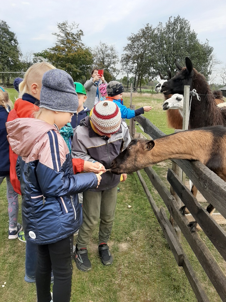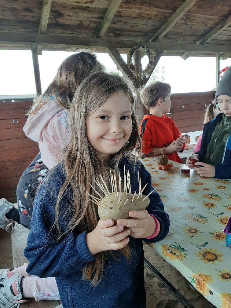 Były tam zwierzątka, które głaskaliśmy i karmiliśmy. Kopaliśmy ziemniaki z ekologicznej uprawy, czyli bez użycia pestycydów i nawozów sztucznych. Następnie przygotowane ziemniaki w parniku jedliśmy z wielkim smakiem. Ponadto próbowaliśmy innych ekologicznych produktów. Wszystko było smaczne i bardzo zdrowe. Robiliśmy ludki z ziemniaków o dziwnym kształcie i ścigaliśmy się na torze przeszkód.