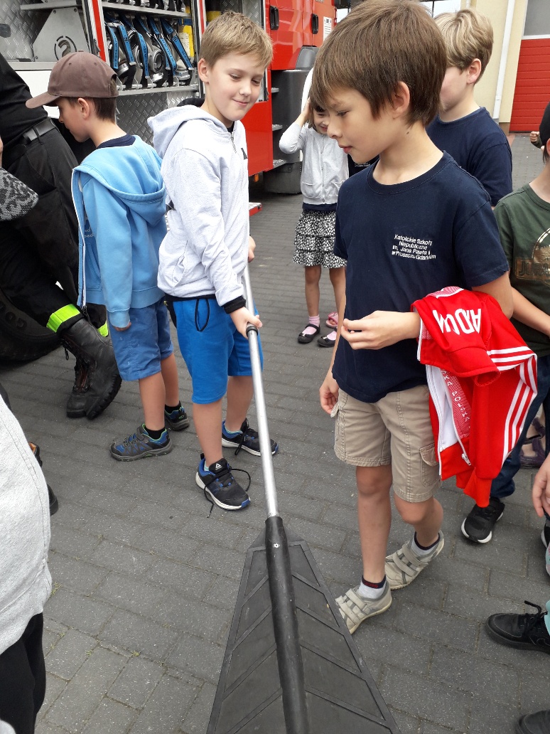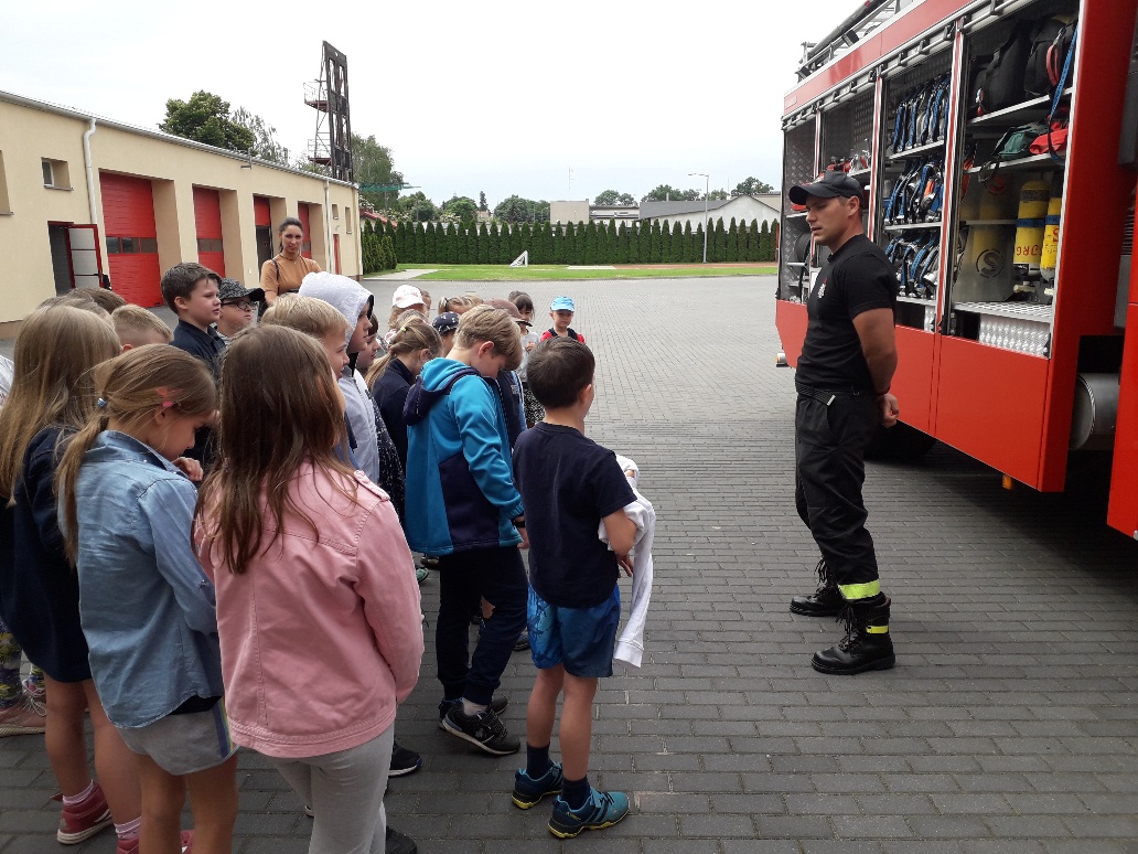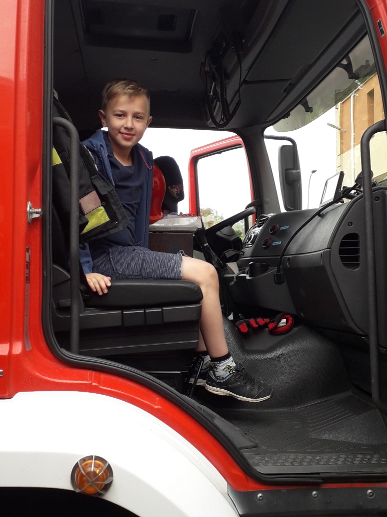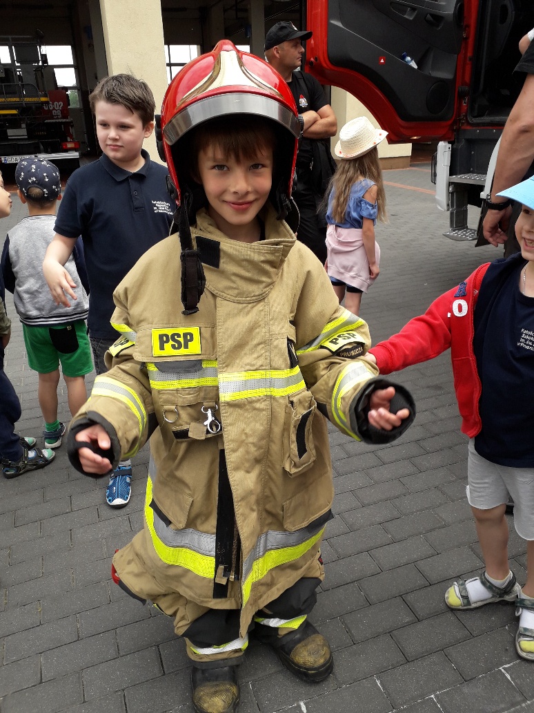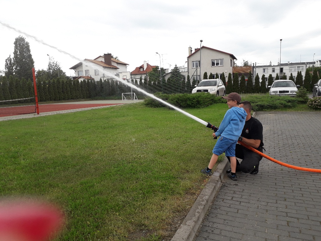 Uczniowie klasy III i zeróweczki uczestniczyli w zajęciach prowadzonych przez strażaków Państwowej Straży Pożarnej w Pruszczu Gdańskim. Na dzieci czekały same atrakcje: zwiedzanie samochodów strażackich, polewanie wodą z hydrantu, przymierzanie stroju strażackiego do gaszenia pożaru. Strażacy przypomnieli w jakich okolicznościach należy wezwać straż pożarną i pod jaki numer zadzwonić.