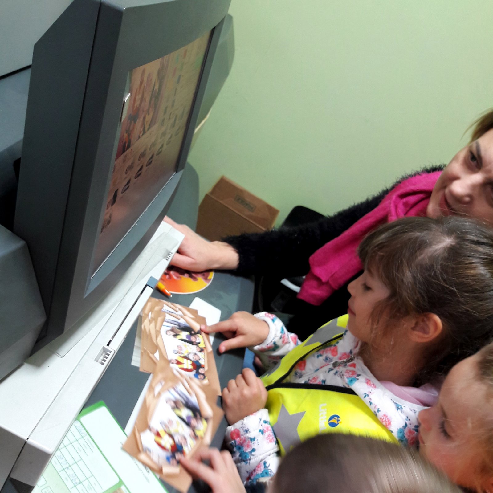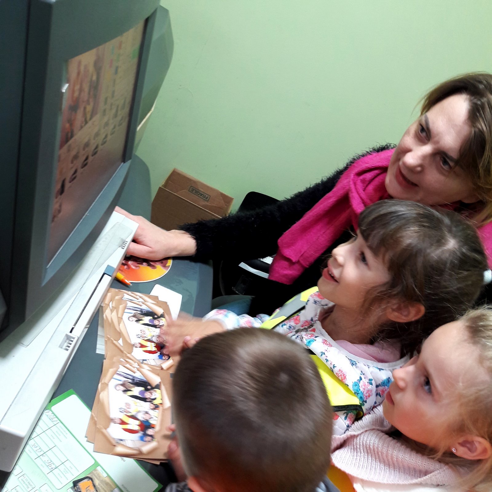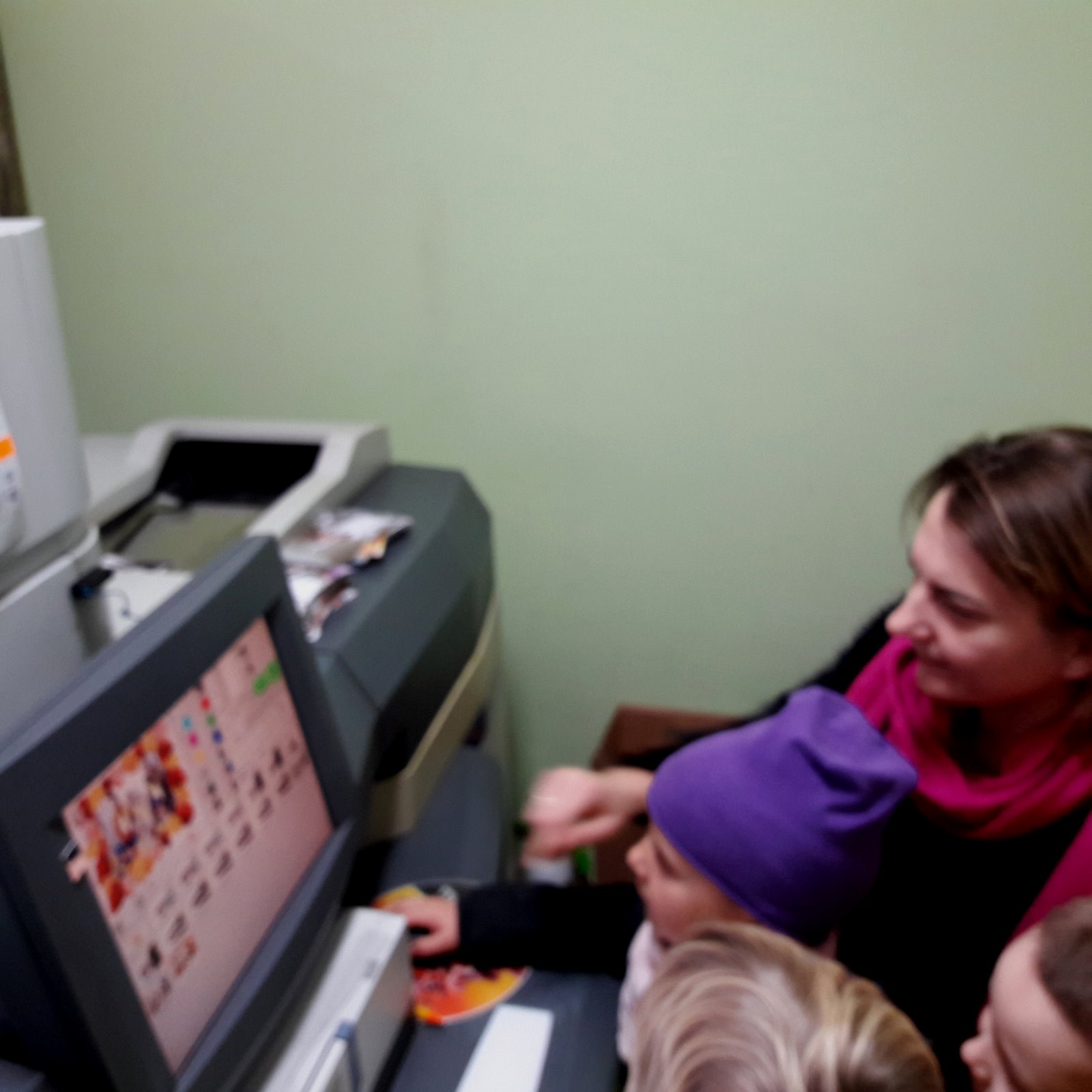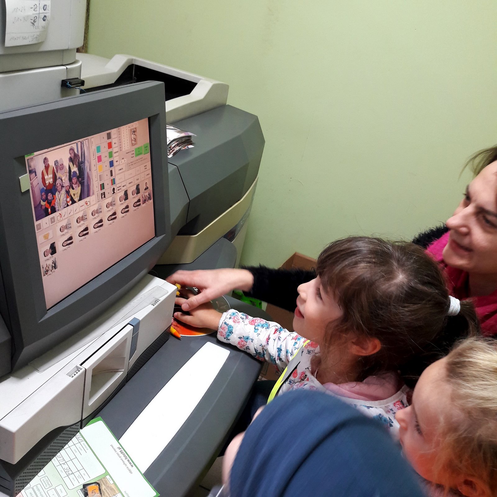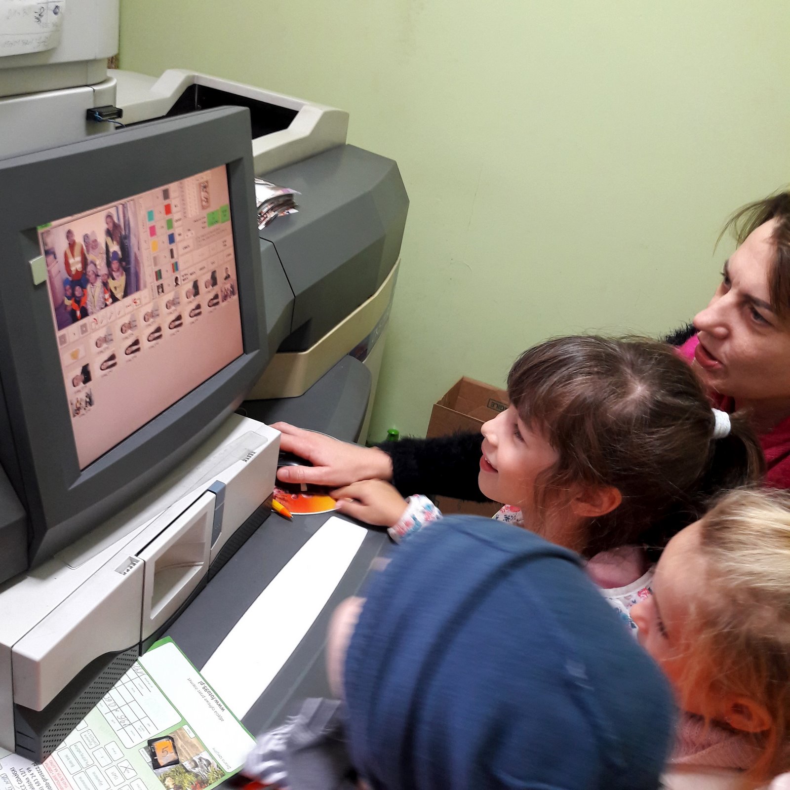 Właściciel Zakładu fotograficznego zapoznał dzieci z procesem powstawania zdjęć poczynając od fotografowania poprzez obróbkę aż do gotowej fotografii. Dużo uśmiechu wywołało domalowywanie chłopcom wąsików, czy kokardek dziewczynkom. Na pamiątkę każde dziecko otrzymało wspólną fotografię.