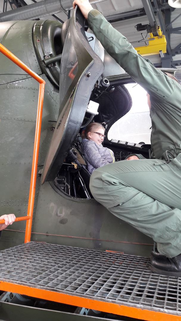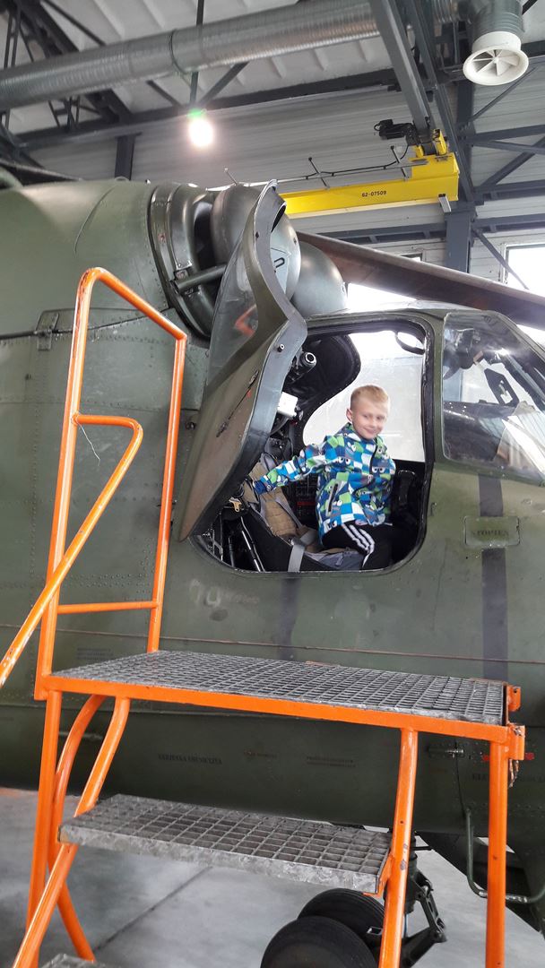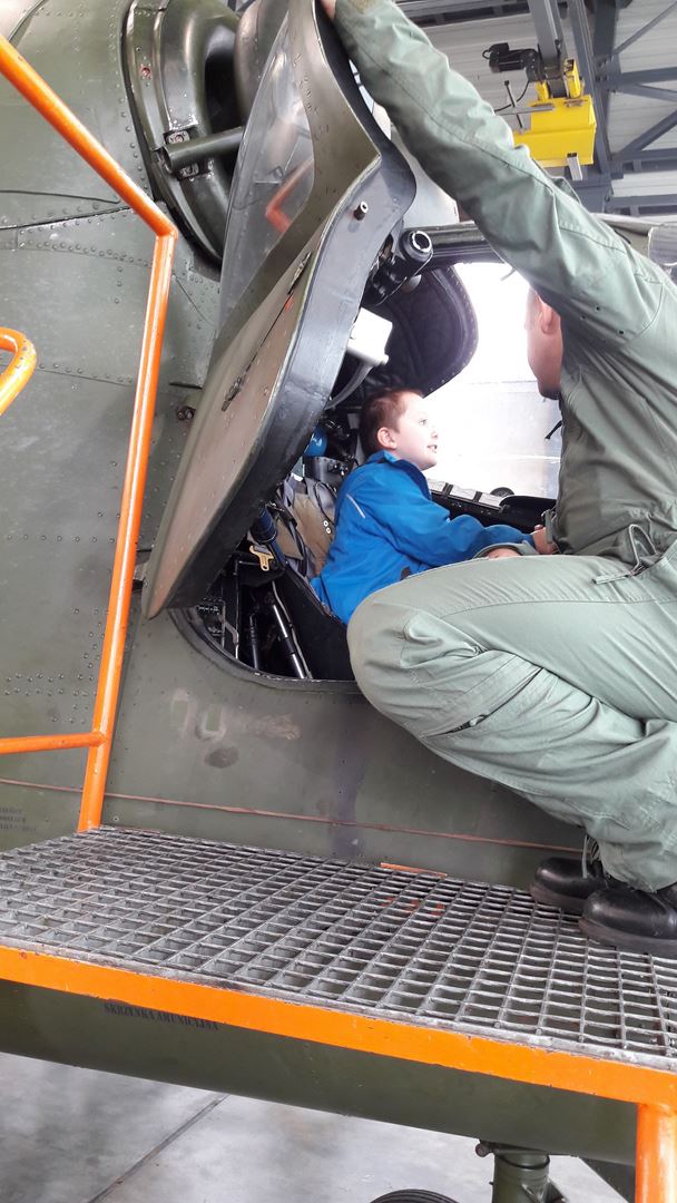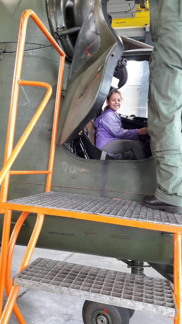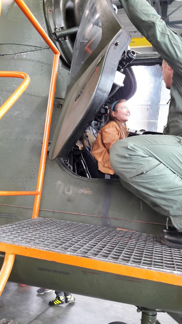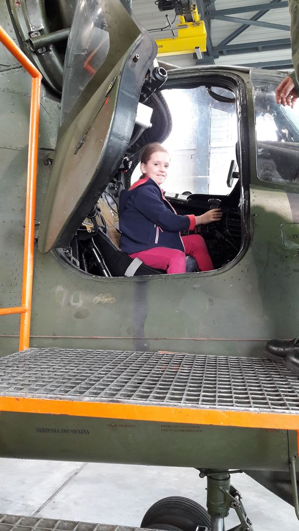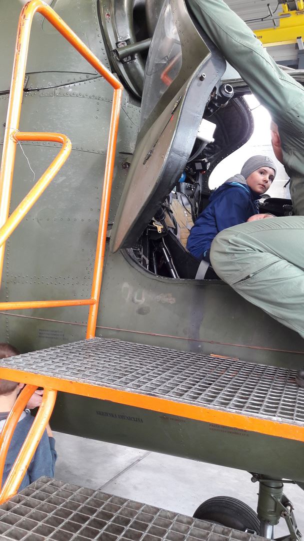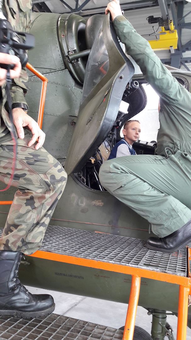 Najbardziej wyczekiwaną atrakcją było pójście do hangaru, w którym stacjonowały czekające na przeglądy techniczne śmigłowce. Niebywałą frajdą było wejście do kabiny pilota i zasiadanie za sterami śmigłowca. Radość sprawiła też prezentacja sprzętu ratowniczo-gaśniczego Wojskowej Straży Pożarnej.