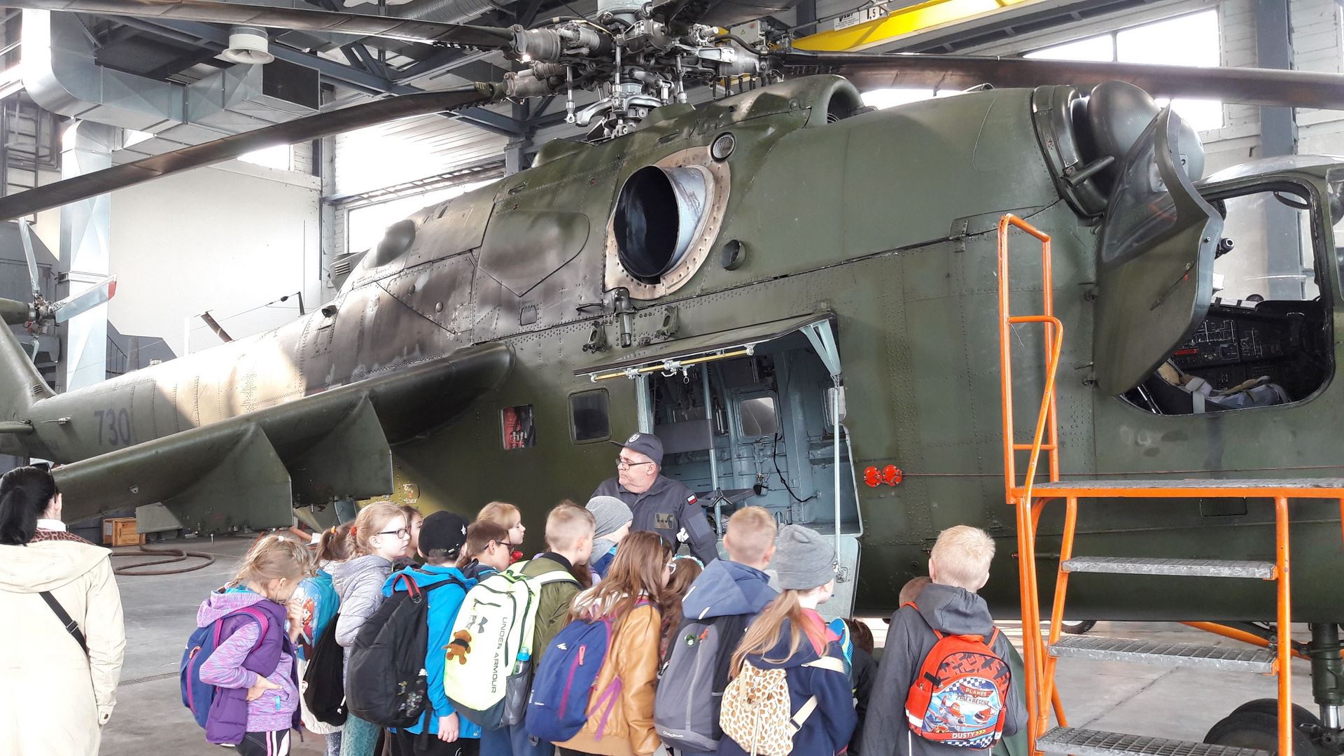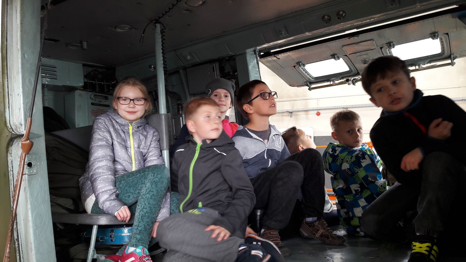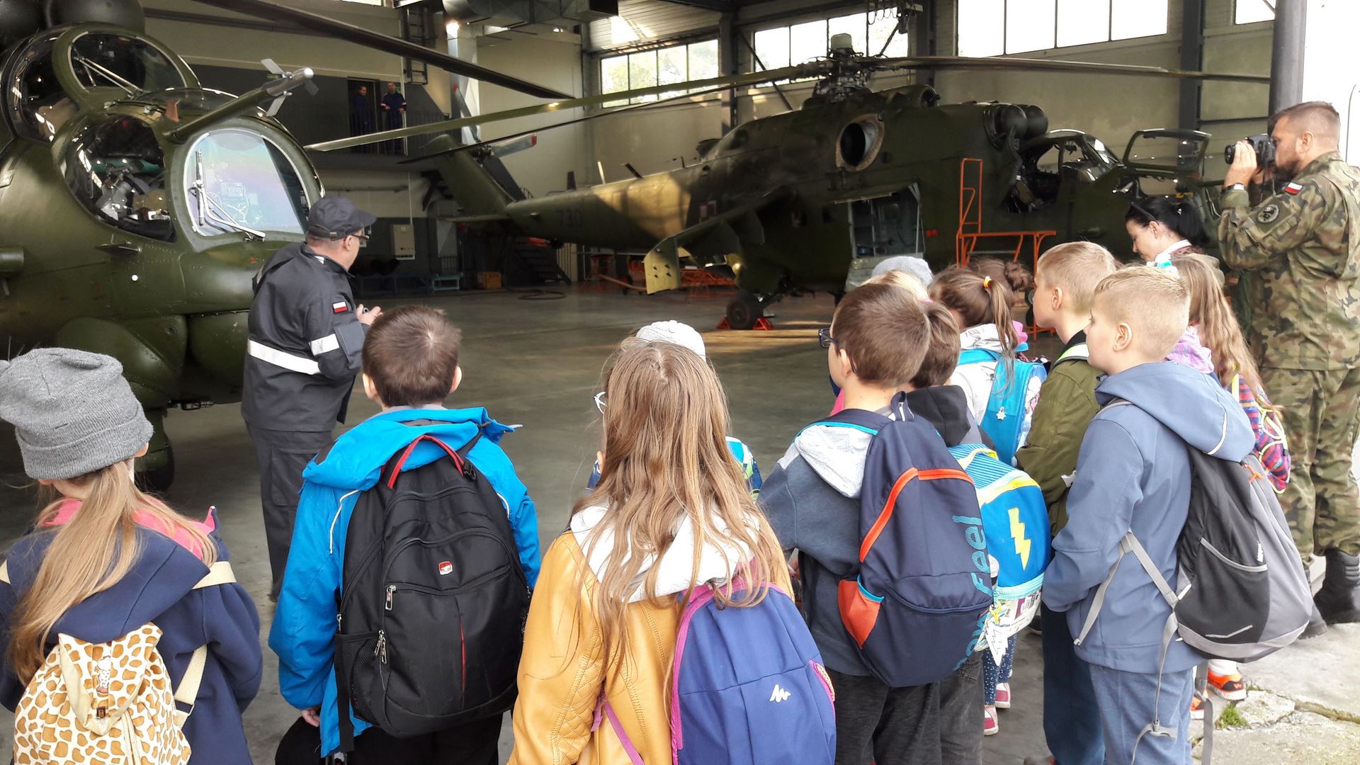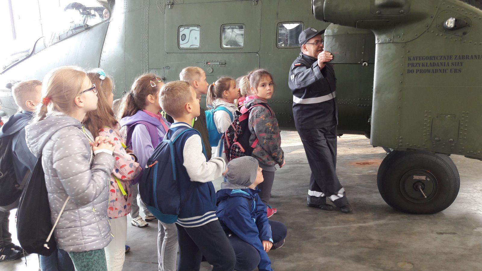 Najbardziej wyczekiwaną atrakcją było pójście do hangaru, w którym stacjonowały czekające na przeglądy techniczne śmigłowce. Niebywałą frajdą było wejście do kabiny pilota i zasiadanie za sterami śmigłowca. Radość sprawiła też prezentacja sprzętu ratowniczo-gaśniczego Wojskowej Straży Pożarnej.