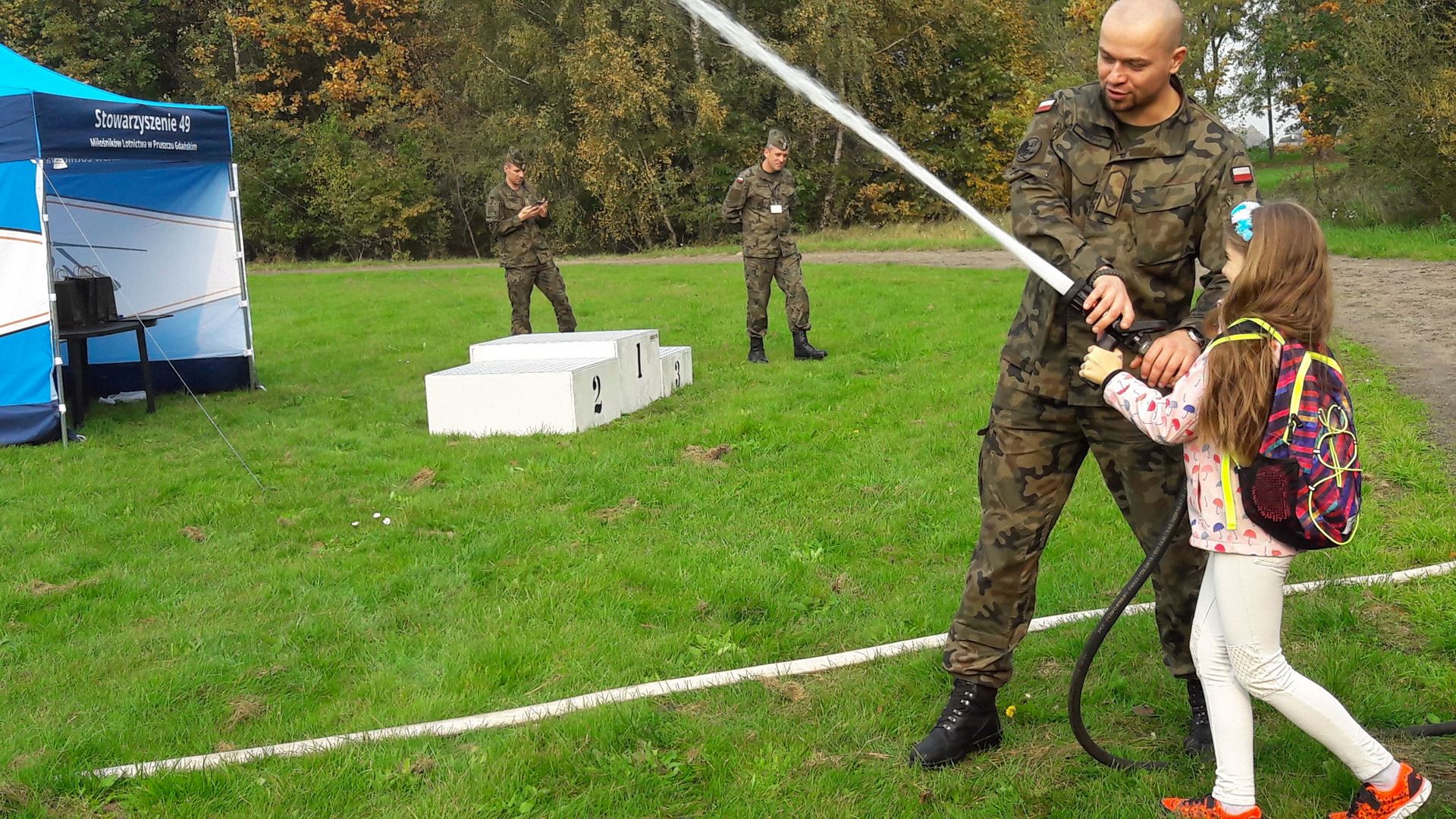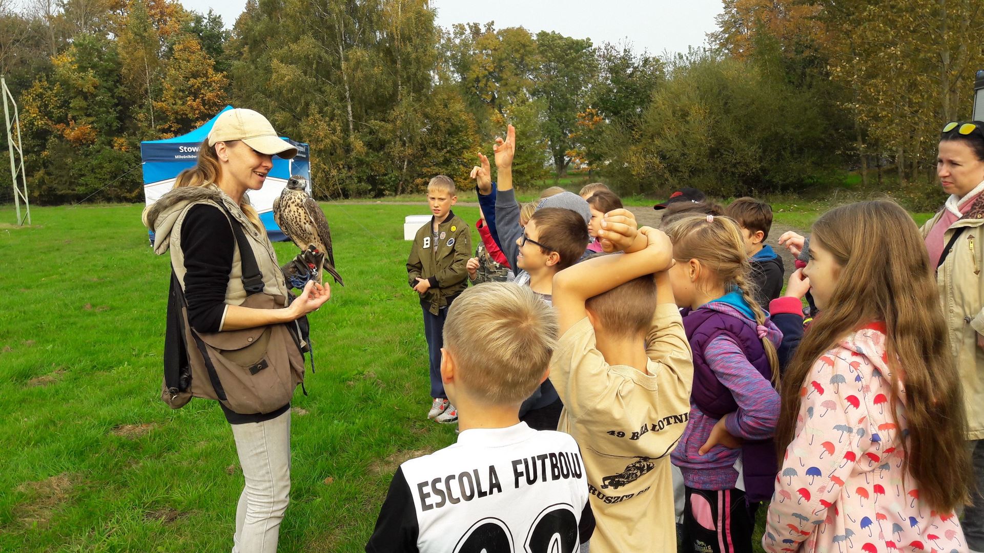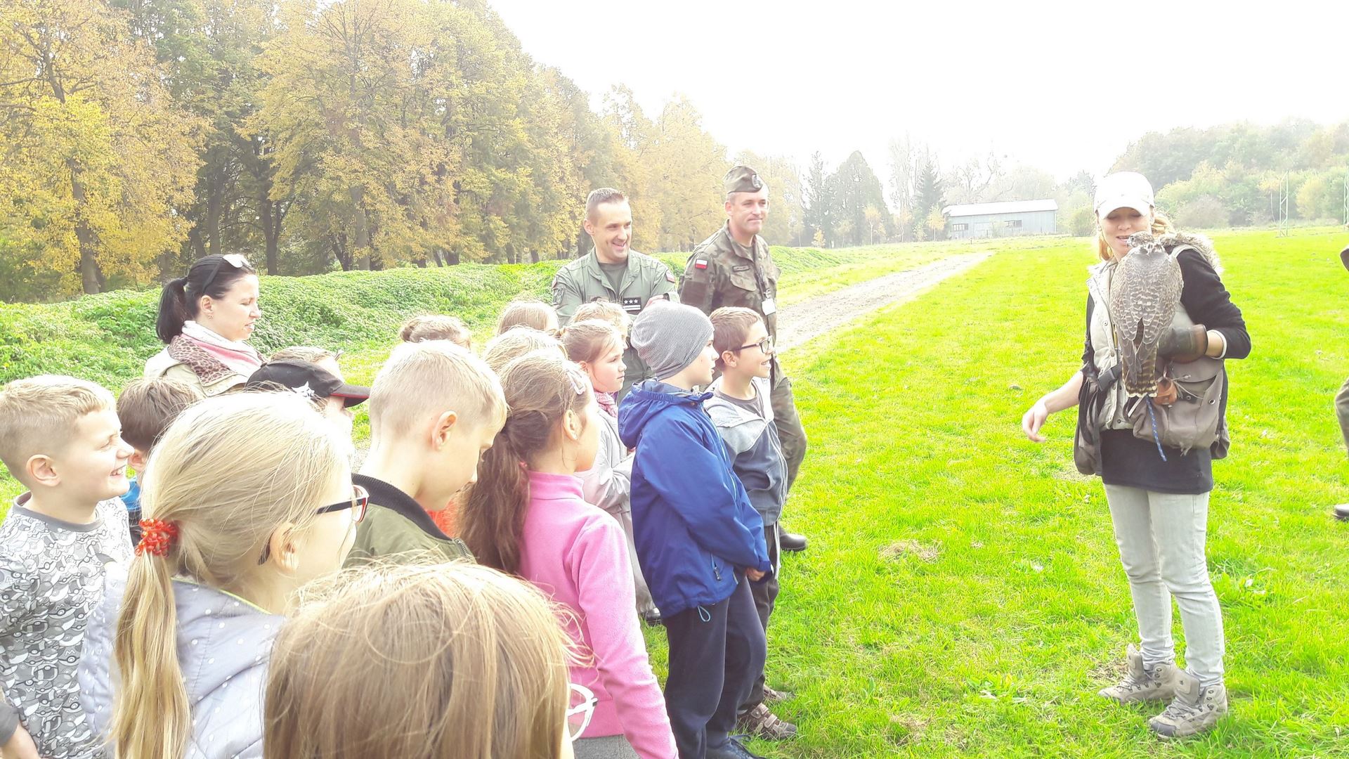 Wielkim zaskoczeniem było pojawienie się sokolniczki z trzema sokołami, jastrzębiem i psem pasterskim, która w ciekawy sposób pokazała swoją pracę i metody, dzięki którym drapieżnym ptakom udaje się przegonić z lotniska żerujące tam ptaki.