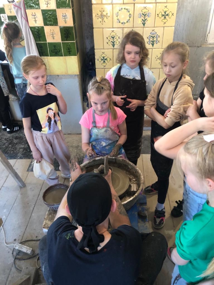 W dniu 22 kwietnia 2023r. roku uczniowie klas I-III, uczęszczający na zajęcia z języka kaszubskiego wzięli udział w całodniowej wycieczce na Kaszuby. Pierwszym punktem programu była wizyta w Muzeum Ceramiki w Chmielnie. Dzieci zostały zapoznane z historią garncarstwa w rodzinie Neclów oraz uczestniczyły w warsztatach garncarskich. Każdy z uczniów z pomocą garncarza formował dzbanek, wazon czy misę.Następnie udaliśmy się do Parku Edukacyjnego Zoo-Egzotyczne Kaszuby w Tuchlinie. Celem wycieczki było wzbogacenie wiadomości na temat zwierząt żyjących w różnych rejonach świata. Na miejscu każdej grupie przydzielono przewodnika i rozpoczęło się zwiedzanie tego niezwykłego parku. Przewodnicy bardzo ciekawie opowiadali o mieszkańcach Zoo, a niektóre zwierzęta można było wziąć na ręce i pogłaskać. Główną atrakcją było karmienie papużek. Dopełnieniem wycieczki był seans w kinie 3D - film pt. ” Podróż do prehistorycznego świata”.