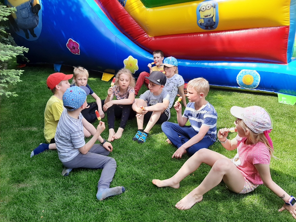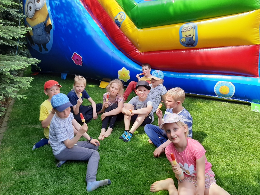 Dzisiaj cała klasa druga spędziła wspaniale czas korzystając z gościnności Państwa Pedów w ich domu rodzinnym. Na dzieci czekało mnóstwo niespodzianek: dmuchana zjeżdżalnia, trampolina i smaczny poczęstunek. Serdeczne podziękowania dla gospodarzy za przygotowanie atrakcji.