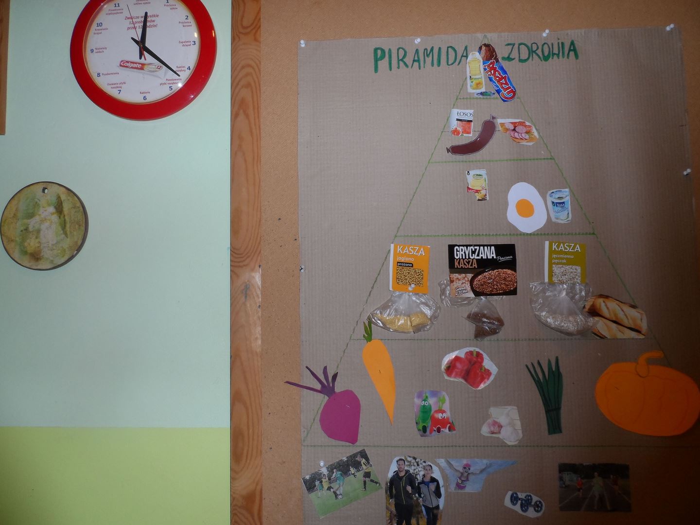 Staramy sie żyć zdrowo. Tworzymy na planszy piramidę zdrowia.