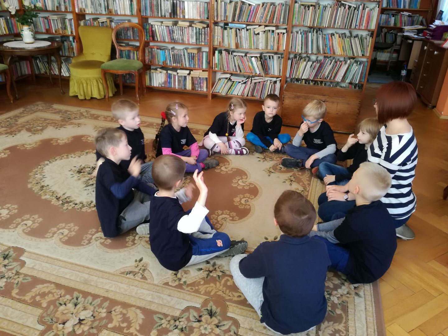 18 października klasa 0 po raz pierwszy wybrała się do Biblioteki Miejskiej. Uczniowie zapoznali się z budynkiem bibliotecznym i jego historią, dowiedzieli się, jak korzysta się z bibliotecznych zbiorów i jakie zasady obowiązują w bibliotece. Obejrzeli również niezwykły teatrzyk kamishibai i uczestniczyli w ciekawych zabawach, prowadzonych przez panią bibliotekarkę.