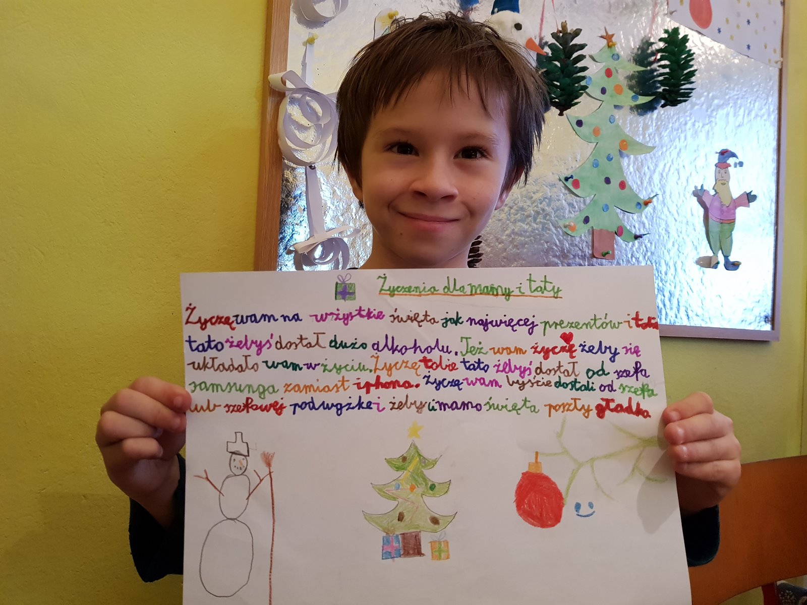 Kto powiedział, że życzenia składamy tylko najbliższym (rodzicom, dziadkom, rodzeństwu). Podczas zajęć świetlicowych uczniowie postanowili napisać życzenia również dla Św. Mikołaja i dla ulubionego pupila. Proste, szczere, wzruszające. Sami zobaczcie :)